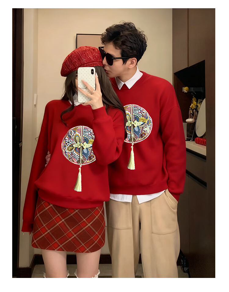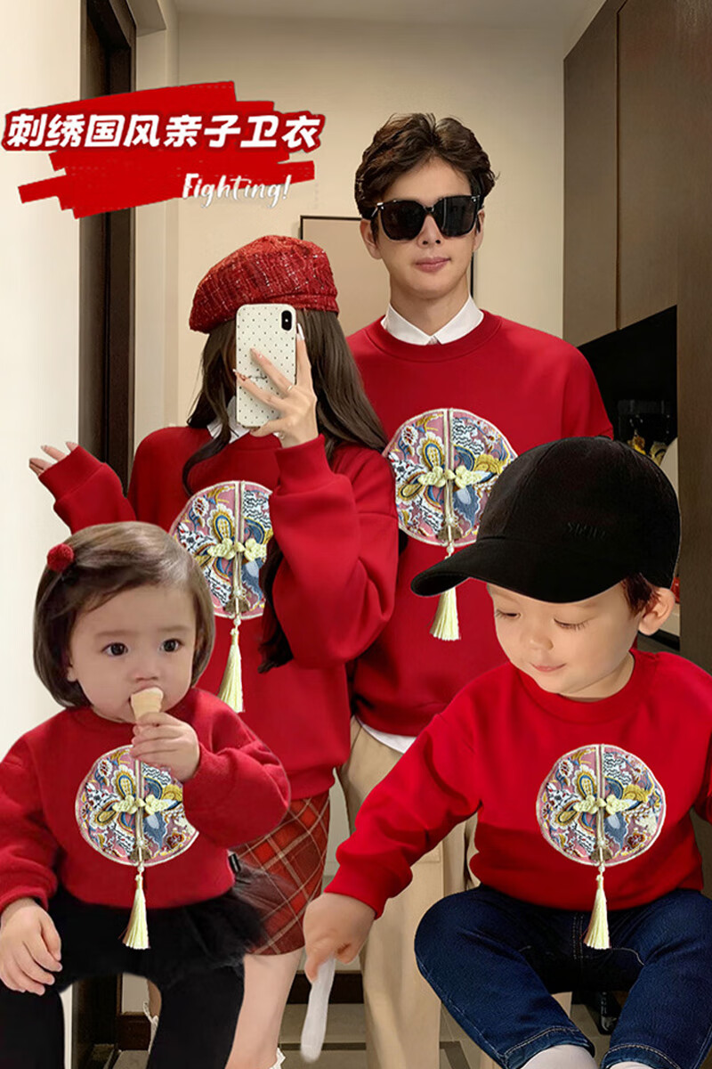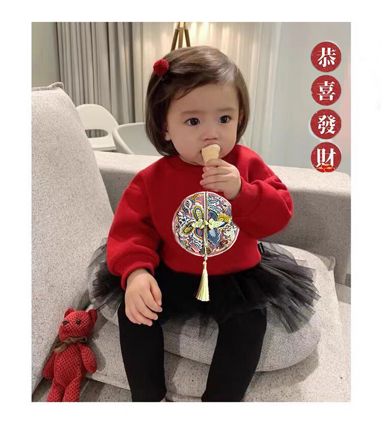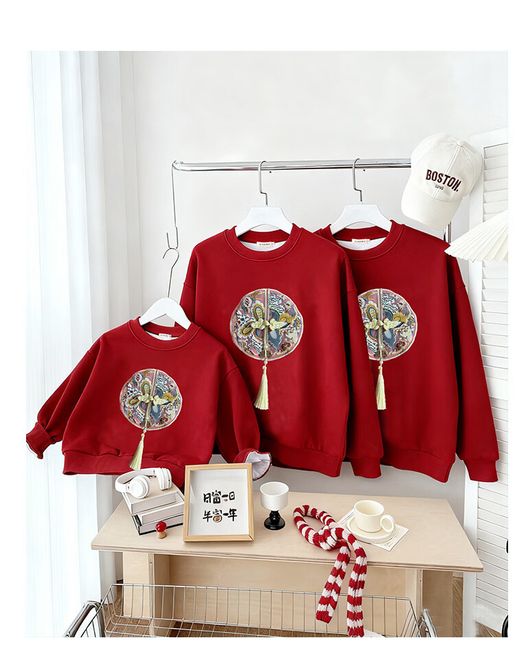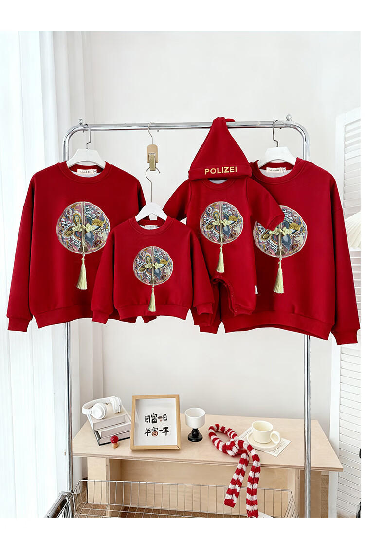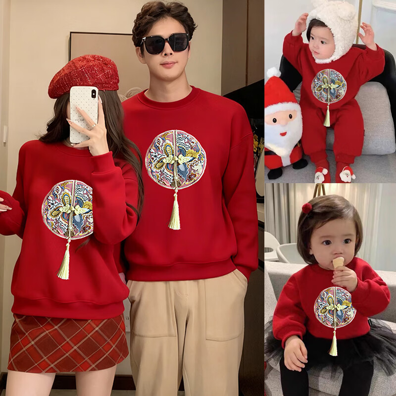 Jingga parent-child clothing winter one-year-old dress parent-child clothing for a family of three new Chinese style high-end Chinese style red sweatshirt_autumn style 80 baby crawler clothing_16-20Jin Jin is equal to 0.5 kg