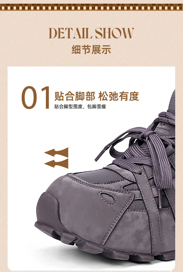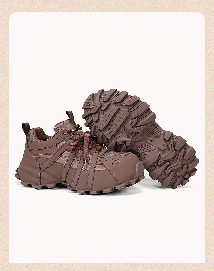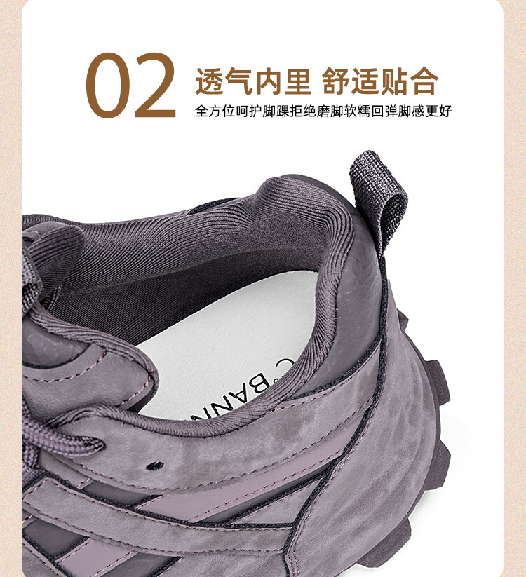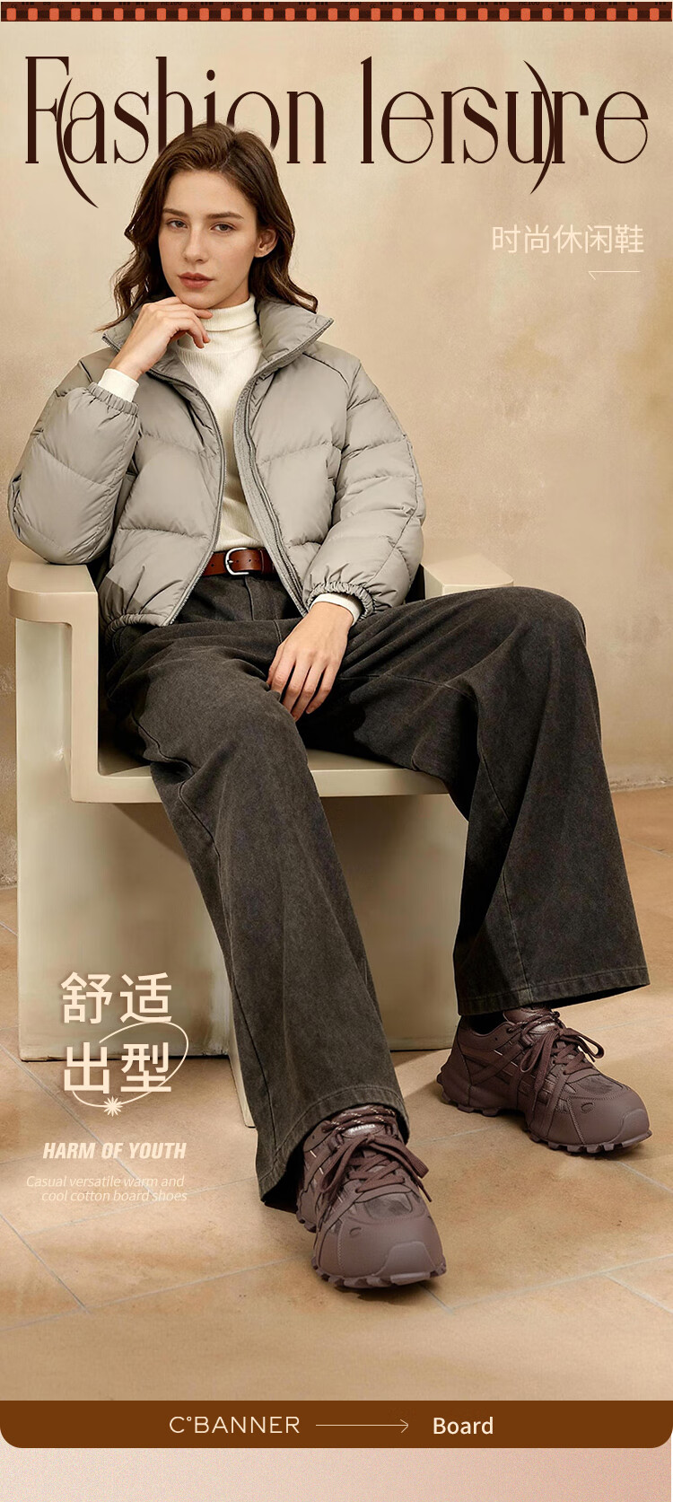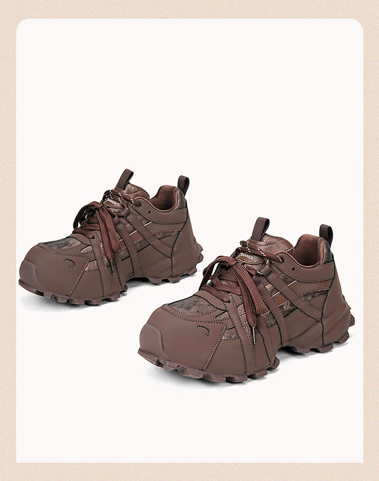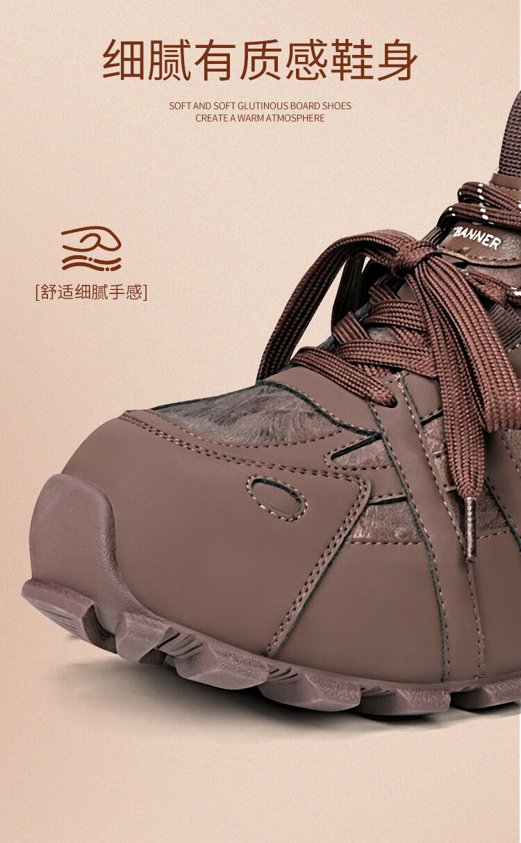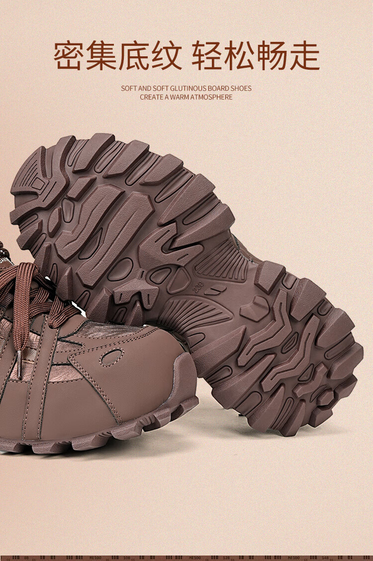 C.BANNER 5cm taller thick-soled dad shoes for women, autumn and winter velvet warm cotton shoes, versatile casual sports shoes, brown 37