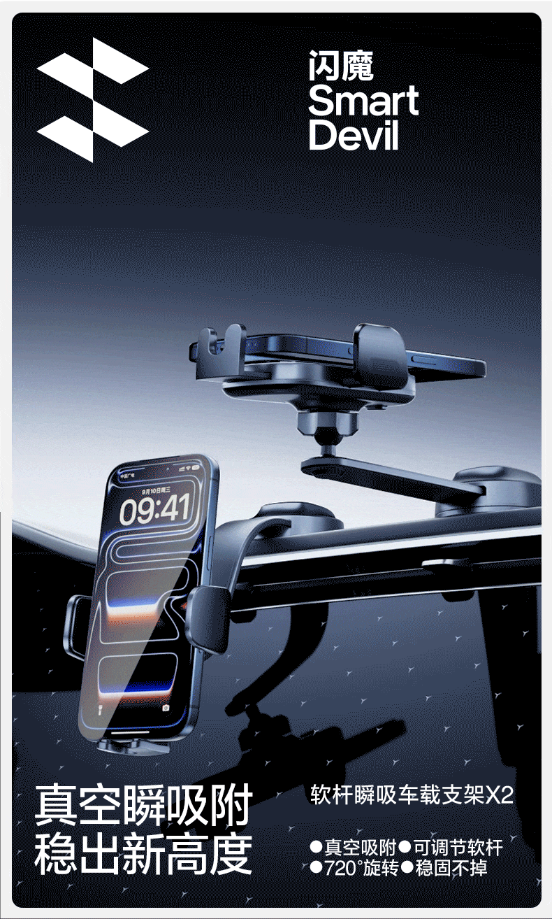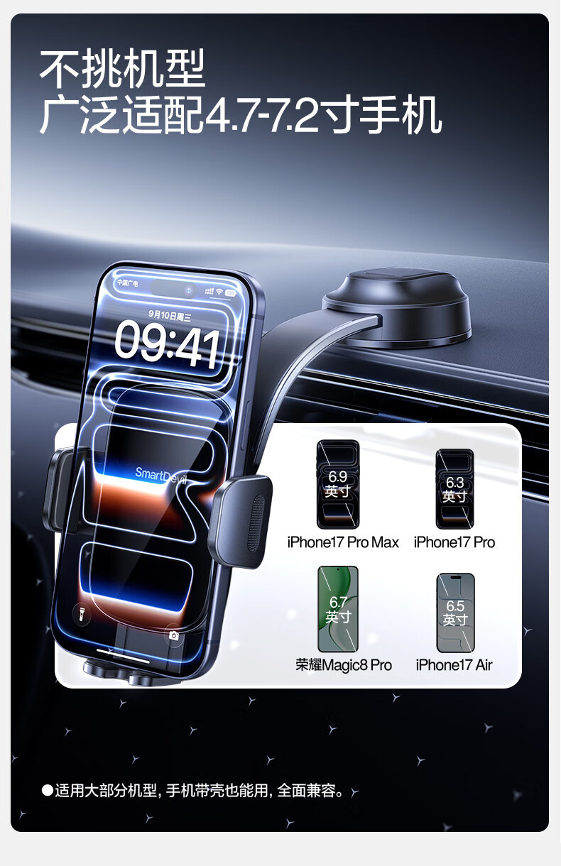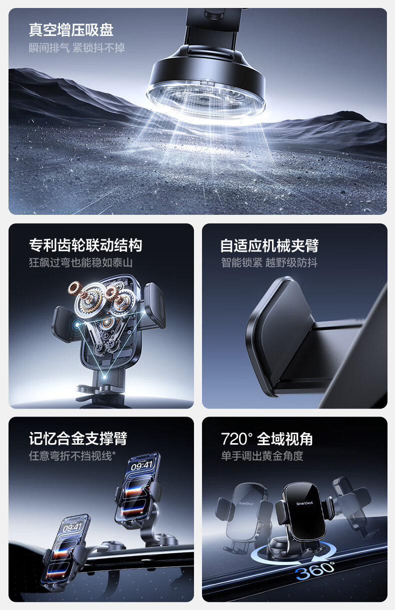 Shanmo Car Mobile Phone Holder Vacuum Suction Cup Car Navigation Special Dashboard Holder Universal 2025 New Recommendation Patented Clamping Model Top Equipped with Stable Adsorption - 720 Panoramic Viewing View - Full Model Adaptation