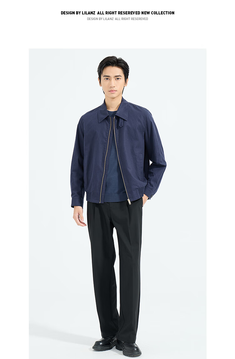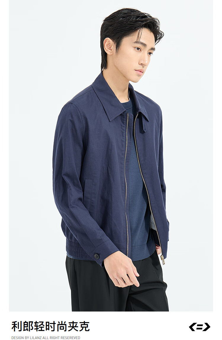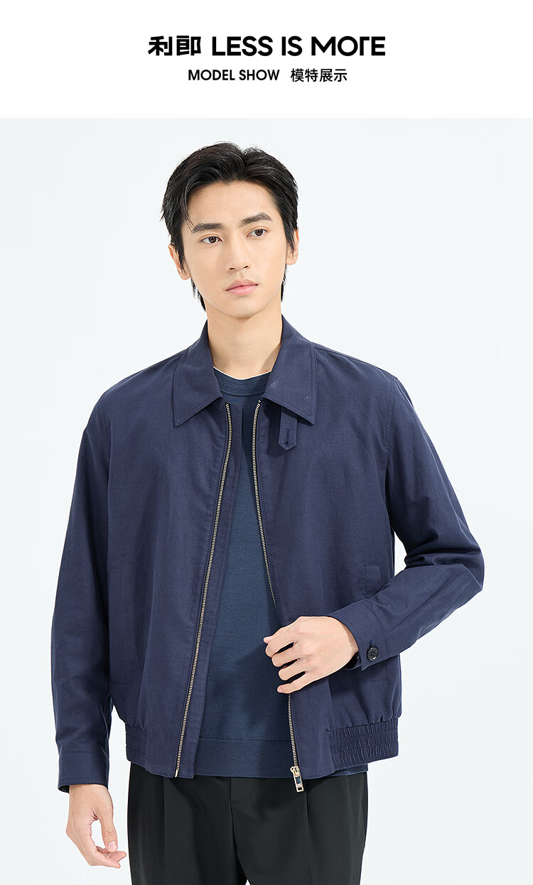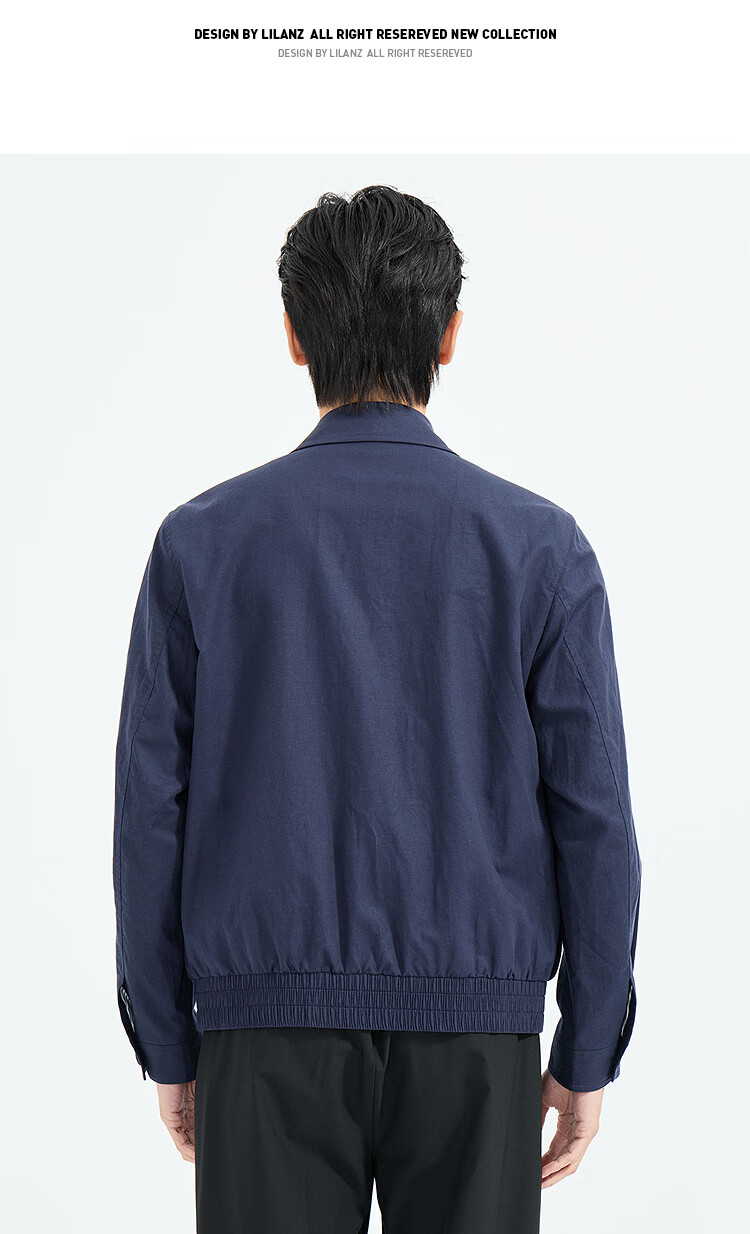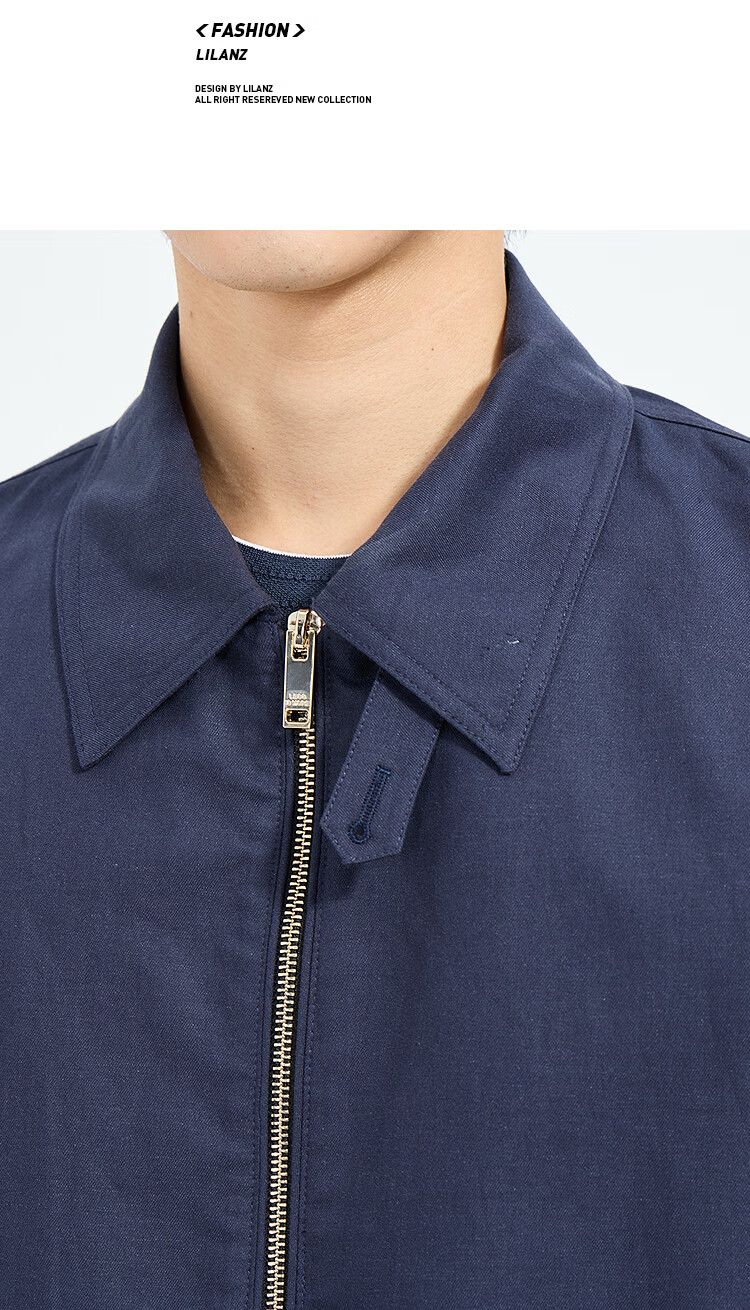 Lilang Light Fashion Men's Stretch Cotton Linen Jacket Men's Zipper Lapel Youth Commuting Easy-Care Executive Jacket Navy (1K) M (165)