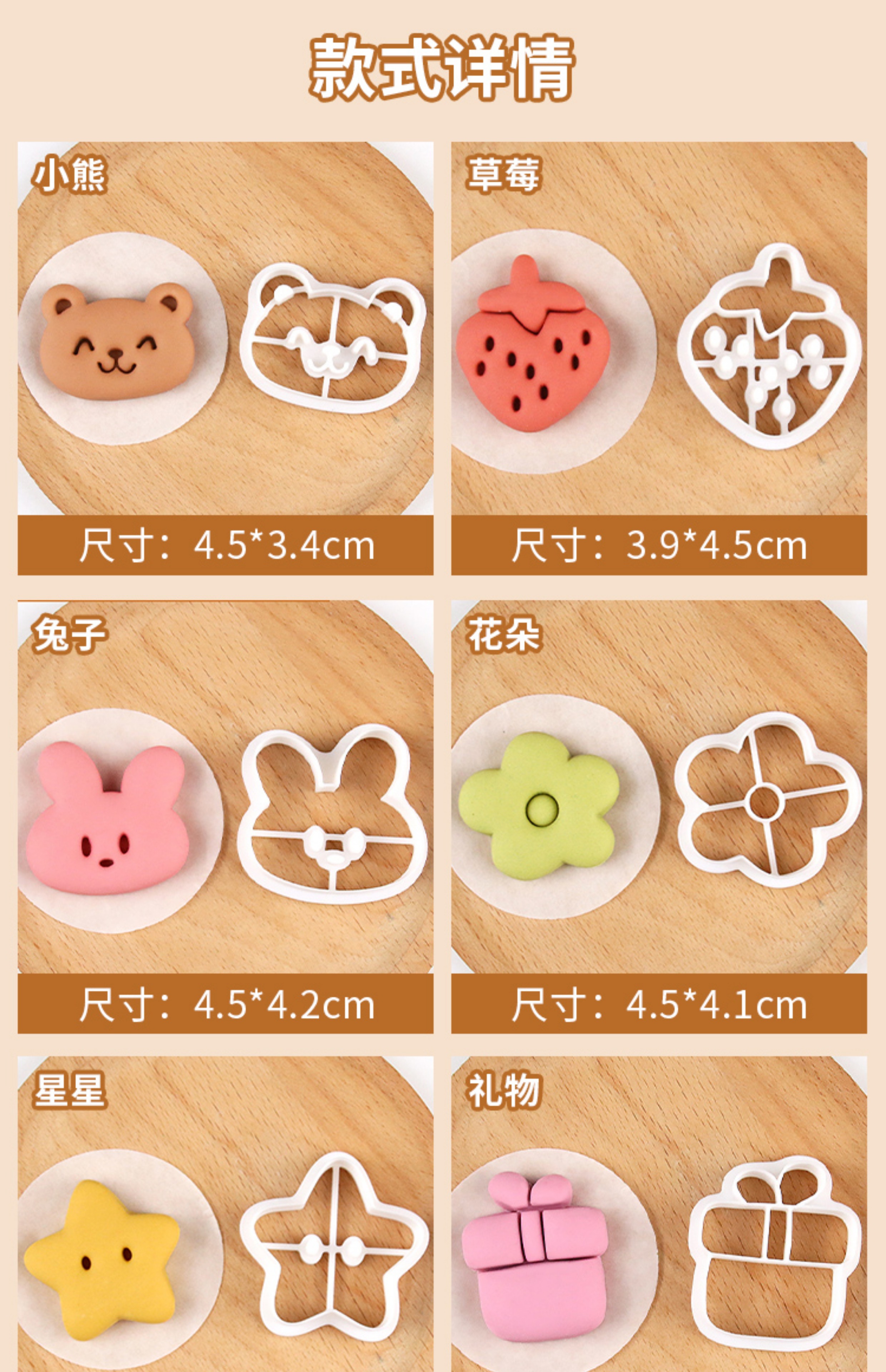 Qiao Bo Lai Cartoon Bear Rabbit One-Bread Steamed Bread Mold Animal Pattern Noodles Pasta Pastry Baby Non-staple Food Baking Heart Spring Style 3-piece Set