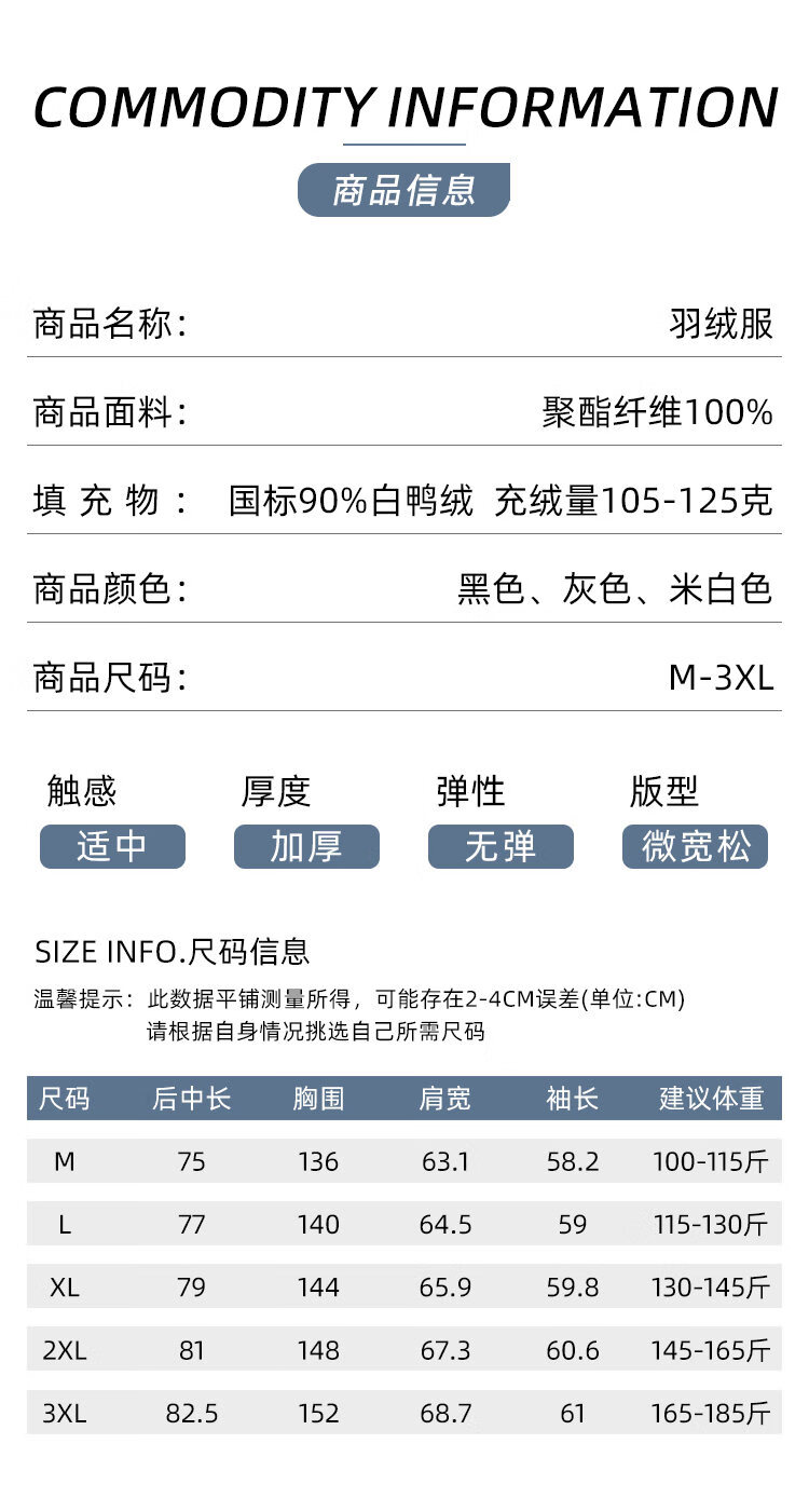 China (cm) 165 / 88-90 170 / 96-98 175 / 108-110 180 / 118-122 185 / 126-130