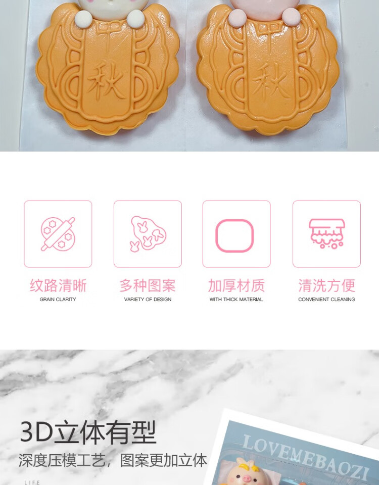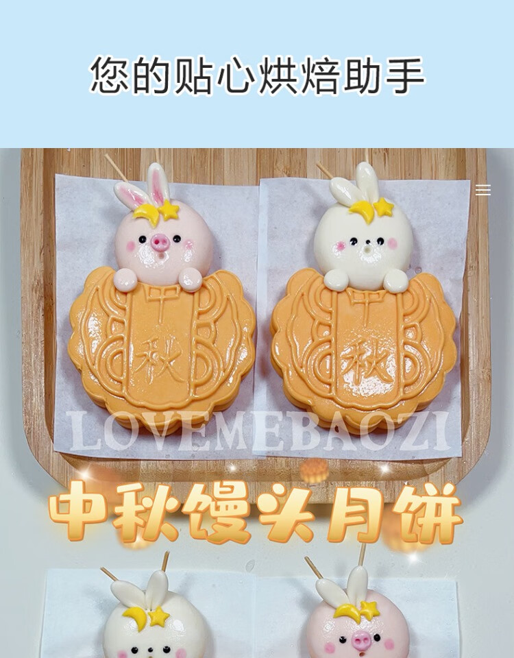 Teacher Qiao Bo Lai Loveme Mid-Autumn Mooncake Rabbit Cartoon Steamed Bun Mold Pattern Shape Steamed Bun Pasta DIY Production Dotting Pen 5-piece Set