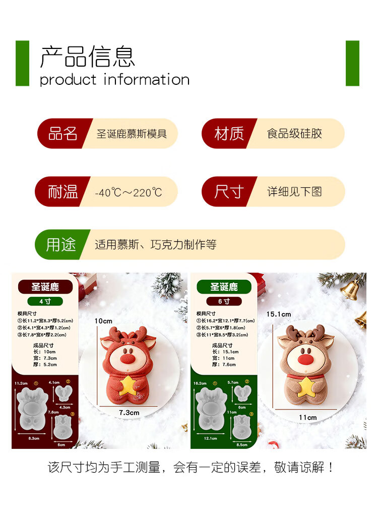 Qiao Bo Lai Christmas Elk Dessert Silicone Mold Baking Chocolate French Mousse Cake Cute Food Grade Mold Lollipop Sticks 100 Pack
