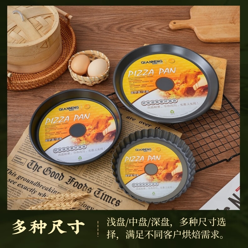 Qiao Bo Lai pizza pan baking pan household oven baking 6-inch 7-8-9-10 inch round pizza set cake mold 1 large brush