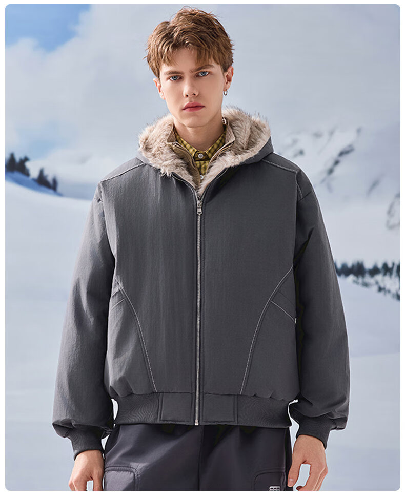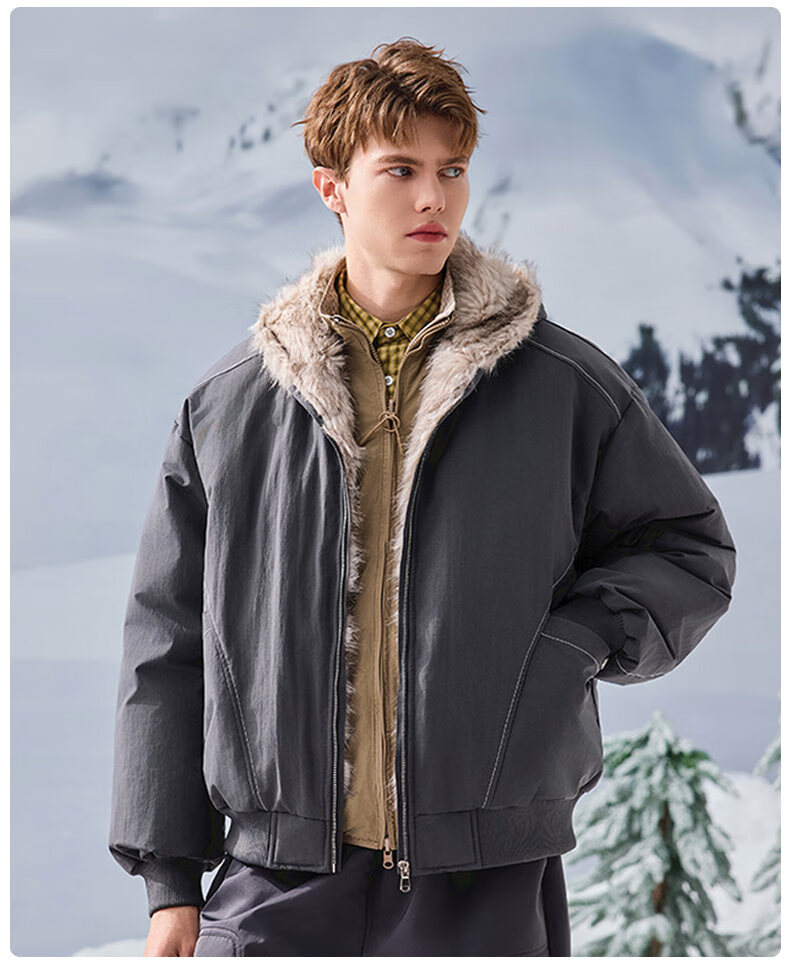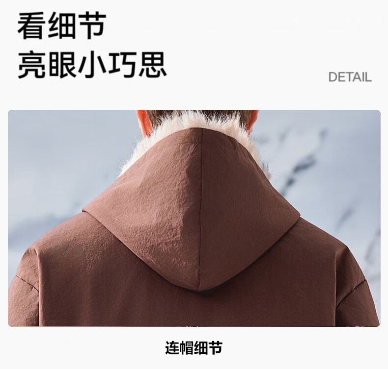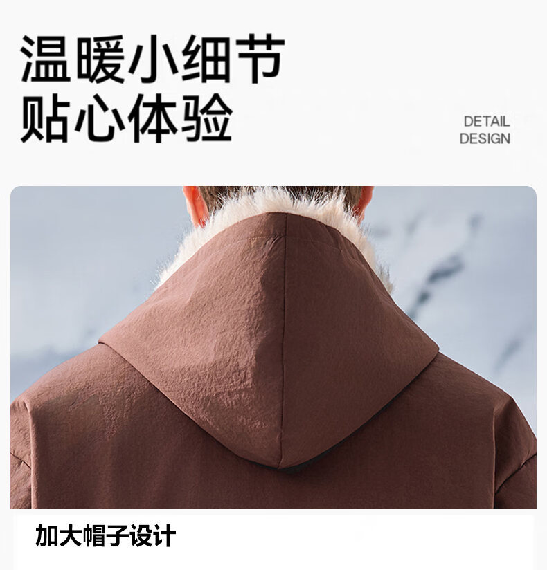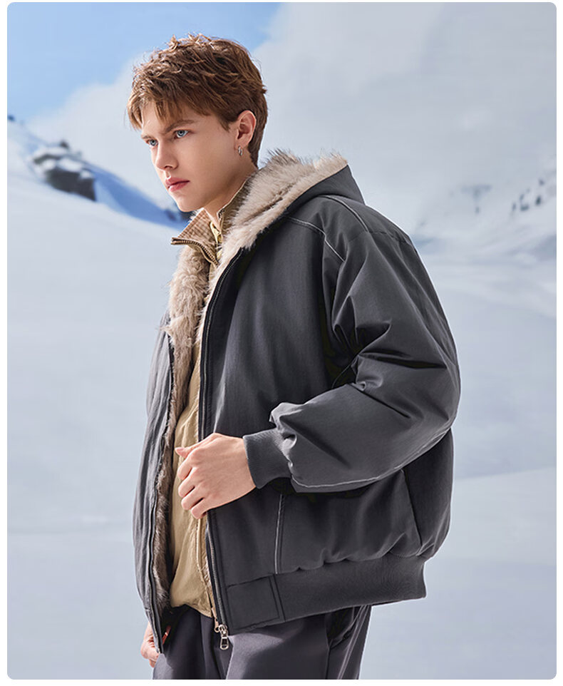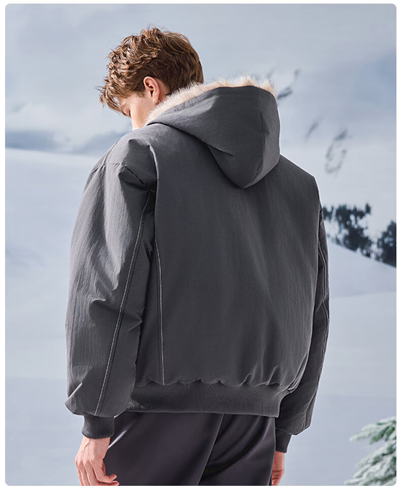 JEEP SPIRIT American retro velvet jacket men's winter new mountain sculpture loose hooded parka down jacket dark gray XL