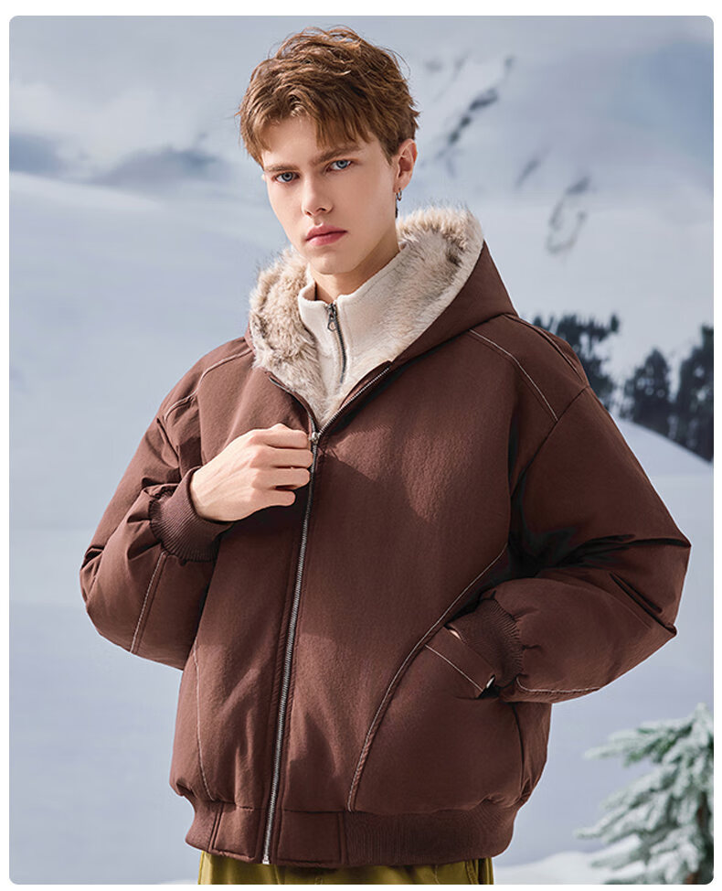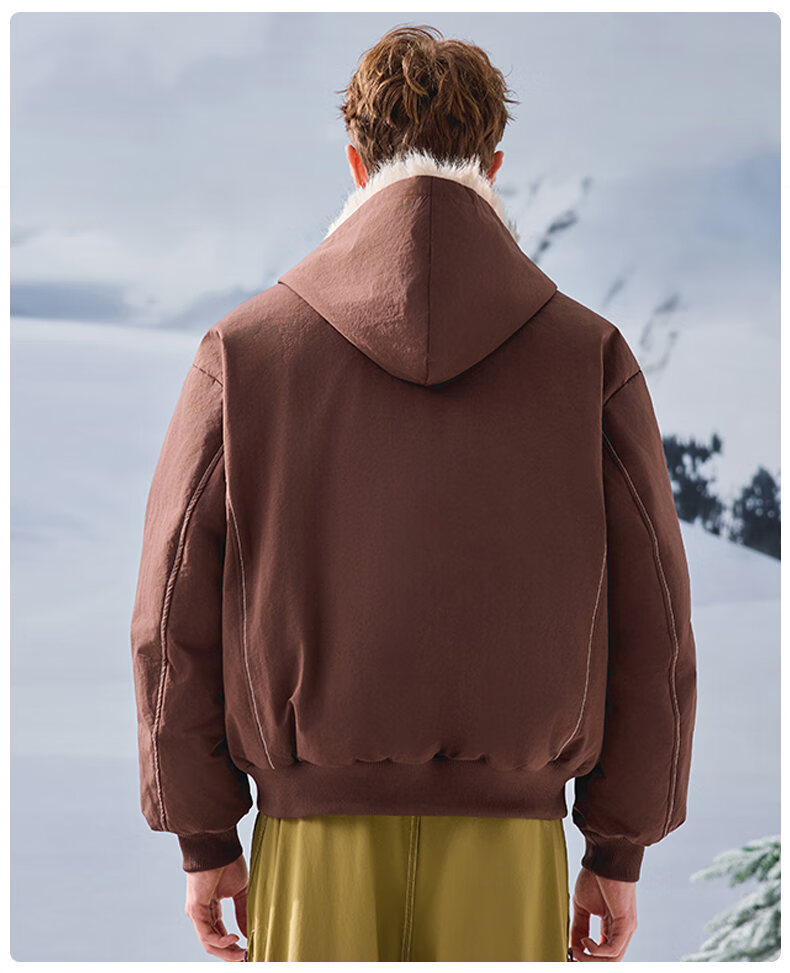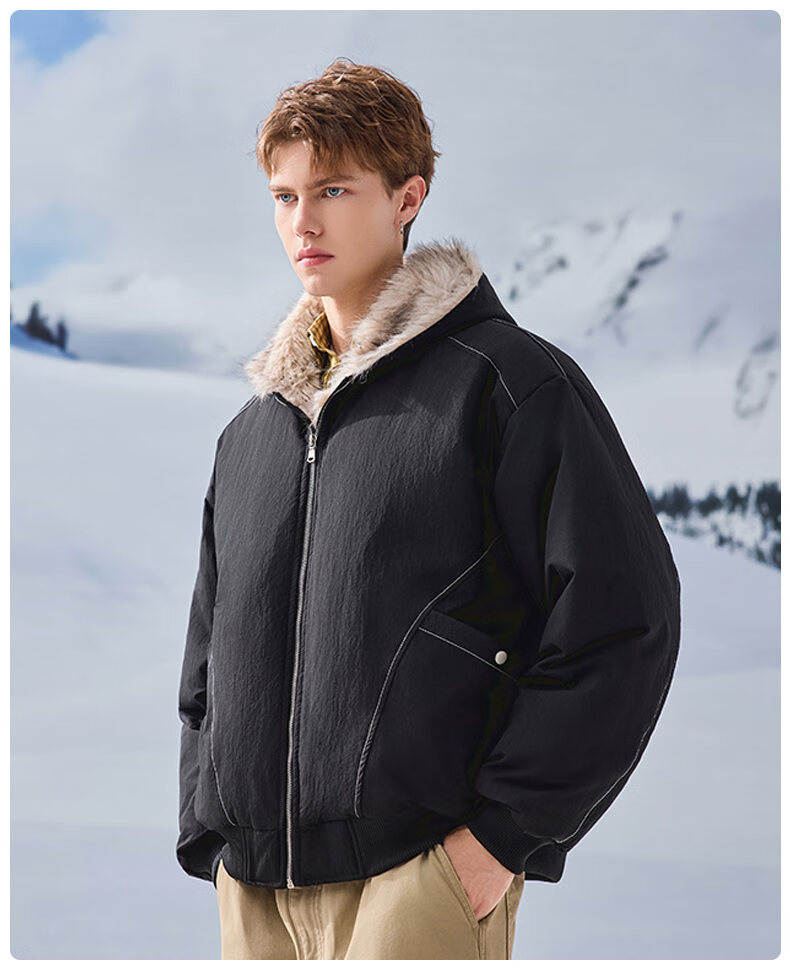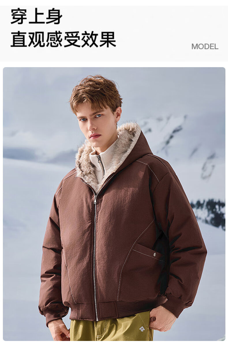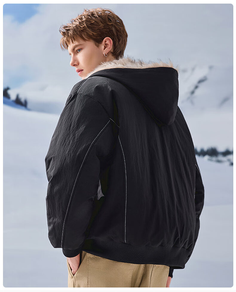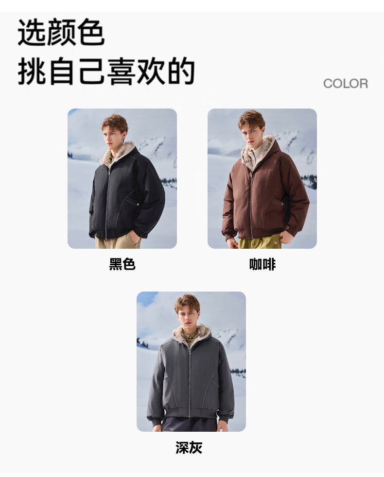 JEEP SPIRIT American retro velvet jacket men's winter new mountain sculpture loose hooded parka down jacket dark gray XL