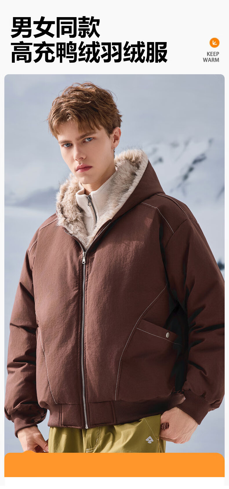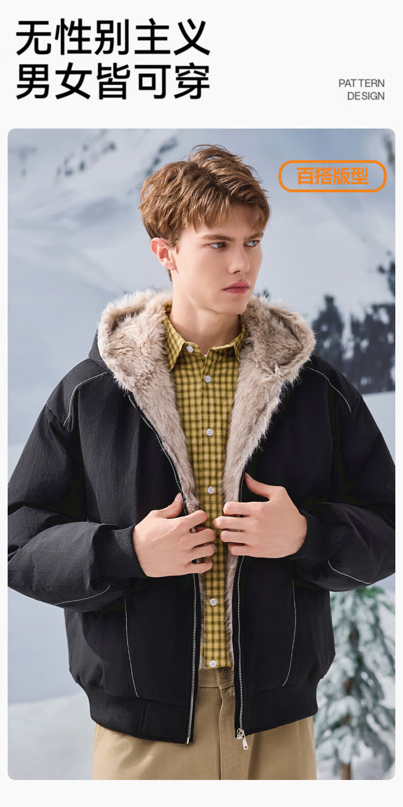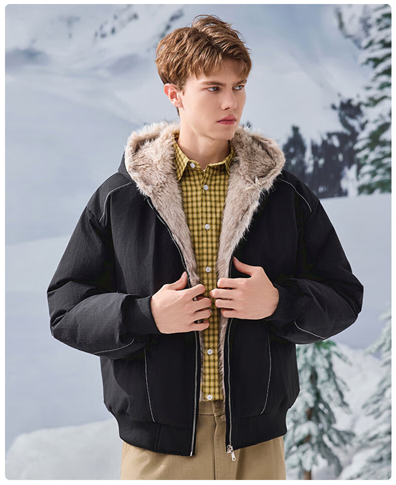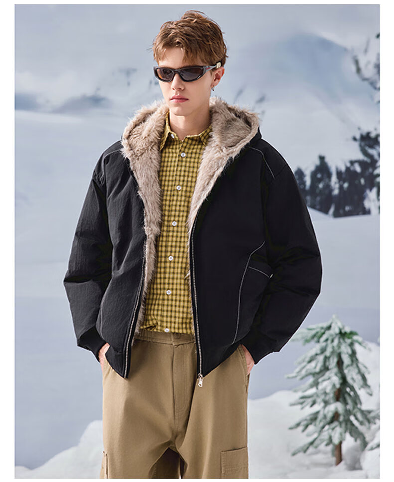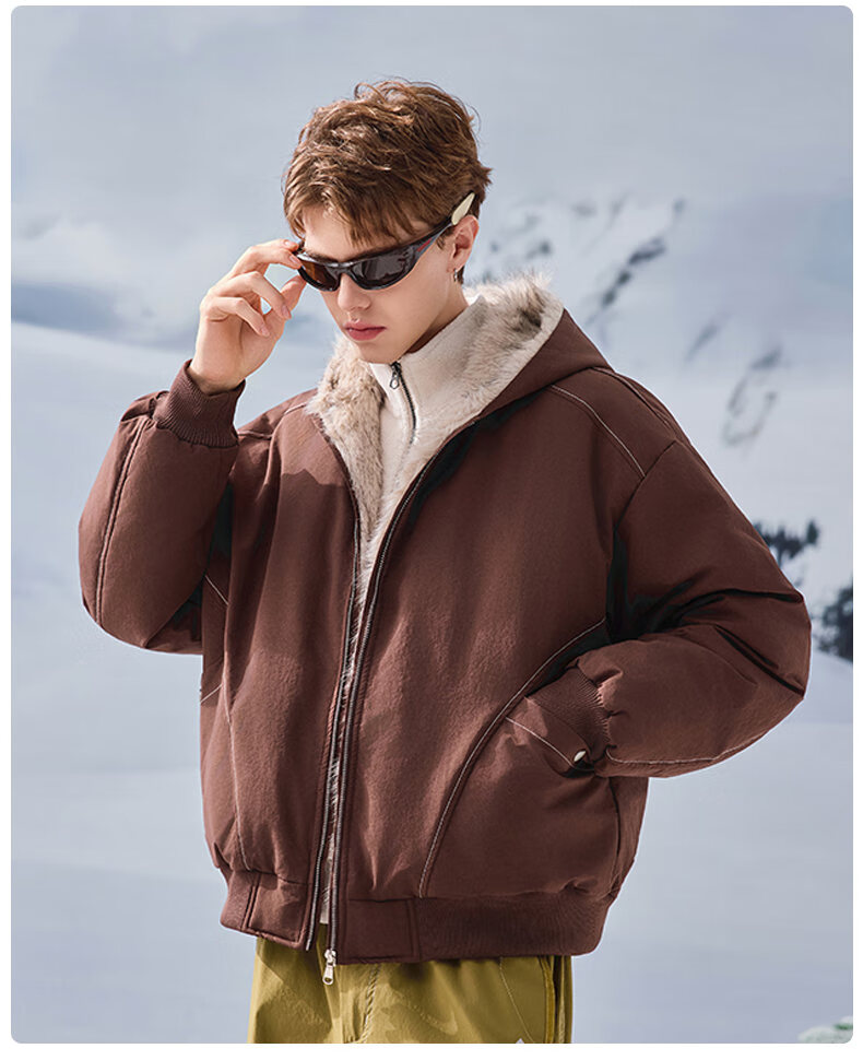 JEEP SPIRIT American retro velvet jacket men's winter new mountain sculpture loose hooded parka down jacket dark gray XL