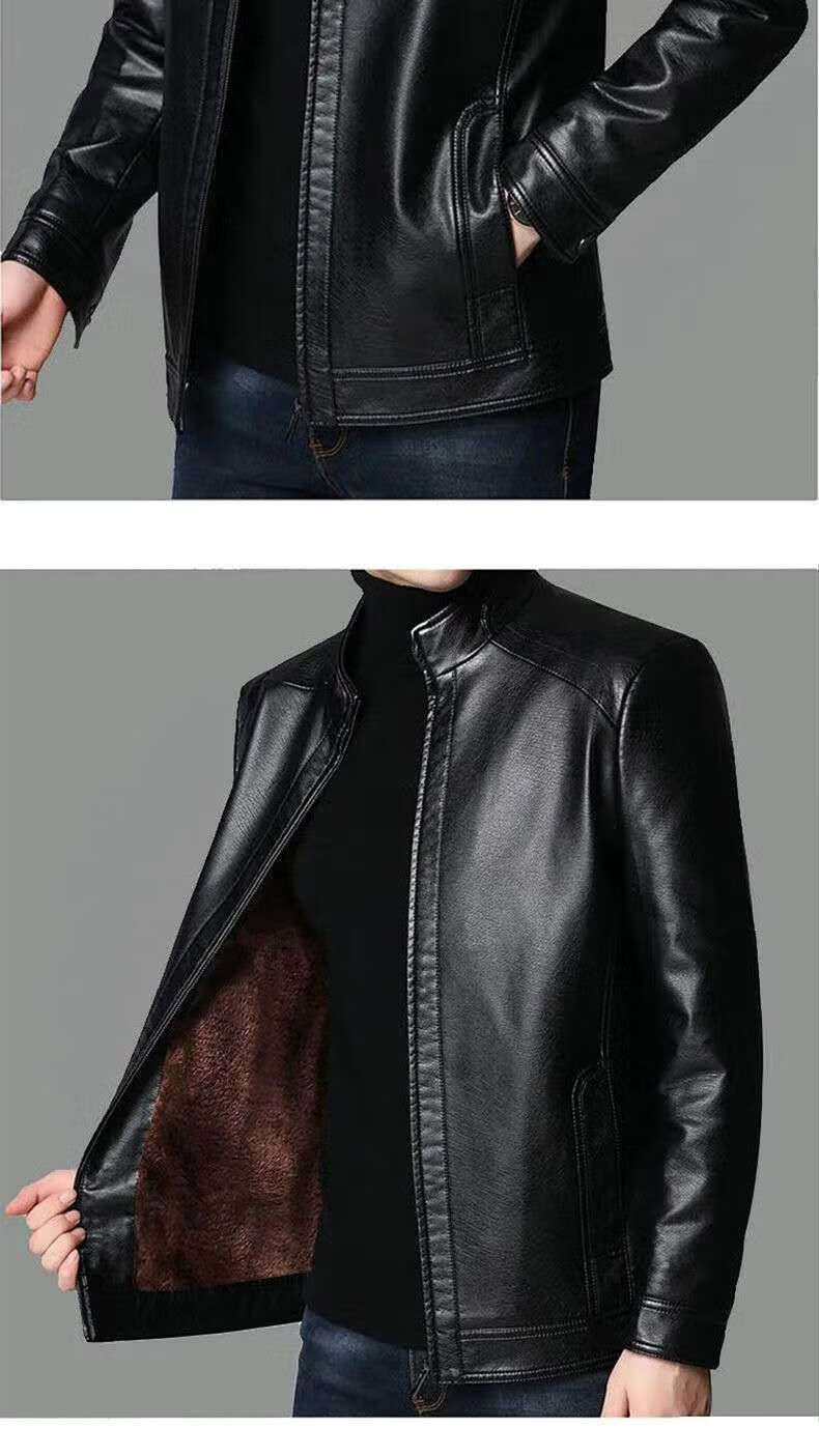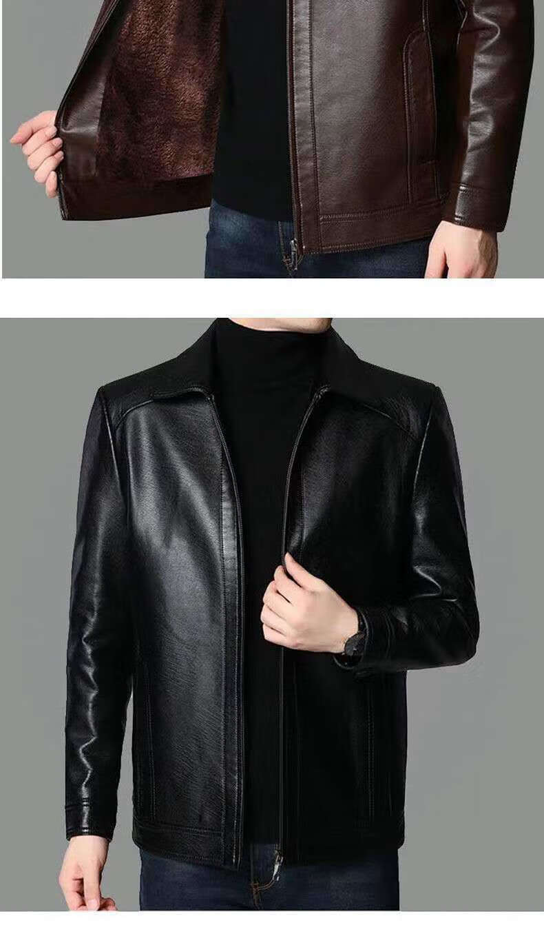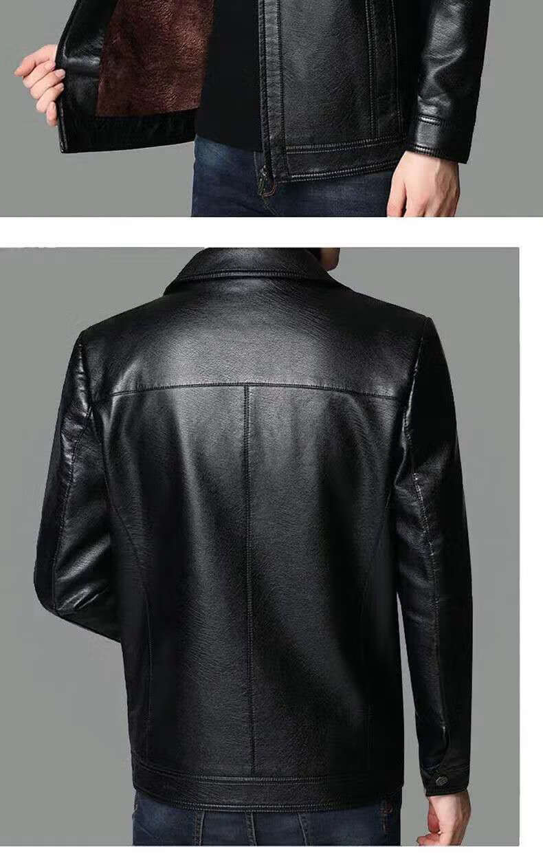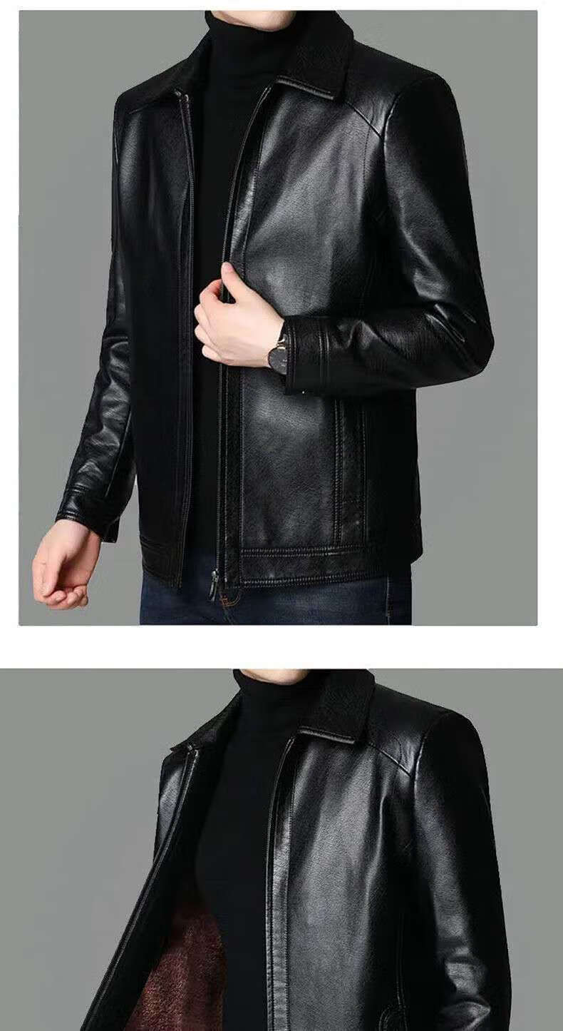 Кожаная мужская куртка Fat Donglai среднего и пожилого возраста, мужская куртка среднего и пожилого возраста с бархатом, того же фасона, что и Fat Donglai, черный лацкан и бархат L 175/92A (110130