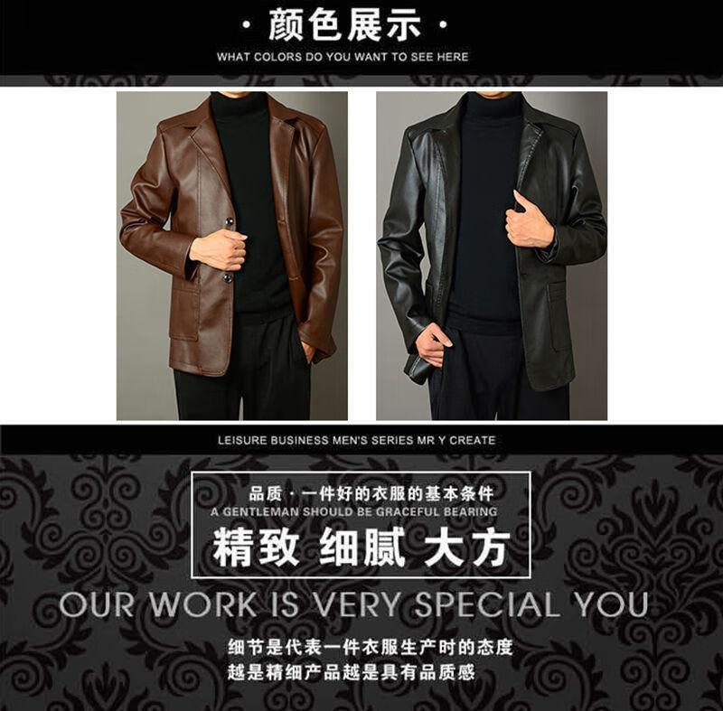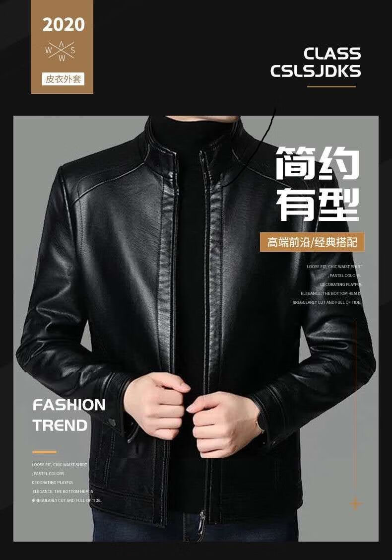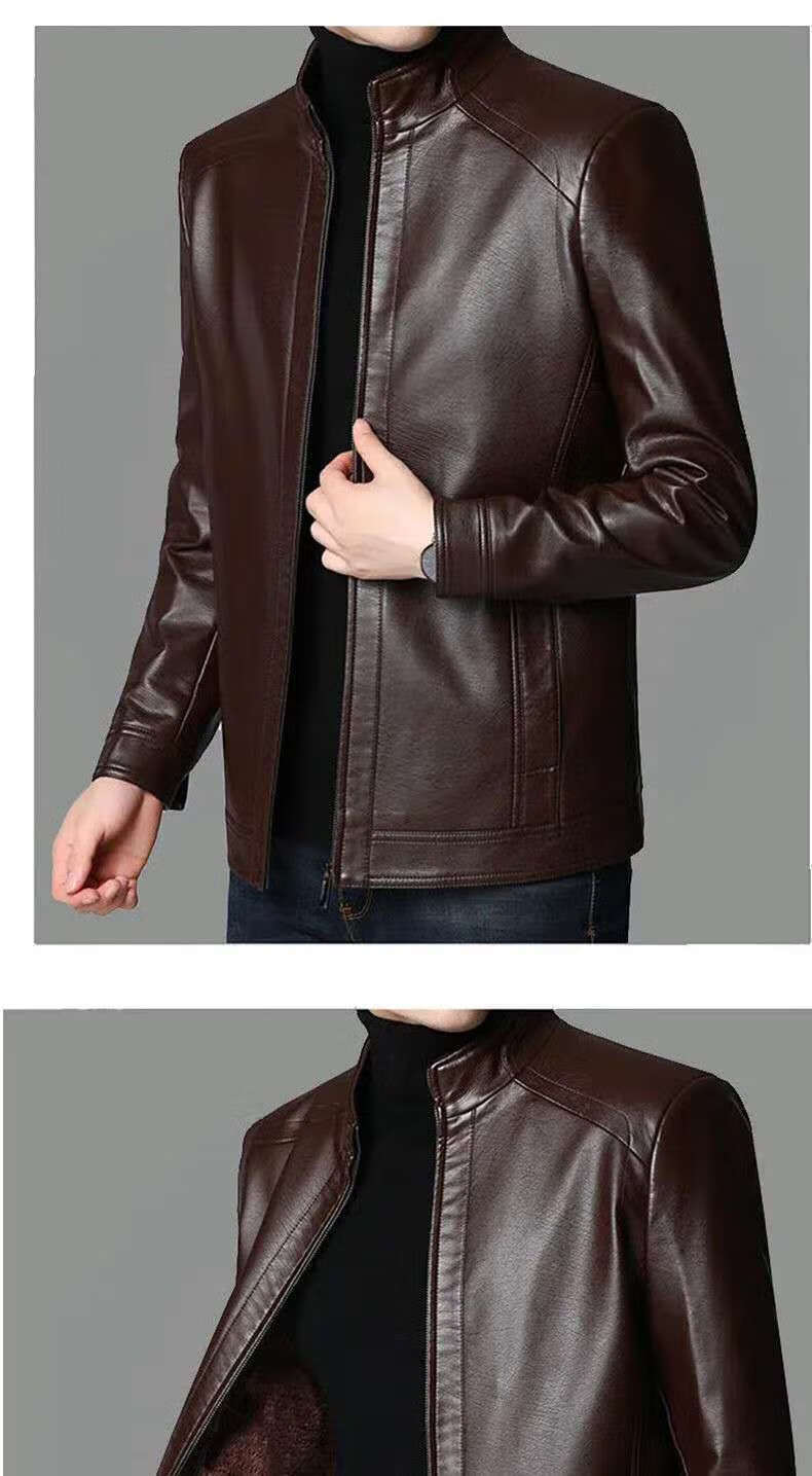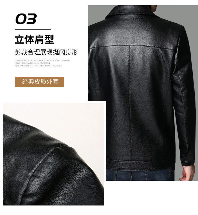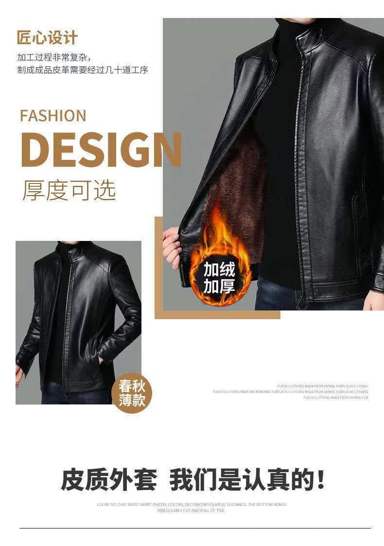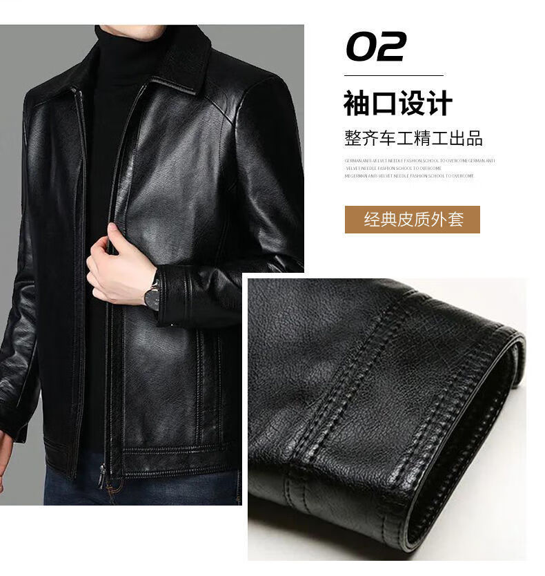 Кожаная мужская куртка Fat Donglai среднего и пожилого возраста, мужская куртка среднего и пожилого возраста с бархатом, того же фасона, что и Fat Donglai, черный лацкан и бархат L 175/92A (110130