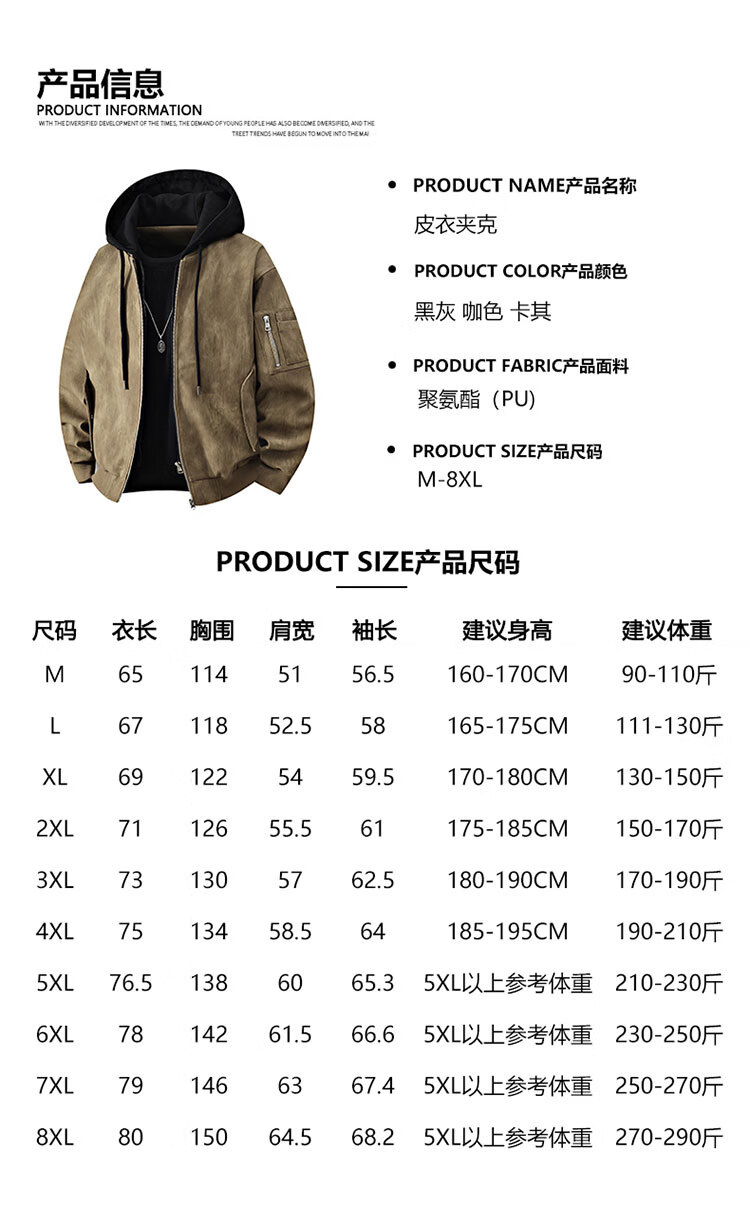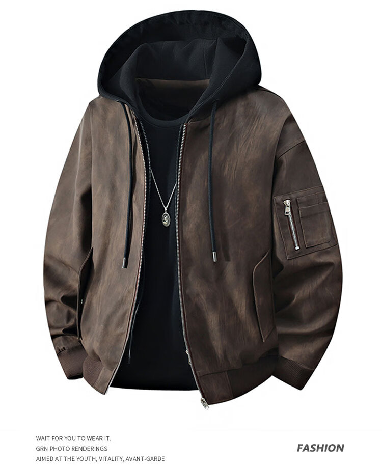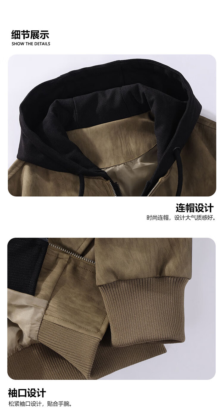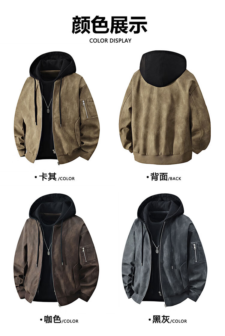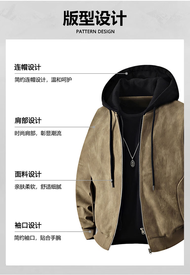 胖东来大码连帽皮衣外套男士春秋季假两件上衣胖东来同款 2578卡其 XL 130150斤