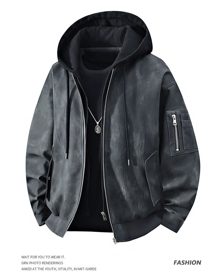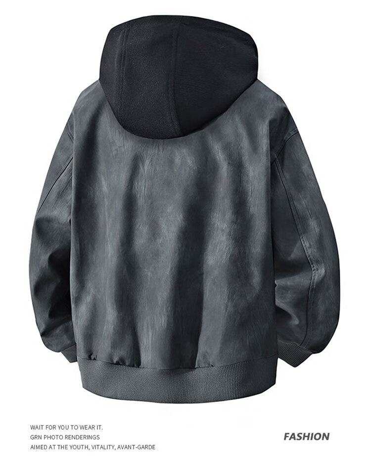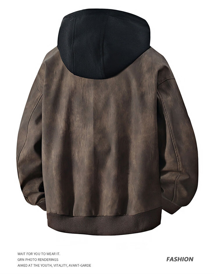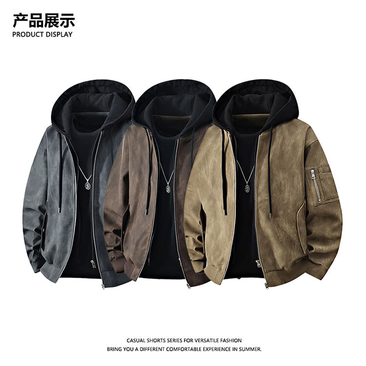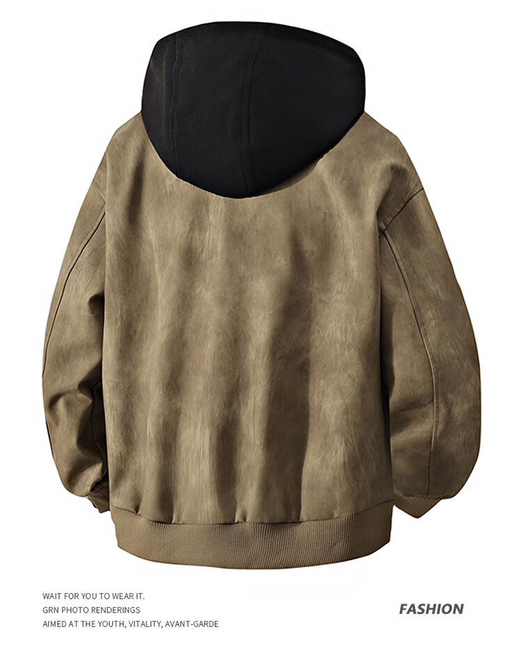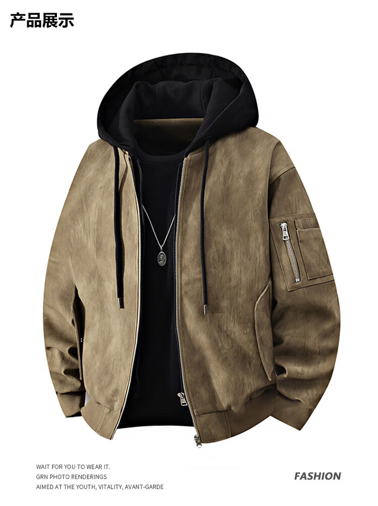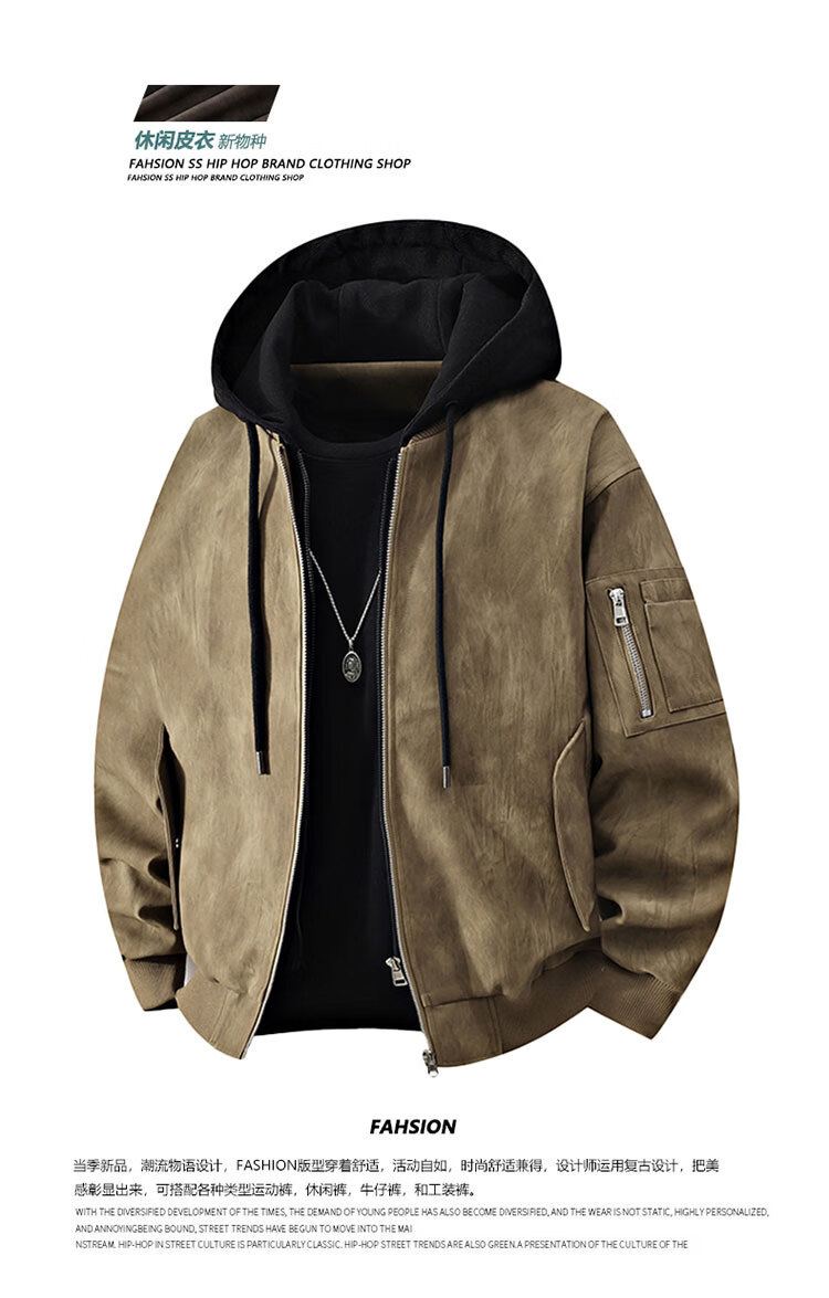 胖东来大码连帽皮衣外套男士春秋季假两件上衣胖东来同款 2578卡其 XL 130150斤