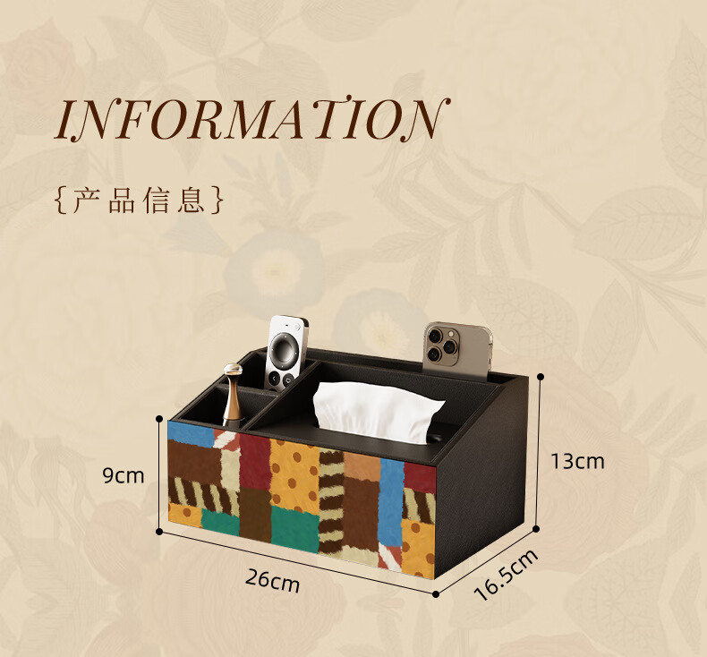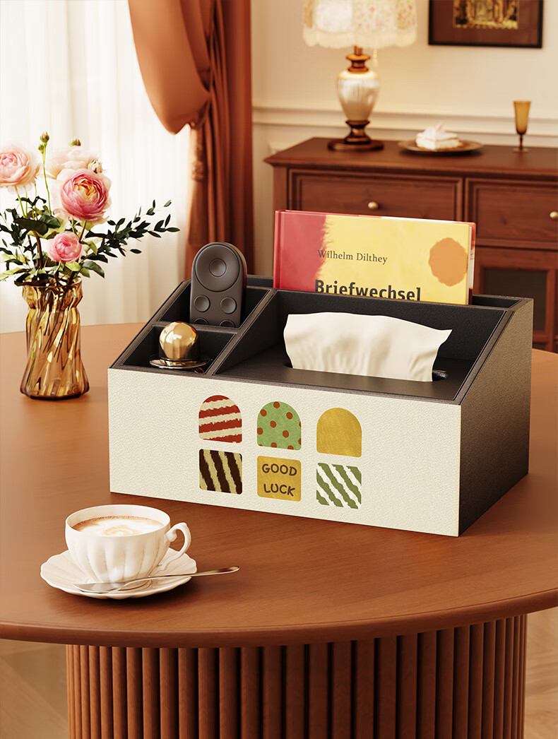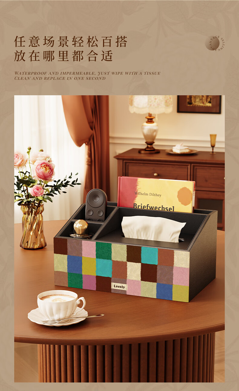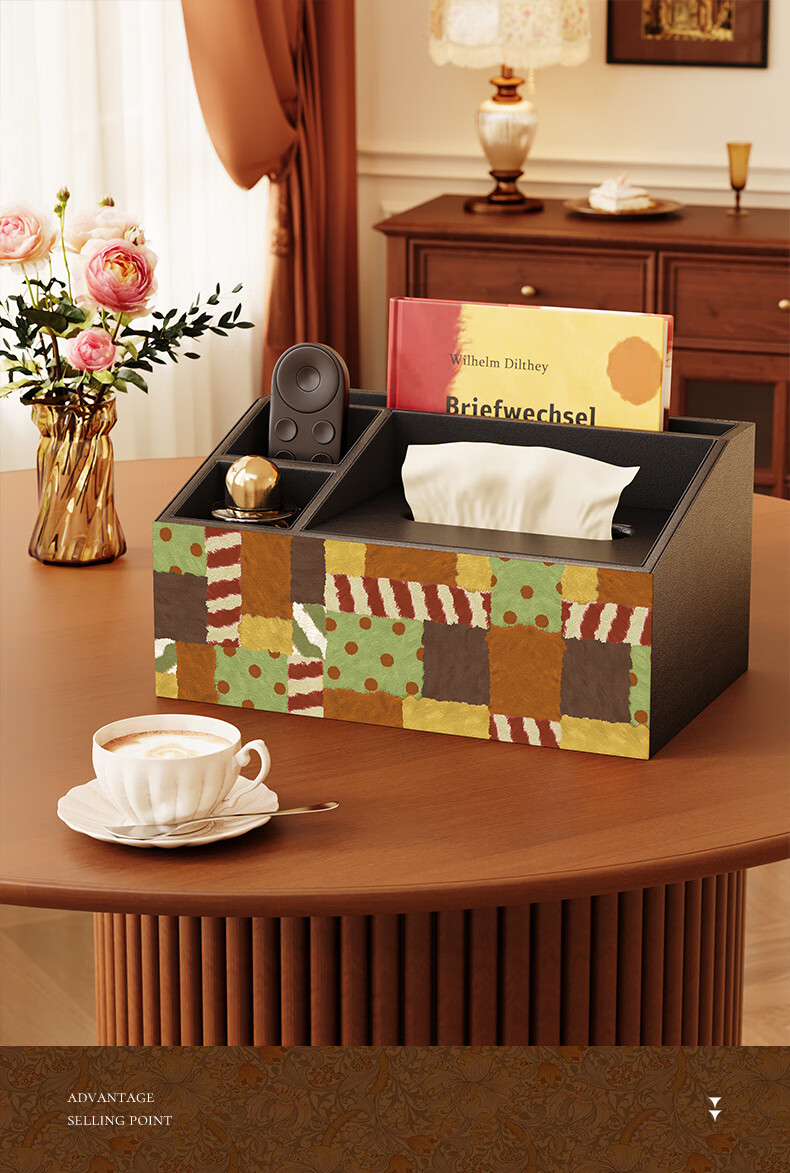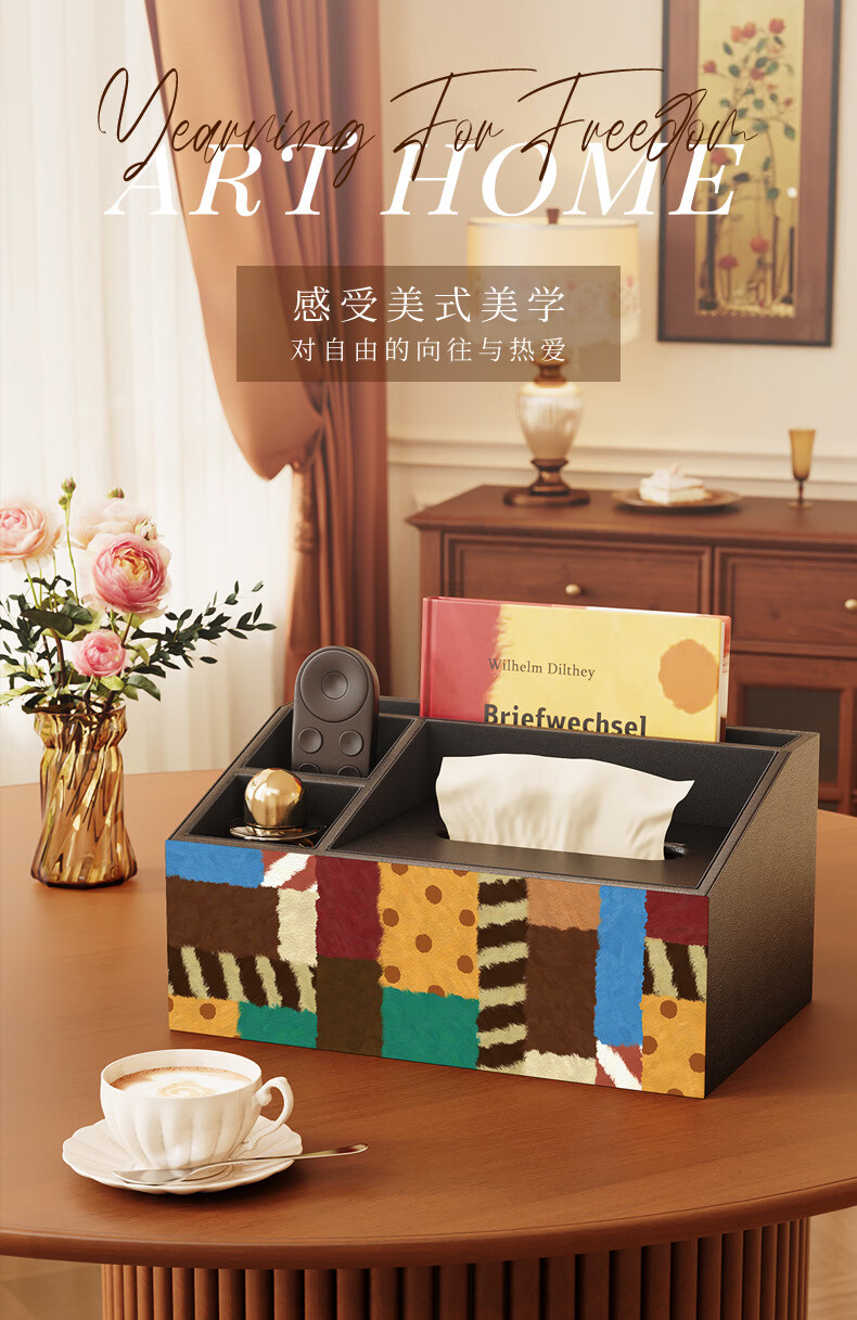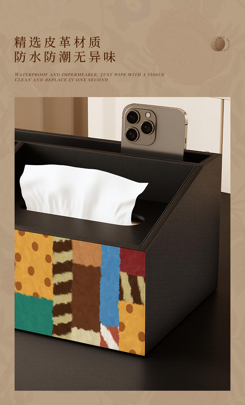 FAJIENUO American retro tissue box household living room tissue box multi-functional storage box paper tissue box remote control organizing box Orange Xunsong-A 26*26.5*13