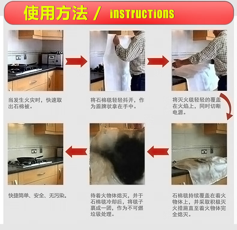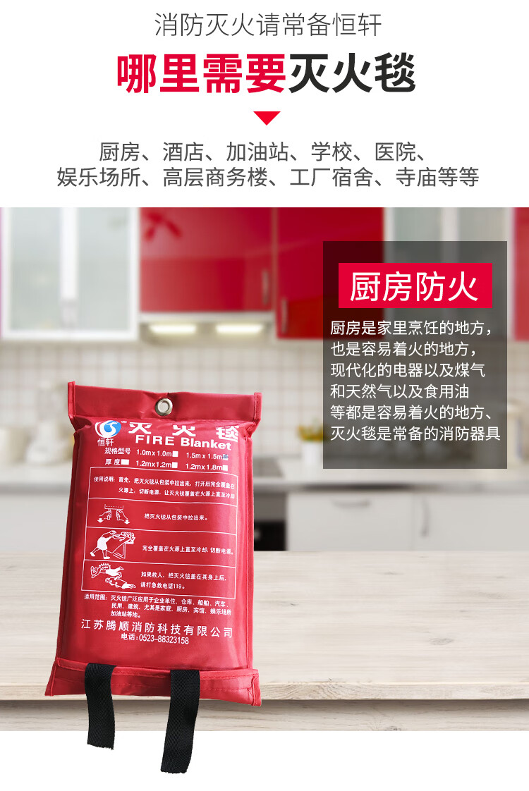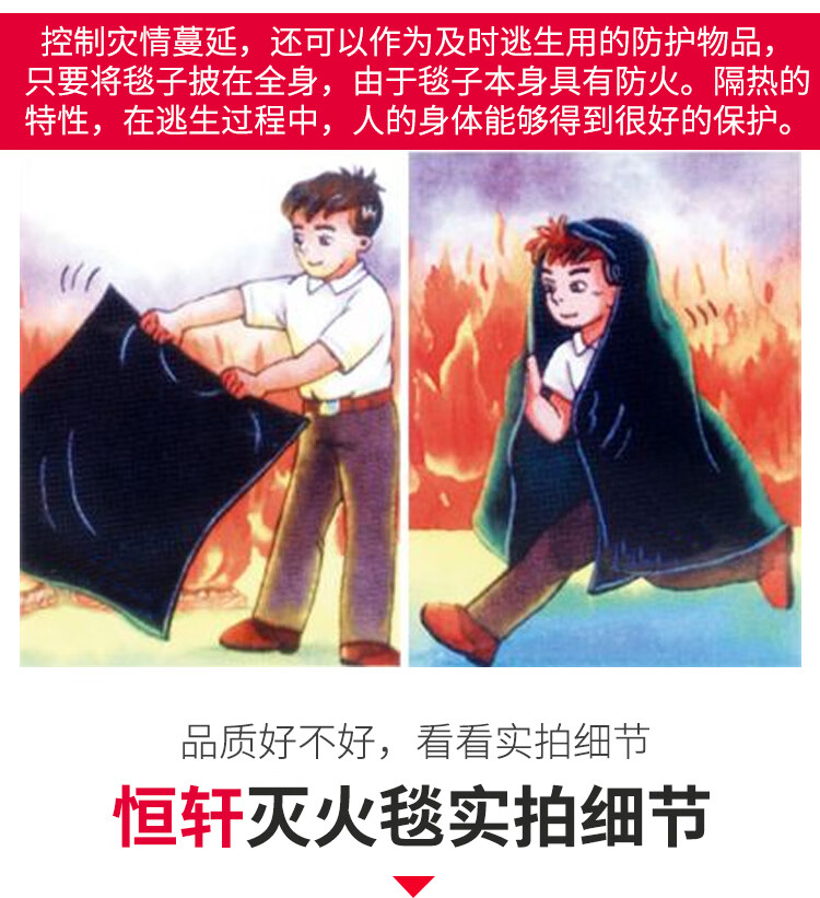 Fire blanket fire certified household kitchen fireproof cloth fiberglass 1m 1.2m 1.5m 2m national standard test report 1.2m*1.8m (thick and exquisite boxed)