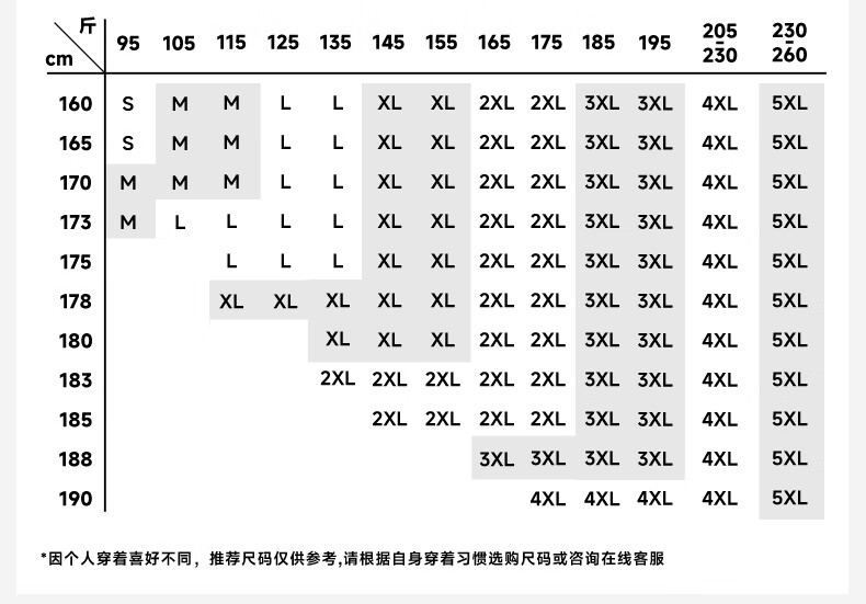 China (cm) 160-165/84-86 165-170 / 88-90 167-172 / 92-96 168-173 / 98-102 170-176 / 106-110