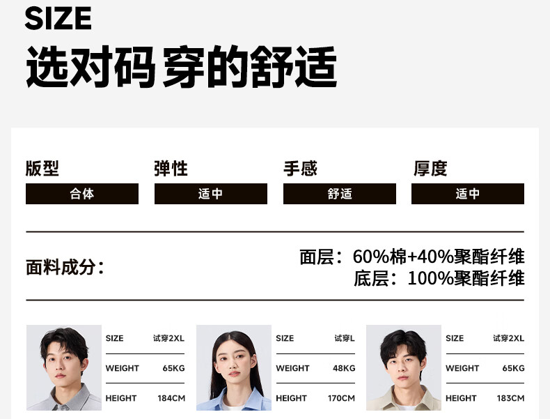 China (cm) 165 / 88-90 170 / 96-98 175 / 108-110 180 / 118-122 185 / 126-130