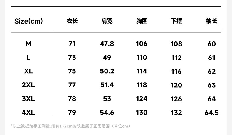 Size (cm) 42 44 46 48 50
