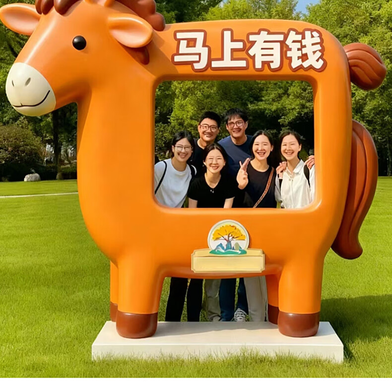 Shangyi Cartoon Horse Photo Frame Check-in Device Mall New Year's Display Decoration Year of the Horse Internet Celebrity Check-in Point Interactive Drainage Ornament Customized Consultation