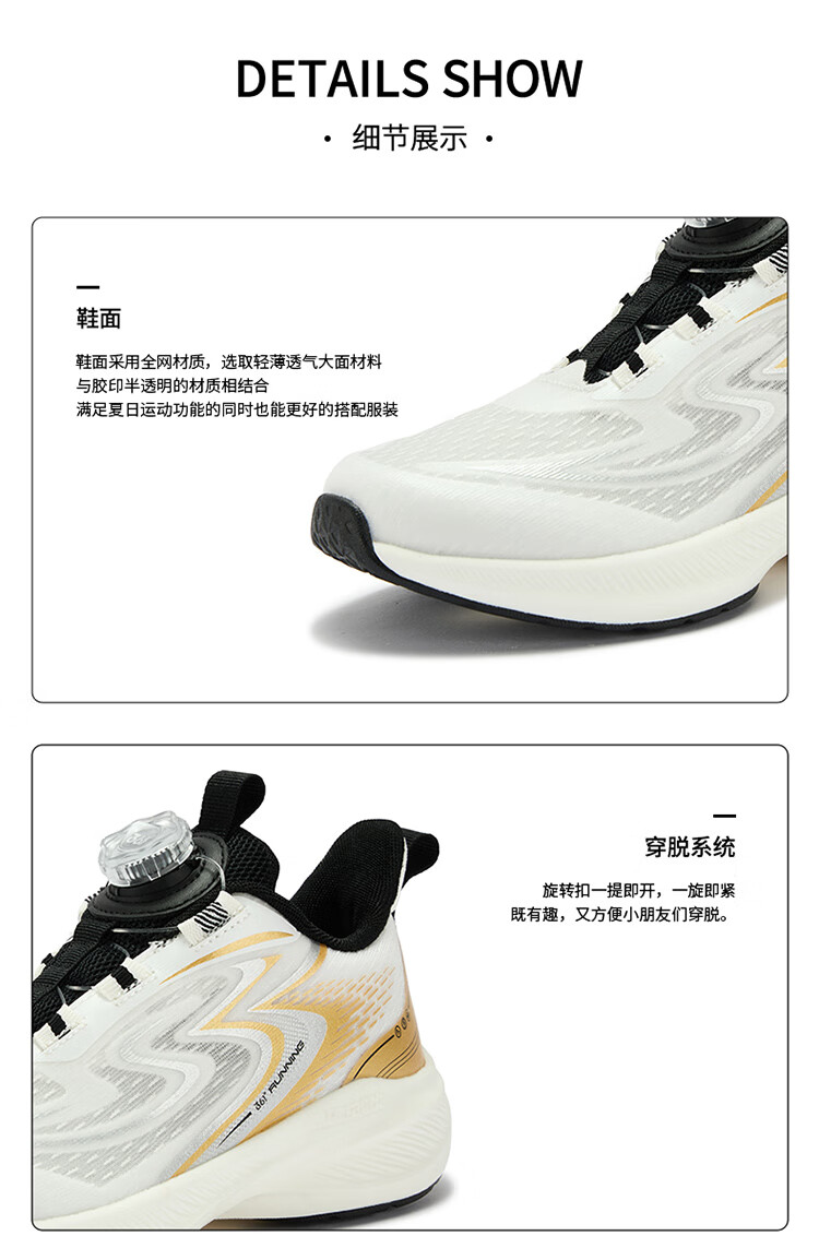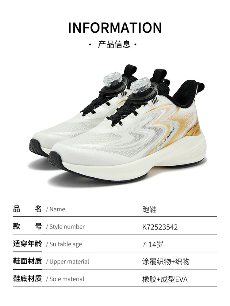 361 Children's Shoes Boys' Running Shoes Breathable and Non-Slip 2026 Spring New Medium and Large Children's Knob Buckle Sports Shoes 361 Degree White/Brilliant Orange 34