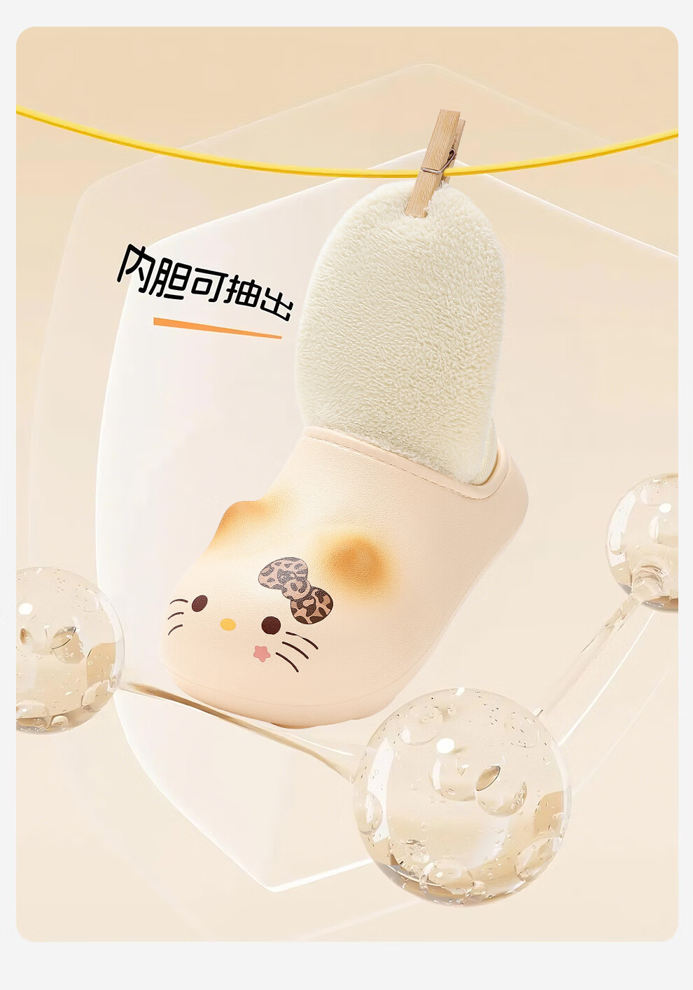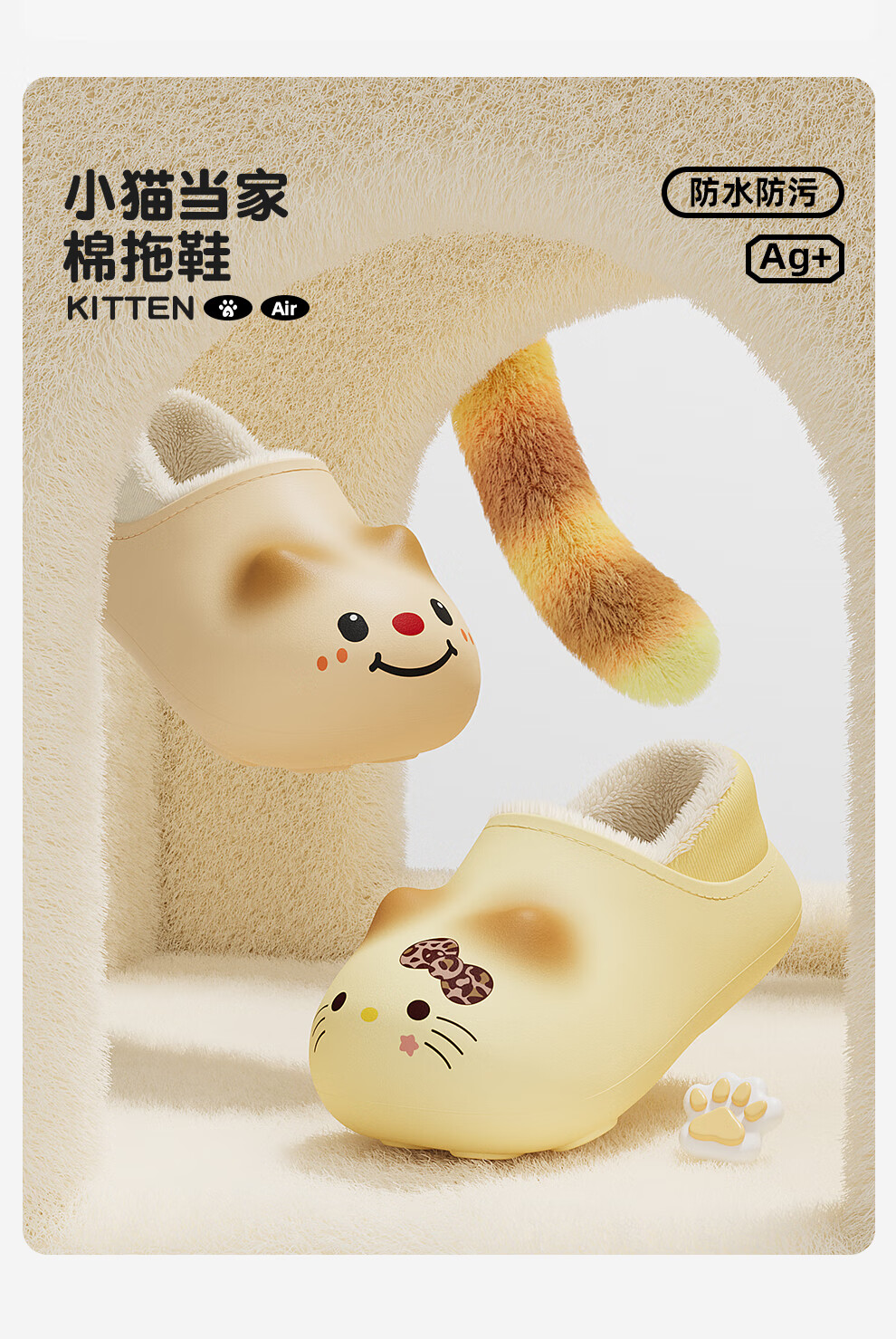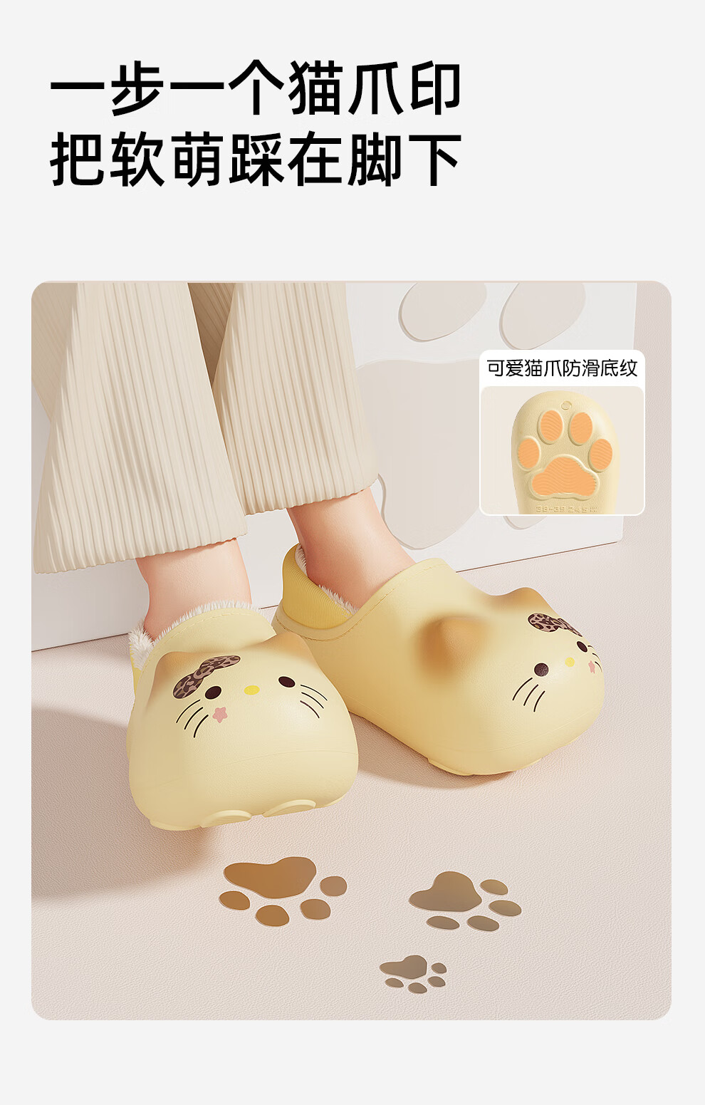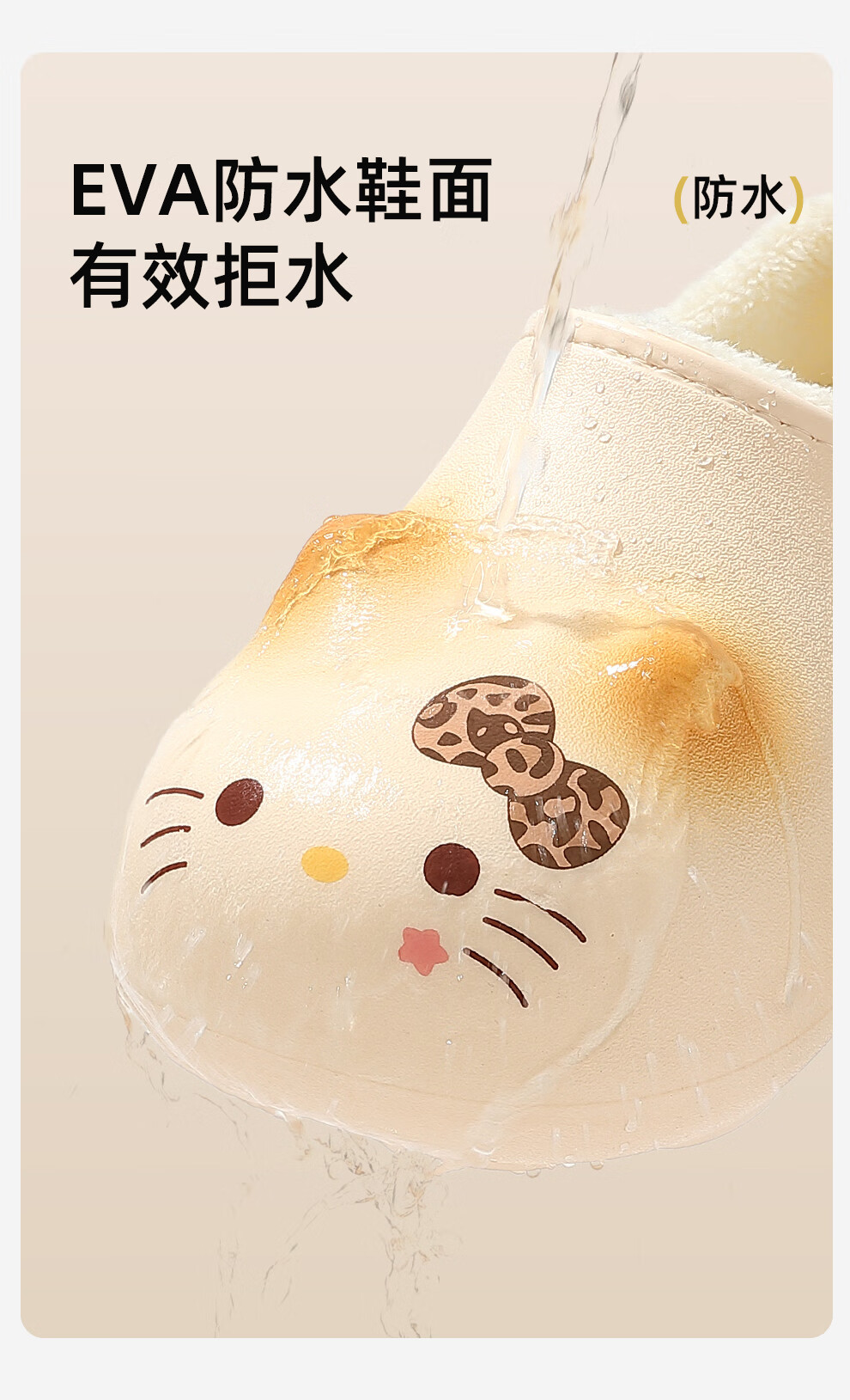 Bermuda Qingchen Children's Cartoon Cat Waterproof Slippers for Autumn and Winter Plus Velvet Warm Home Cotton Shoes Shell Easy to Clean Light and Comfortable White Blush Cat 30-31 Regular Size Inner Length 19.5cm