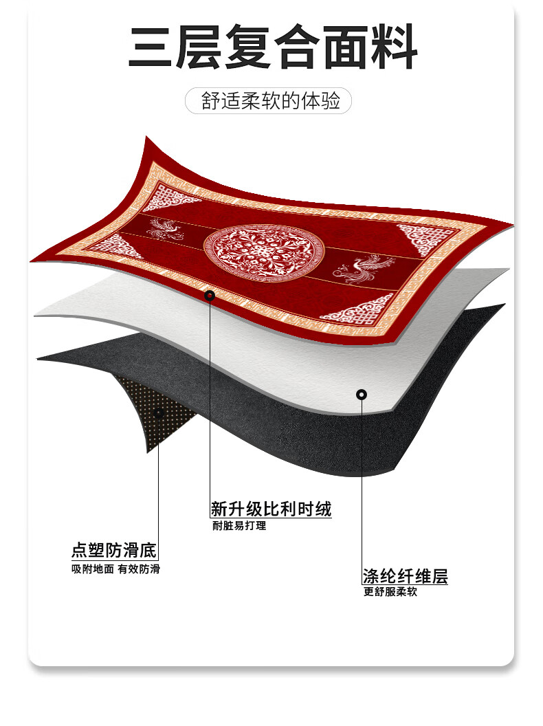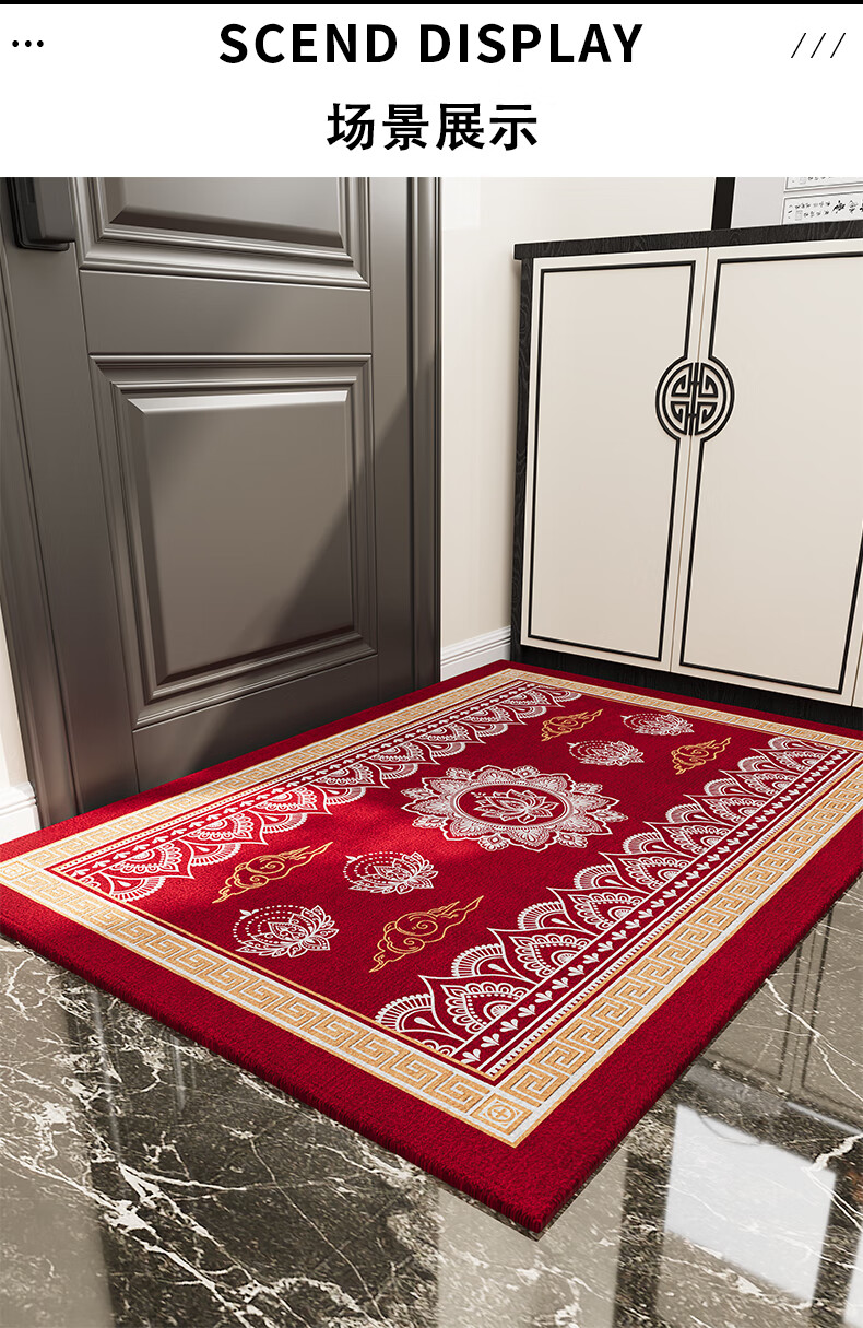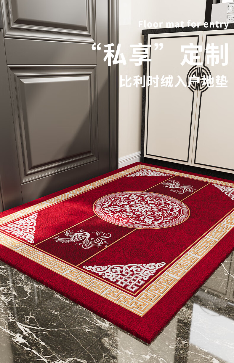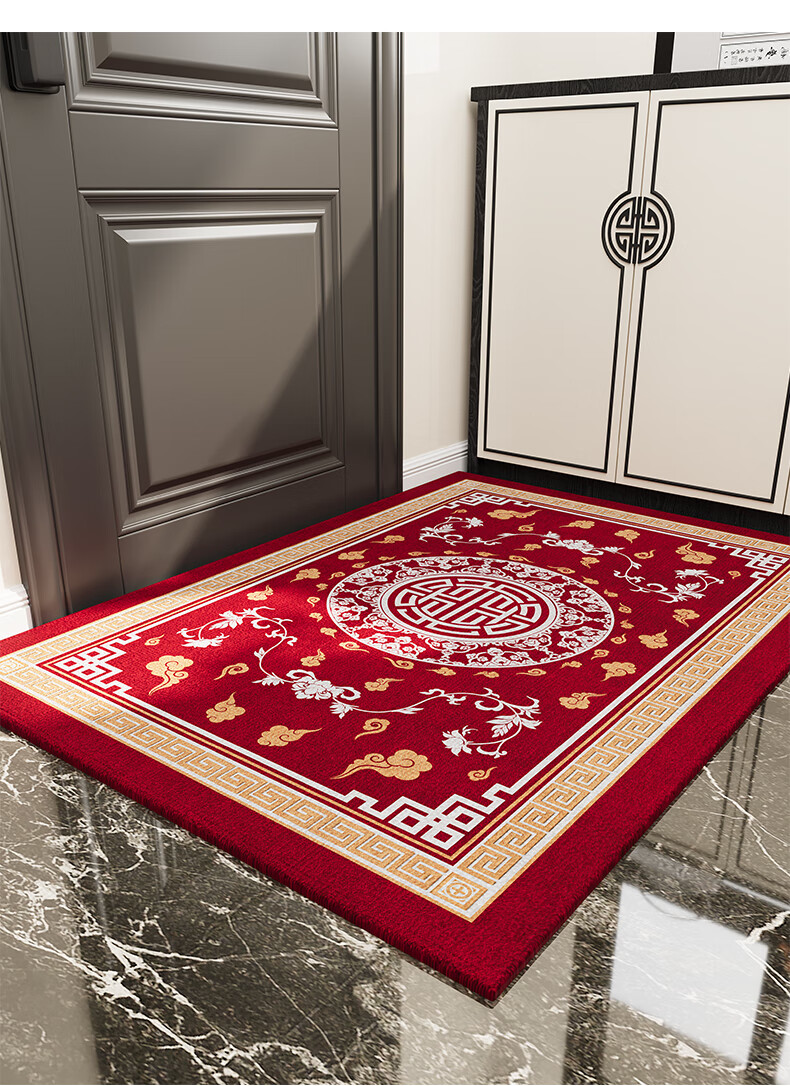 Vieruodis entrance door floor mats 2025 new door mat red festive carpet entrance door mat anti-slip and stain-resistant household Xiangyun Ruicai-Sijin 250cm*450cm new 8th generation Belgian velvet/dirty-resistant and anti-slip