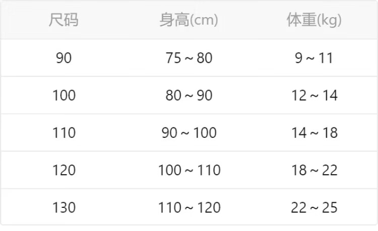 China (cm) 165 / 88-90 170 / 96-98 175 / 108-110 180 / 118-122 185 / 126-130