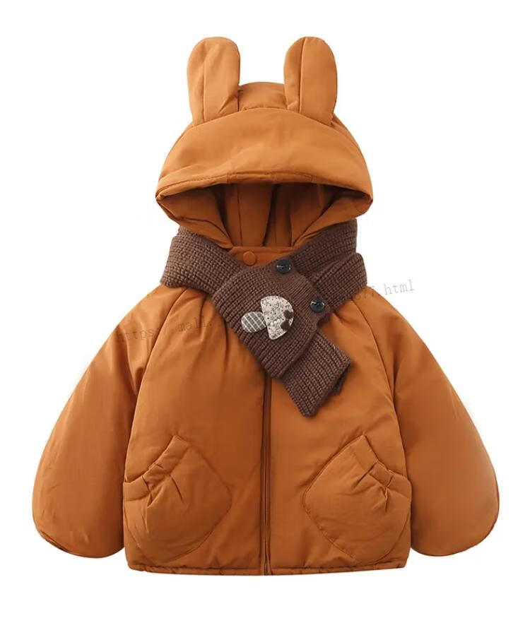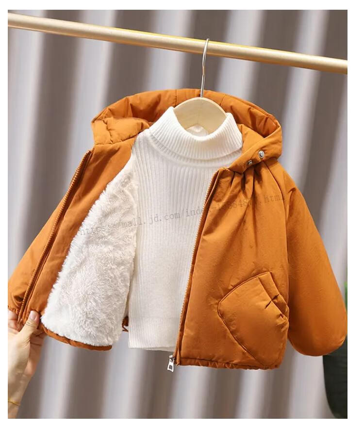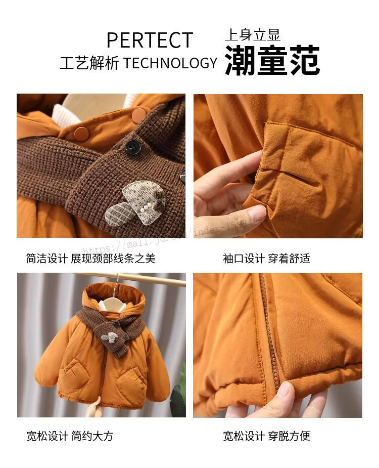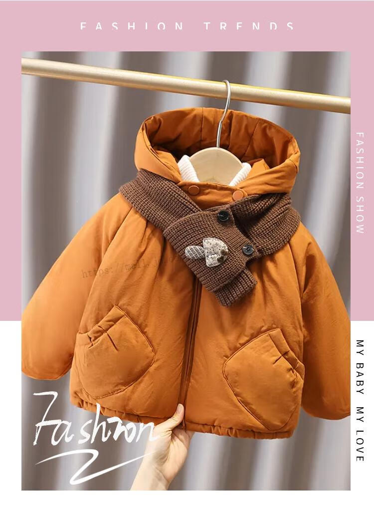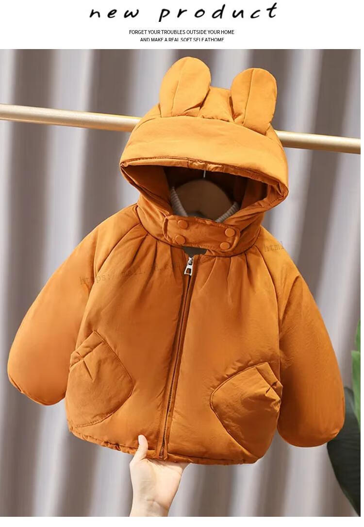 Disney (Disney) Girls' Velvet Thickened Cotton Jacket 2025 New Baby Girl's Warm Hooded Fashionable Winter Clothes Padded Children's Cotton Jacket Pumpkin Color Cotton Jacket 120 cm