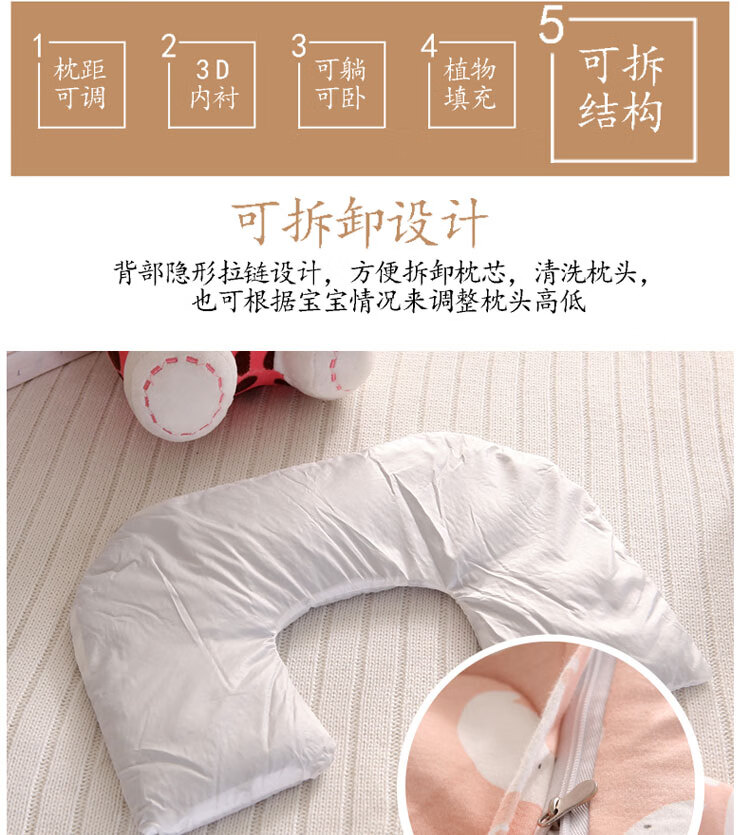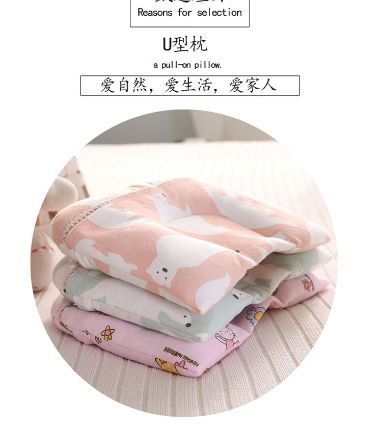 Shijanu new product baby shaped pillow 0-1 year old baby anti-head deflection U-shaped pillow cassia seed cervical spine pillow No. 2 color (20*24cm)_cassia seed filling 20x24x1cm