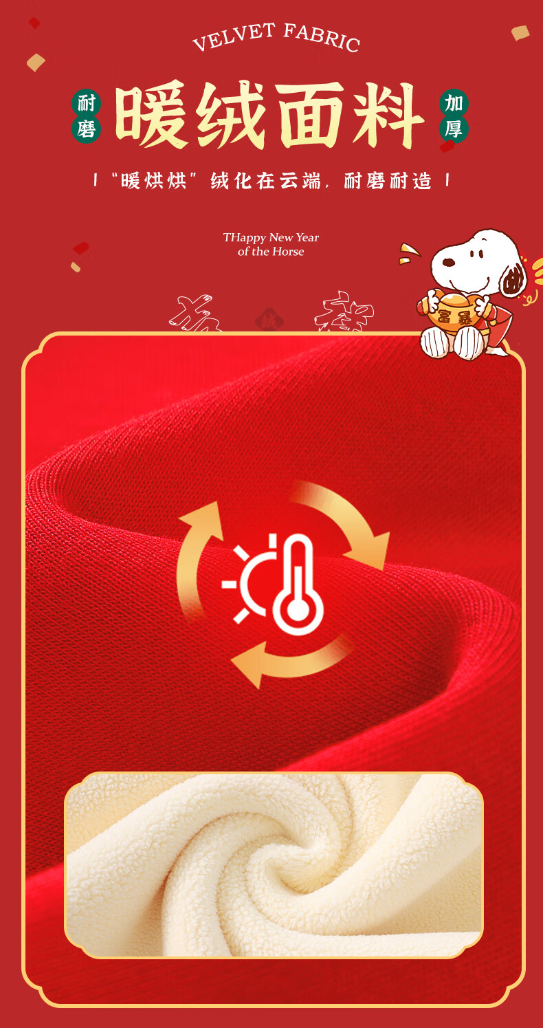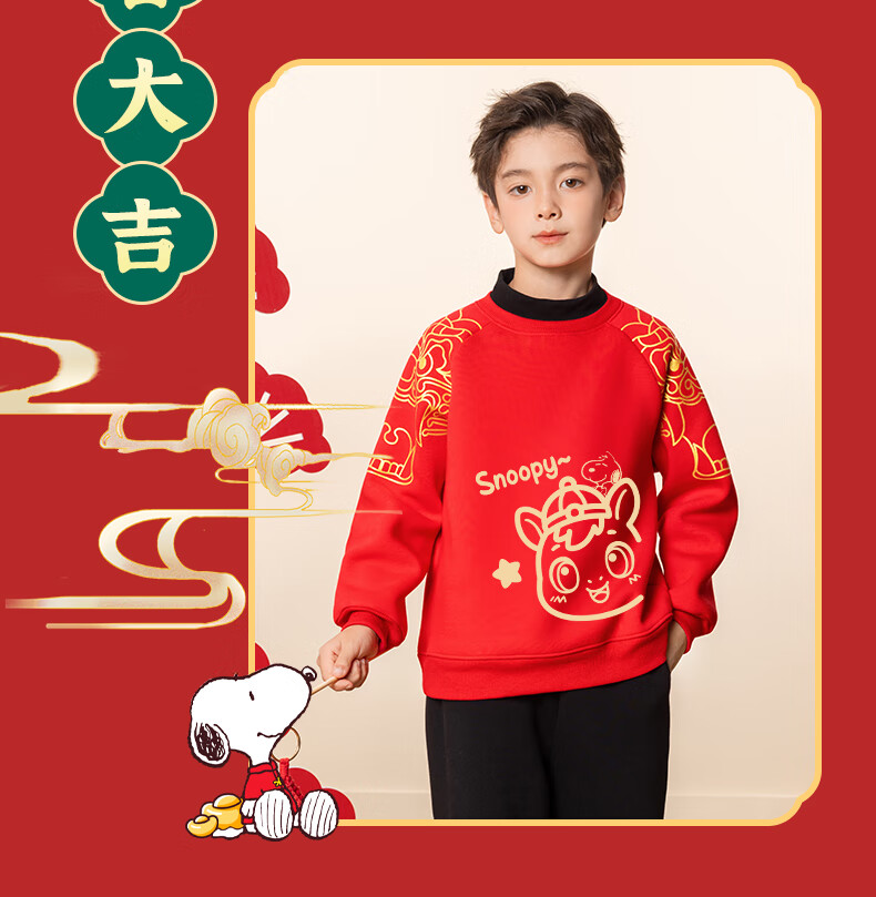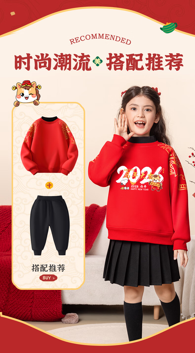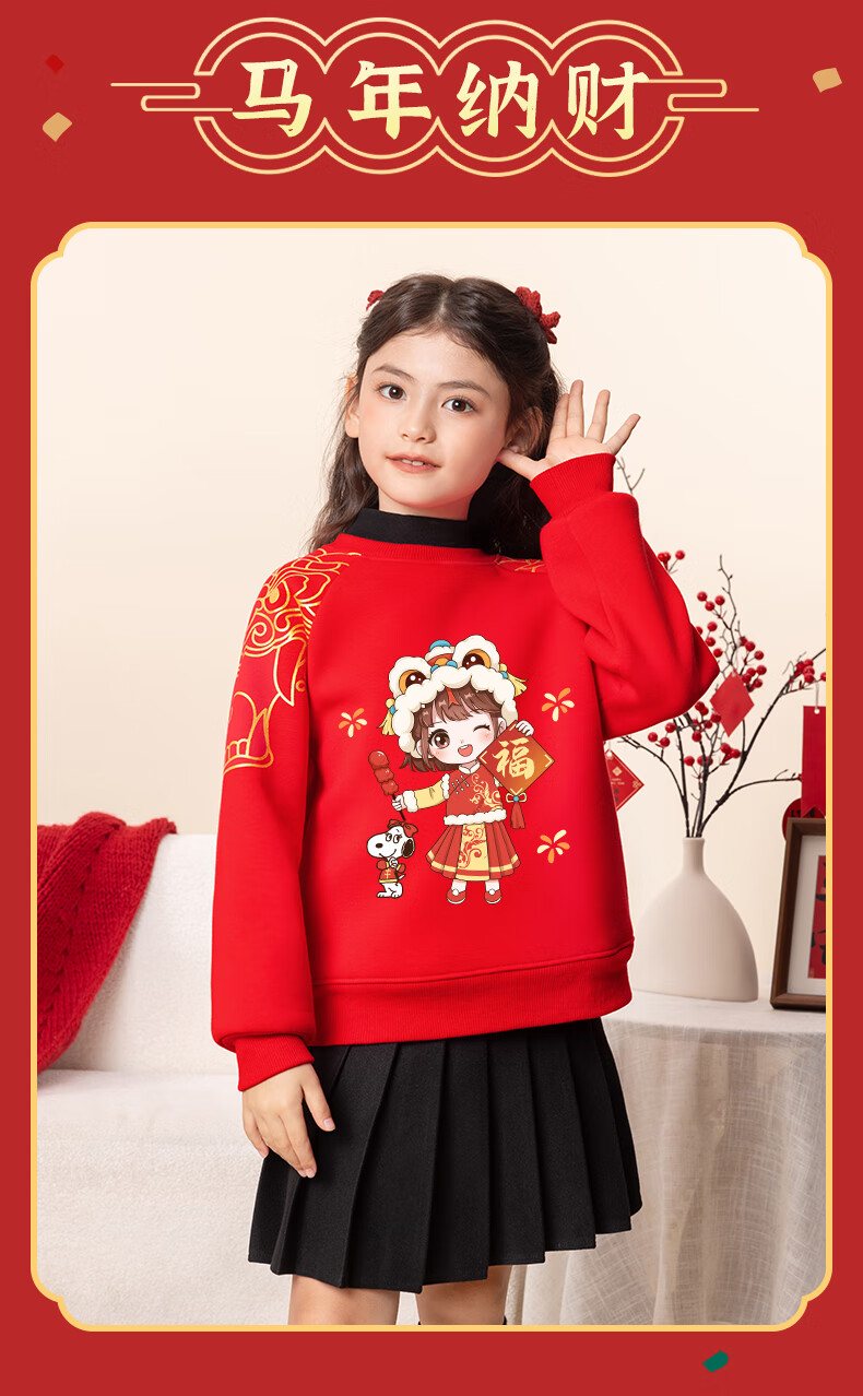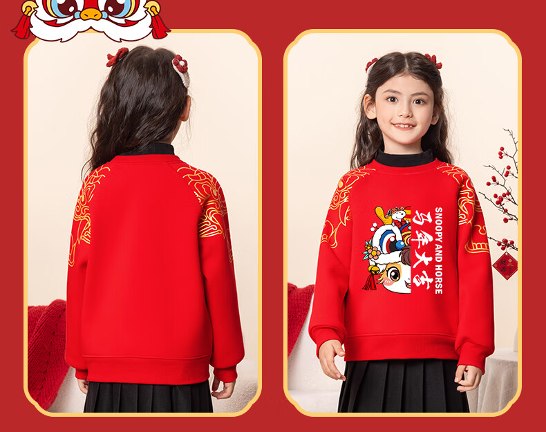 Snoopy children's New Year's clothing for boys plus velvet sweatshirt 2026 red girls' New Year's clothing for the Year of the Horse New Year thickened warm clothes New Year's clothing sweatshirt red Nubi Kingdom Horse_5 140