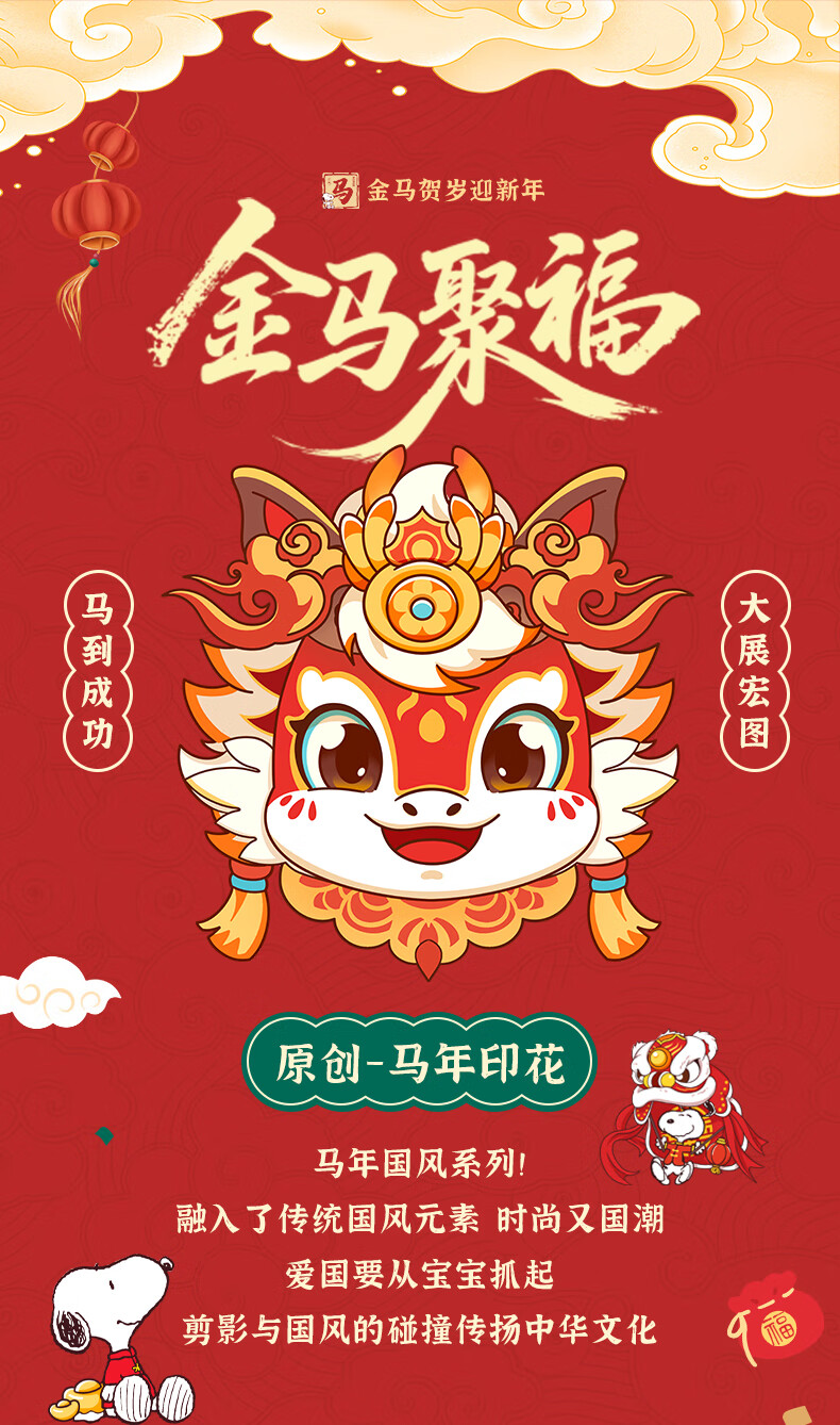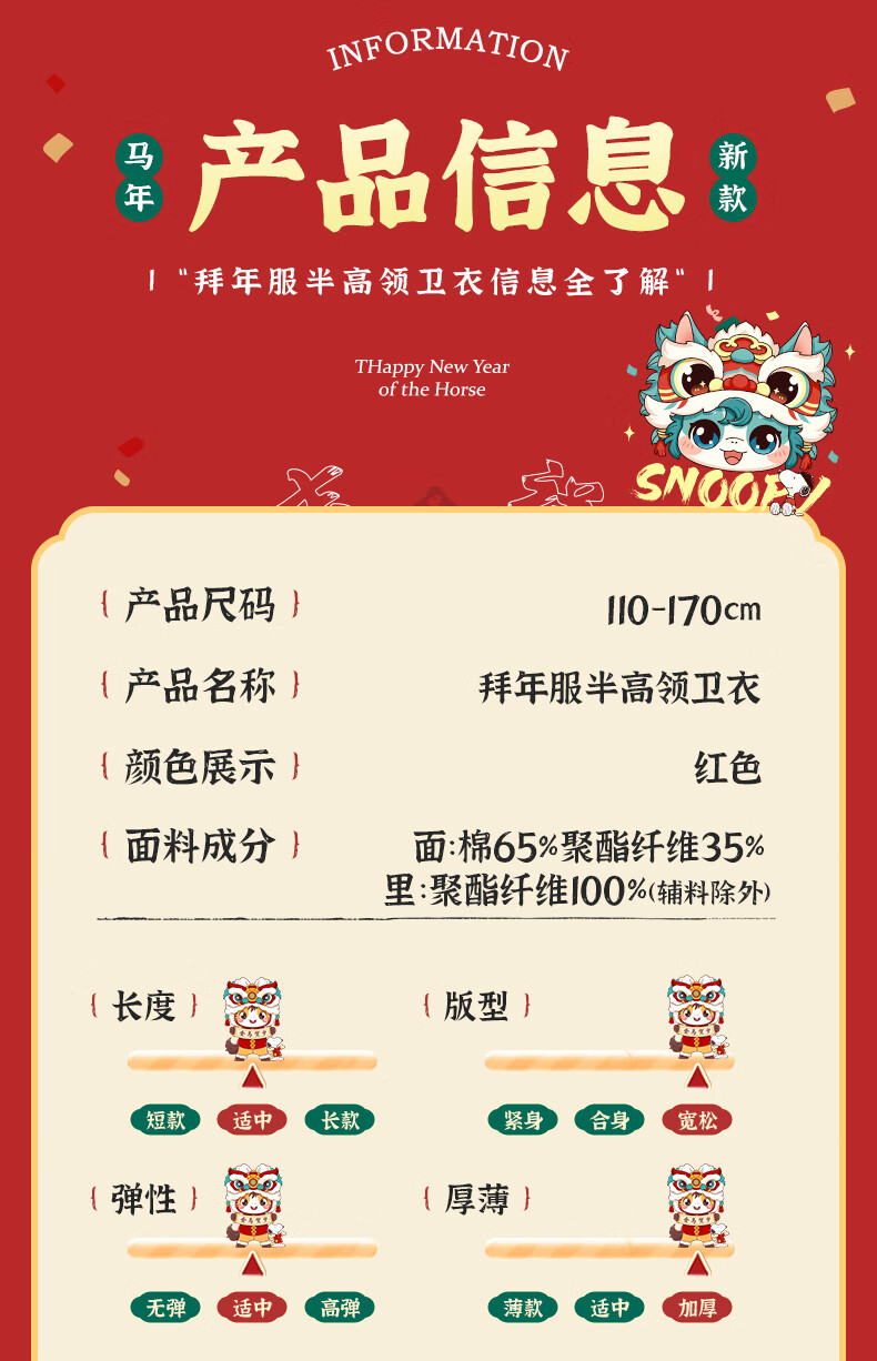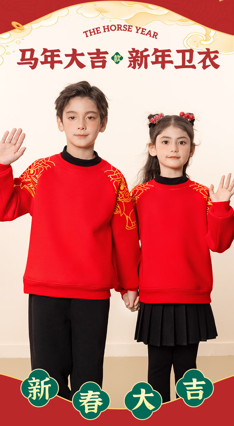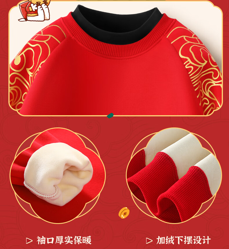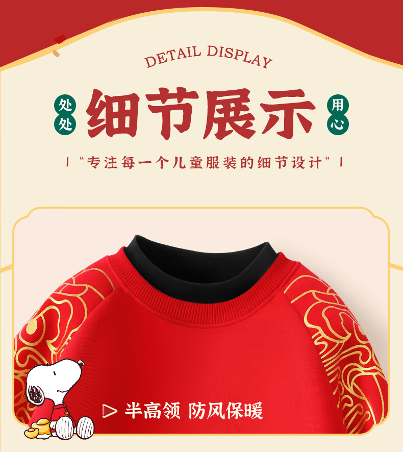 Snoopy children's New Year's clothing for boys plus velvet sweatshirt 2026 red girls' New Year's clothing for the Year of the Horse New Year thickened warm clothes New Year's clothing sweatshirt red Nubi Kingdom Horse_5 140