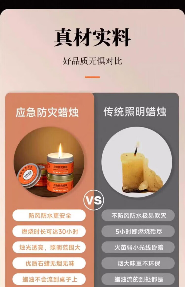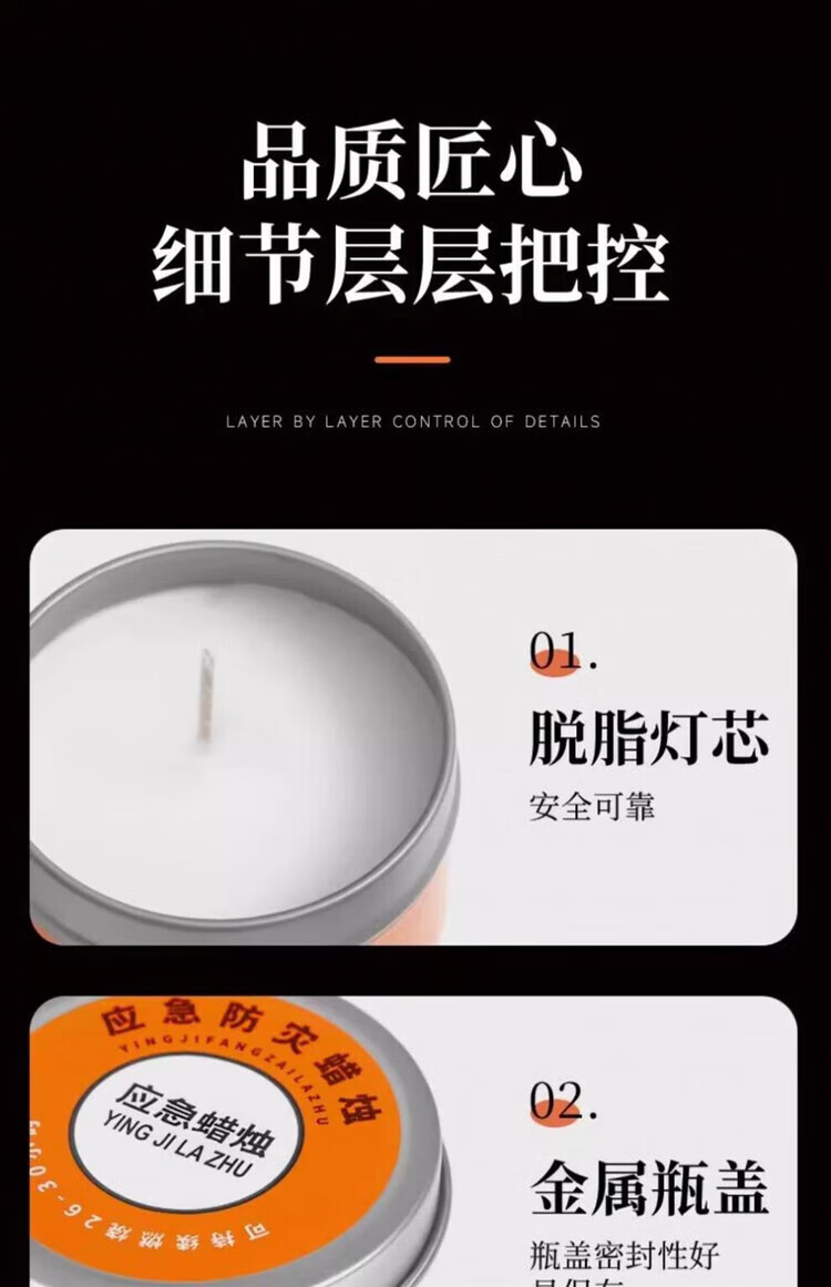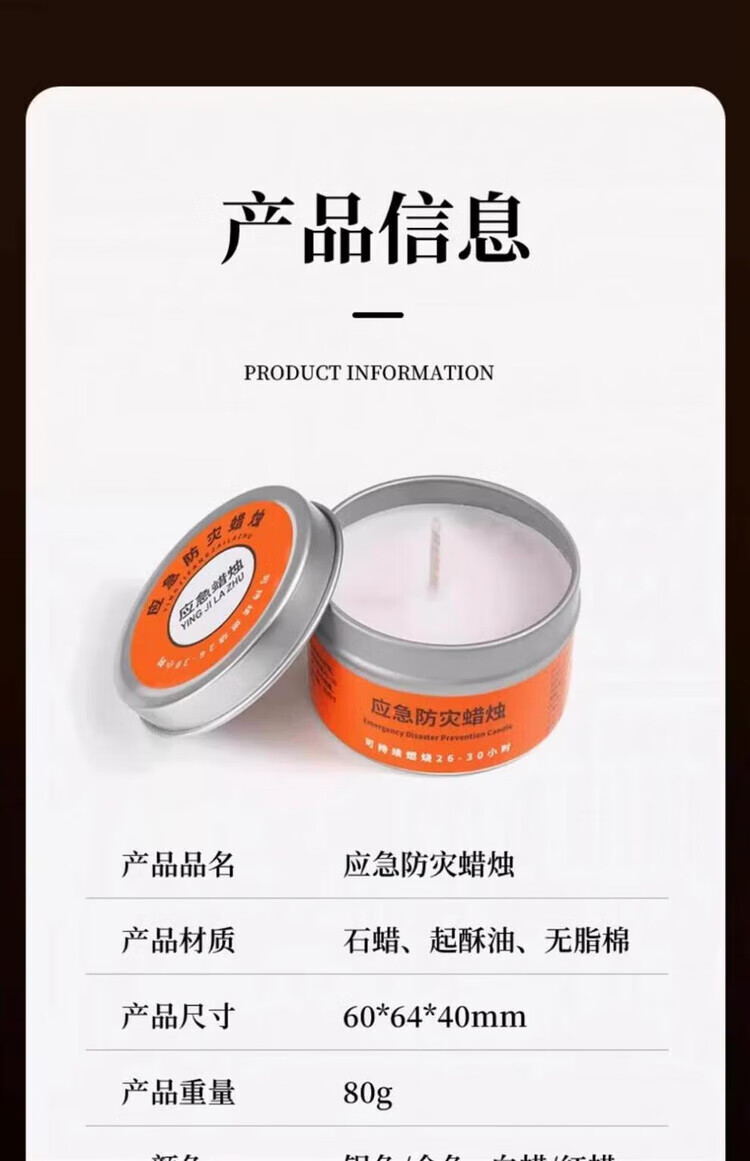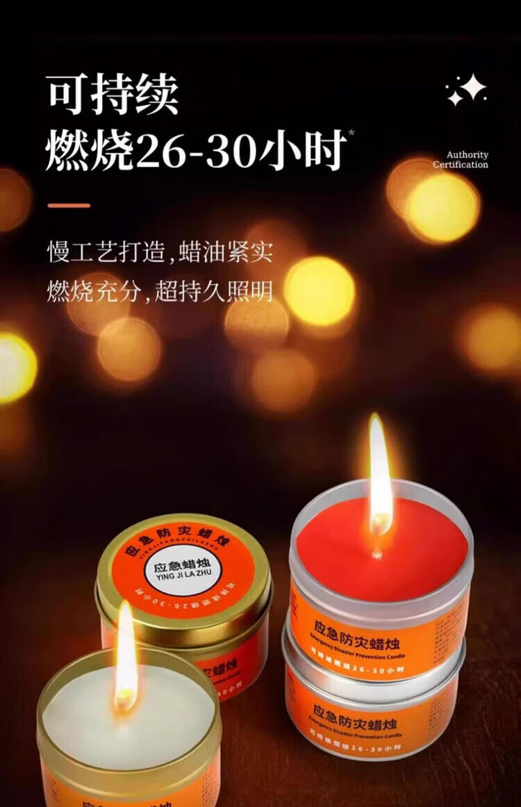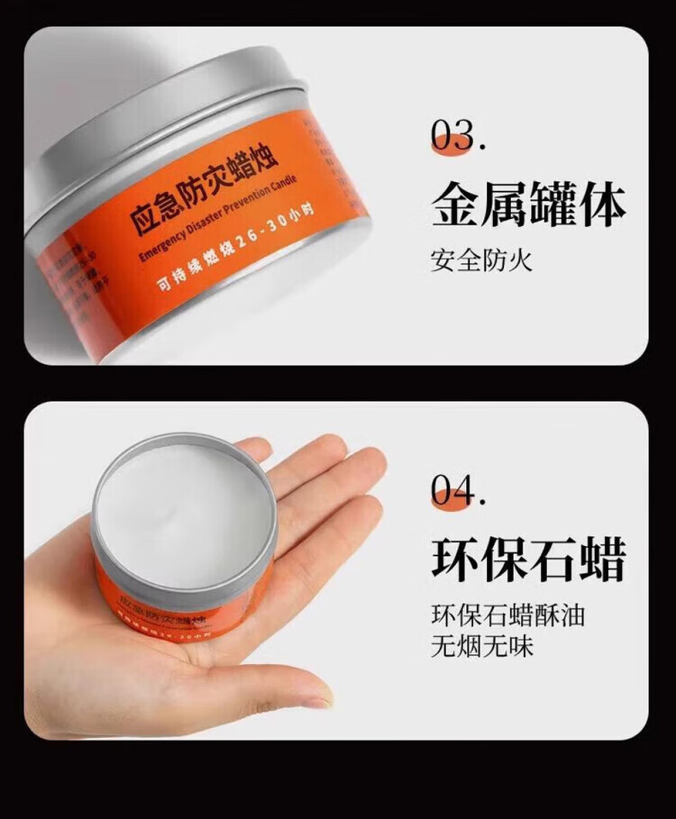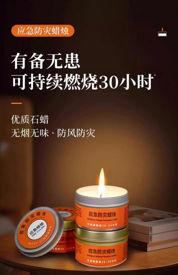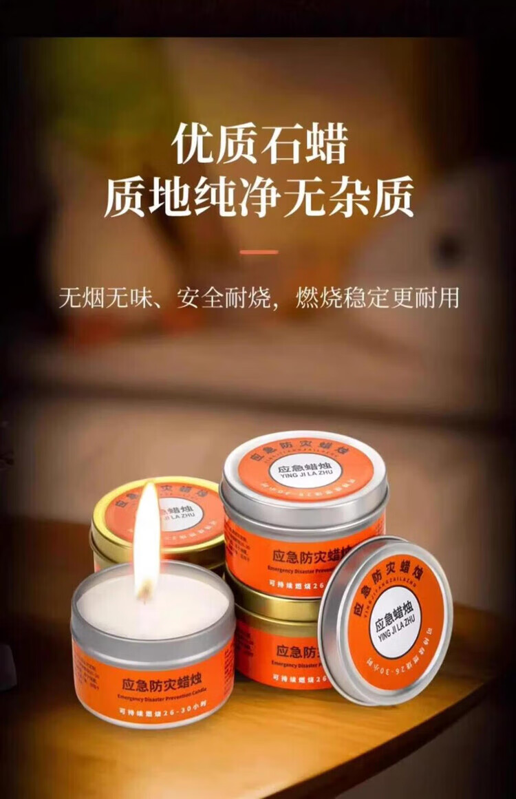 He Jiagong Emergency Disaster Prevention Candle Survival Power Outage Lighting Household Large Iron Box Rescue War Preparedness Smokeless and Odorless 5 Boxes 50g