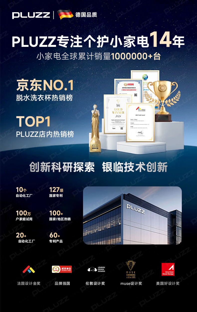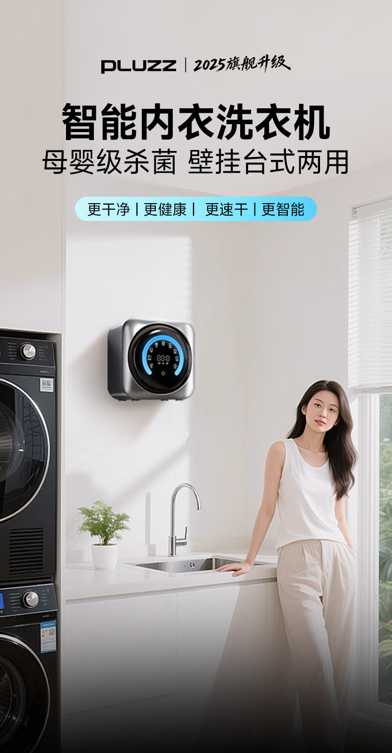 PLUZZ【德国智造 | 桌面&壁挂】全自动内衣内裤洗衣机除菌小型家用婴儿内裤清洗机专用洗袜子懒人洗衣杯 轻奢白【壁挂桌面两用】洗烘一体 | 99%杀菌率 【2025年12月升级的新款】荣获德国设计金奖