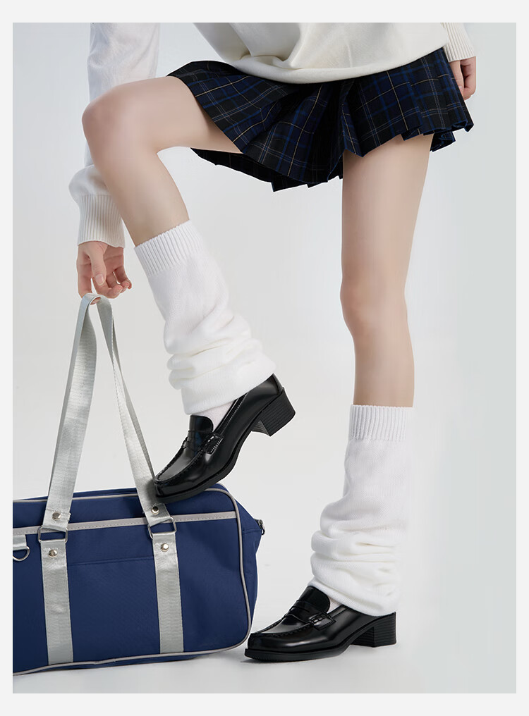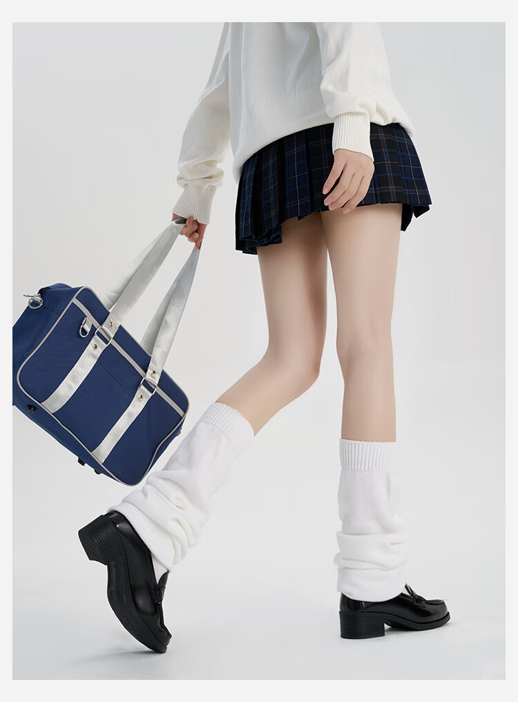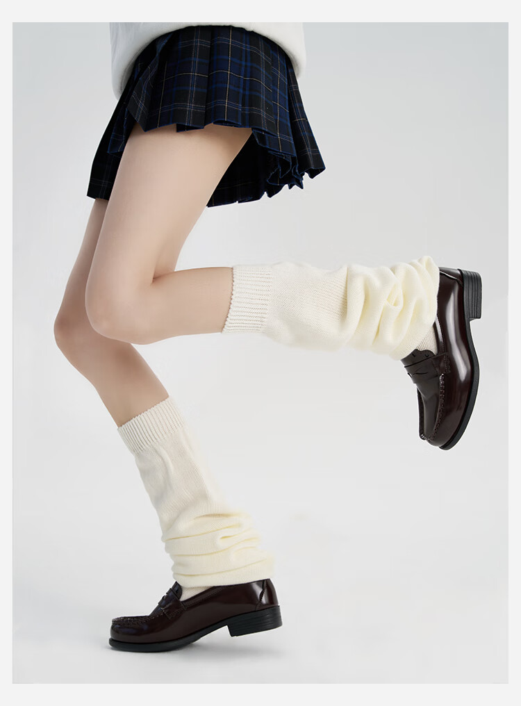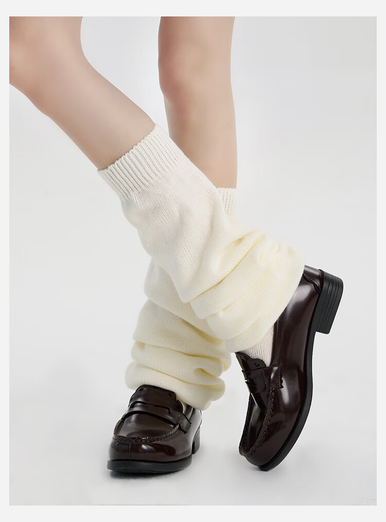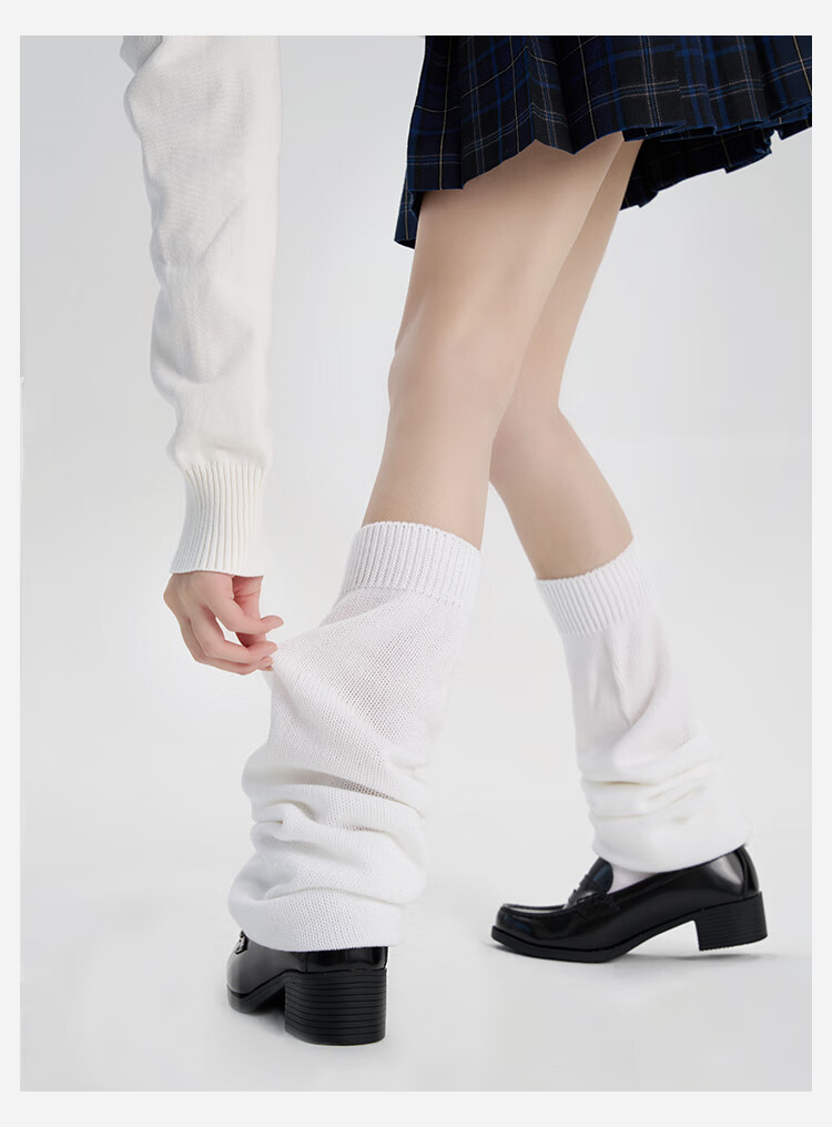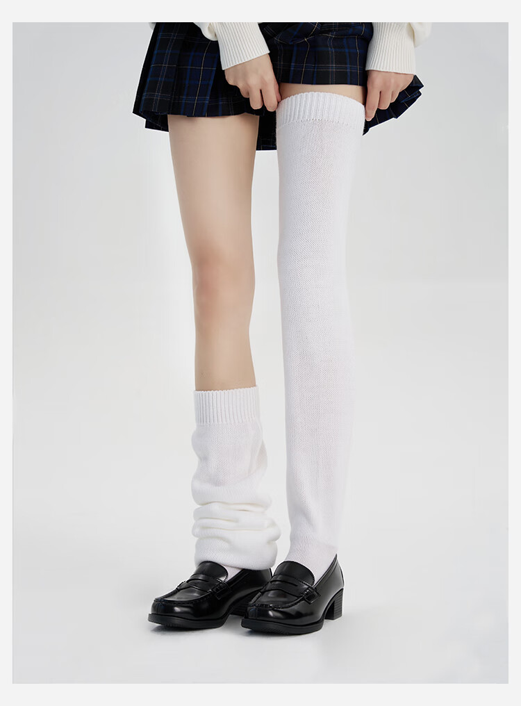 A cloud flat foot socks cover JK mid-length long bubble socks warm calf socks knitted leg covers white 1 pair M 70c