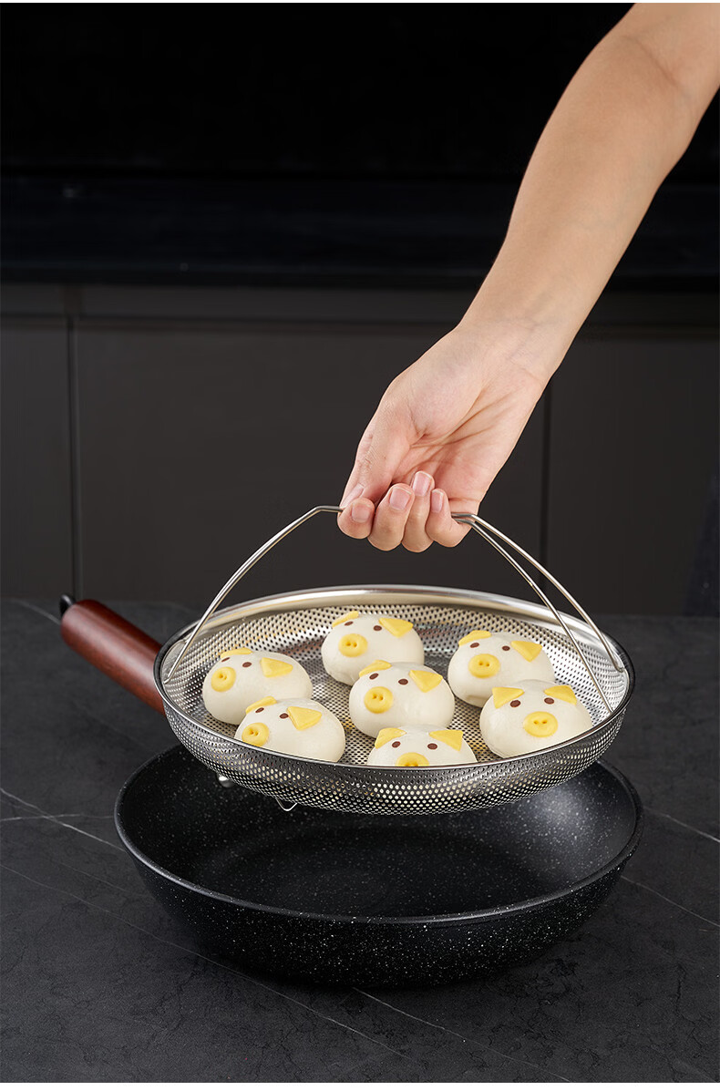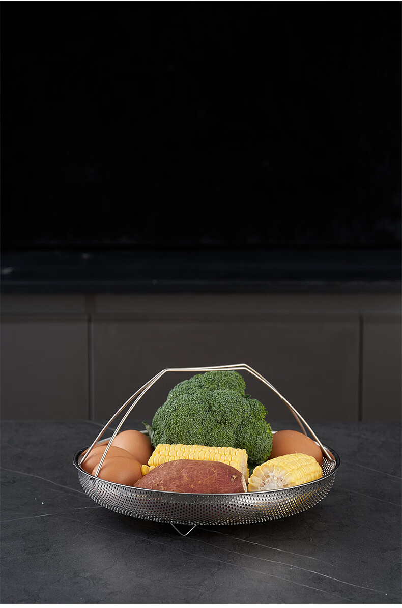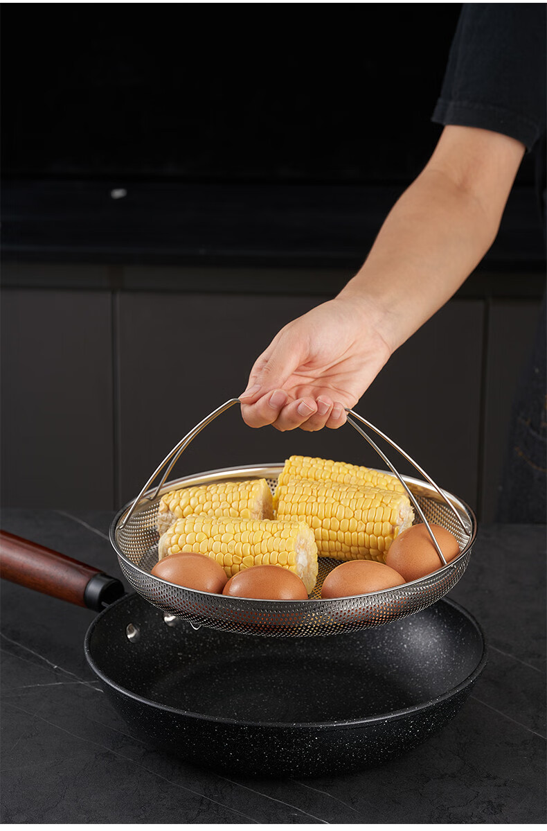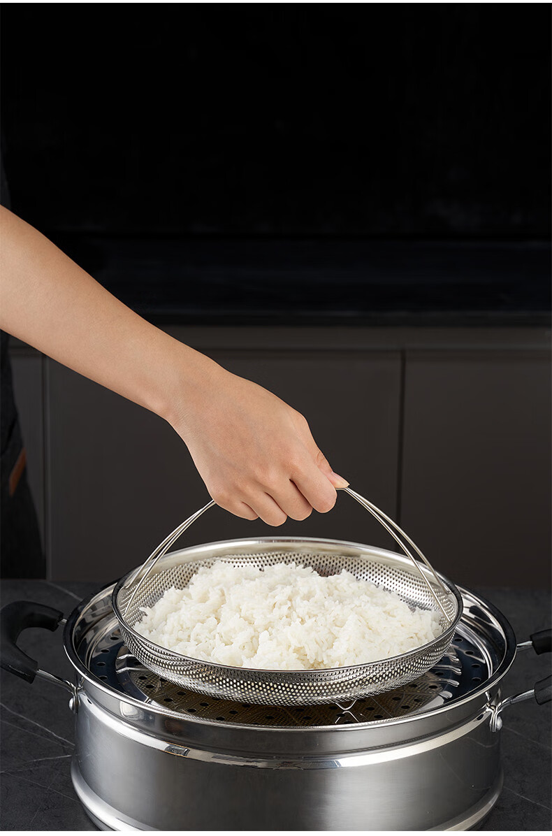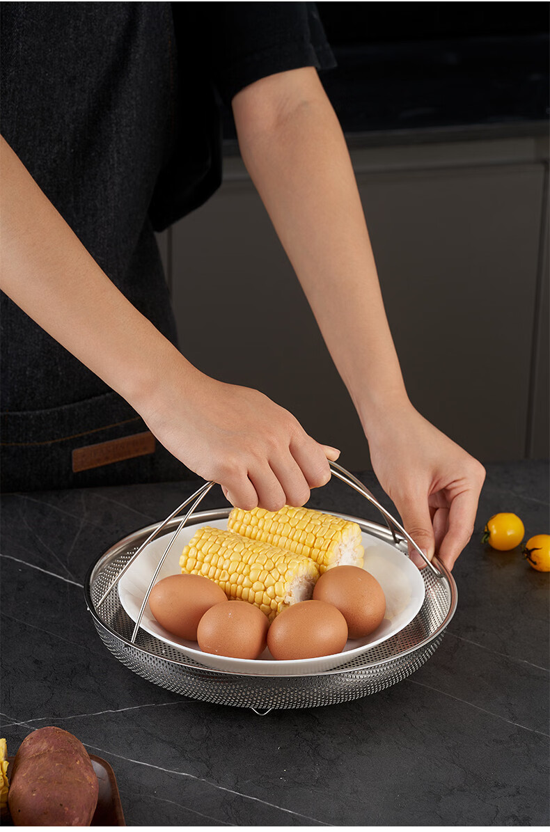 Yinghuan 304 stainless steel multifunctional dense hole drain basket steamer grid steamer rice cooker rice soup separated water barrier steaming rack steamer drawer multi-purpose steaming plate rack 24.5CM one-piece true 304 stainless steel