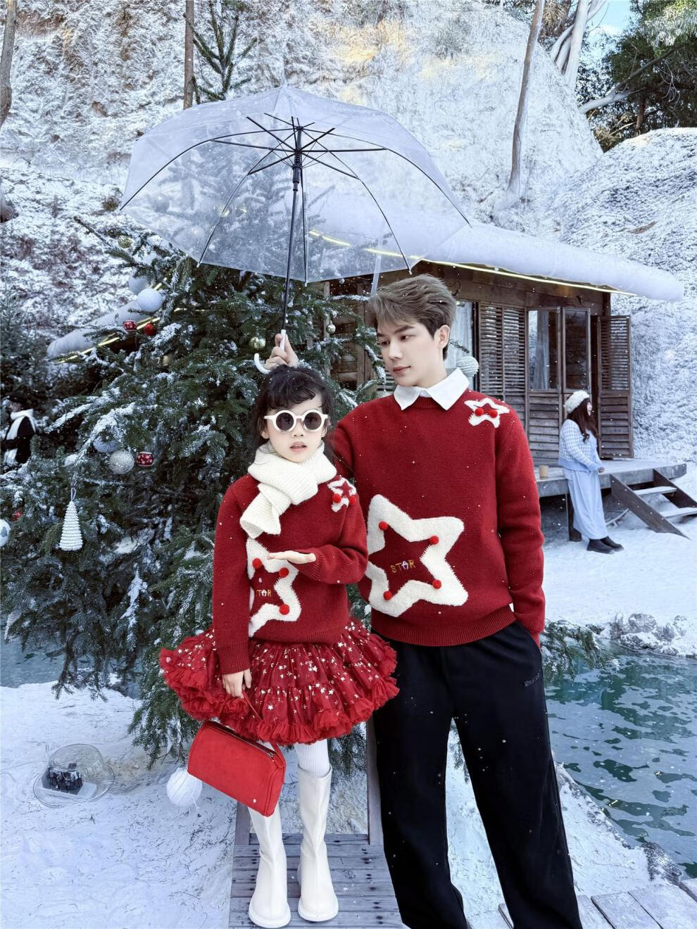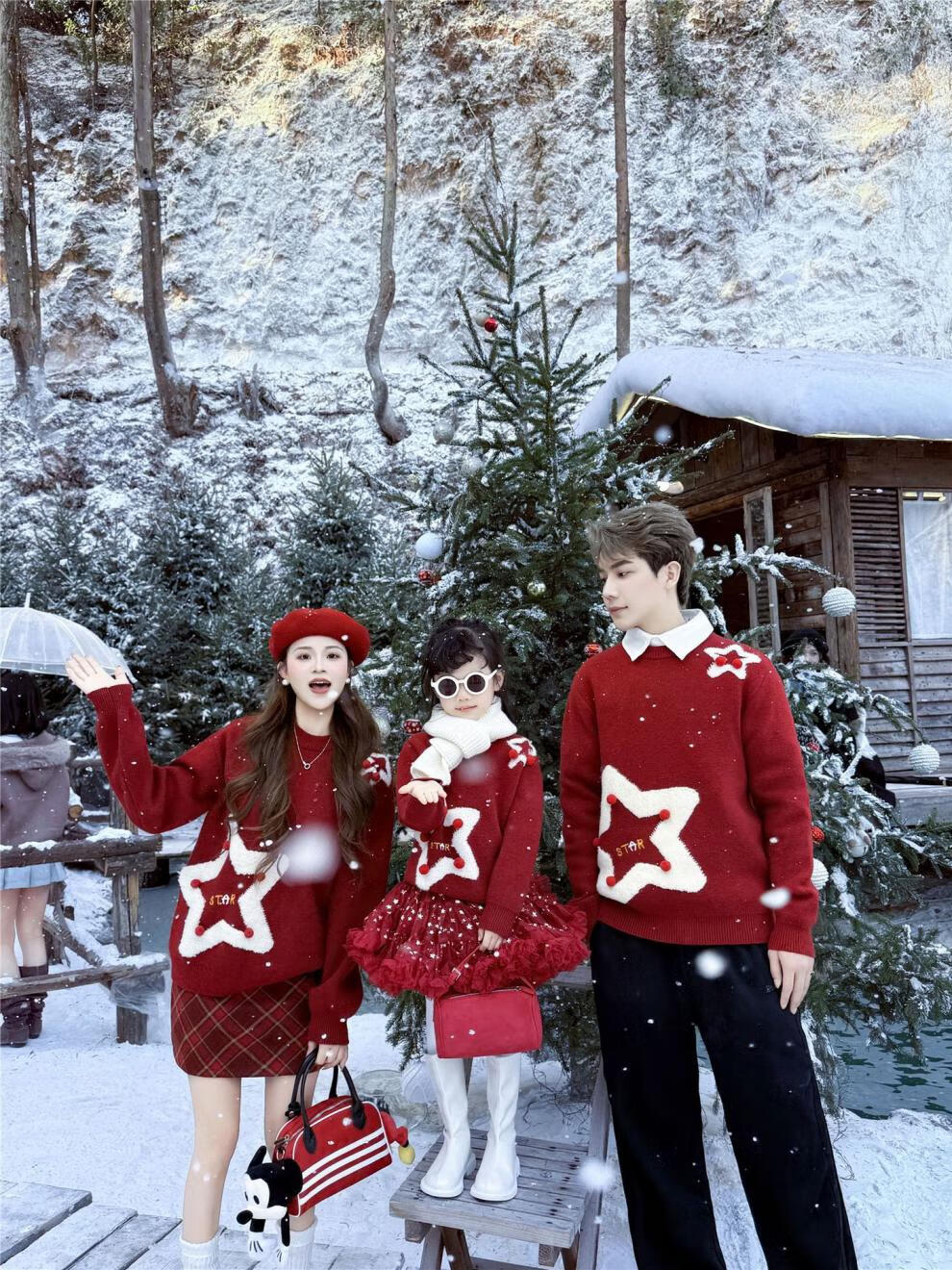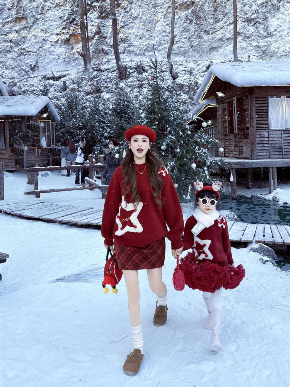 G.duck Christmas parent-child outfits for a family of three and four to celebrate the New Year and celebrate the New Year 2026 mother-daughter mother-child thickened sweater red 130 cm