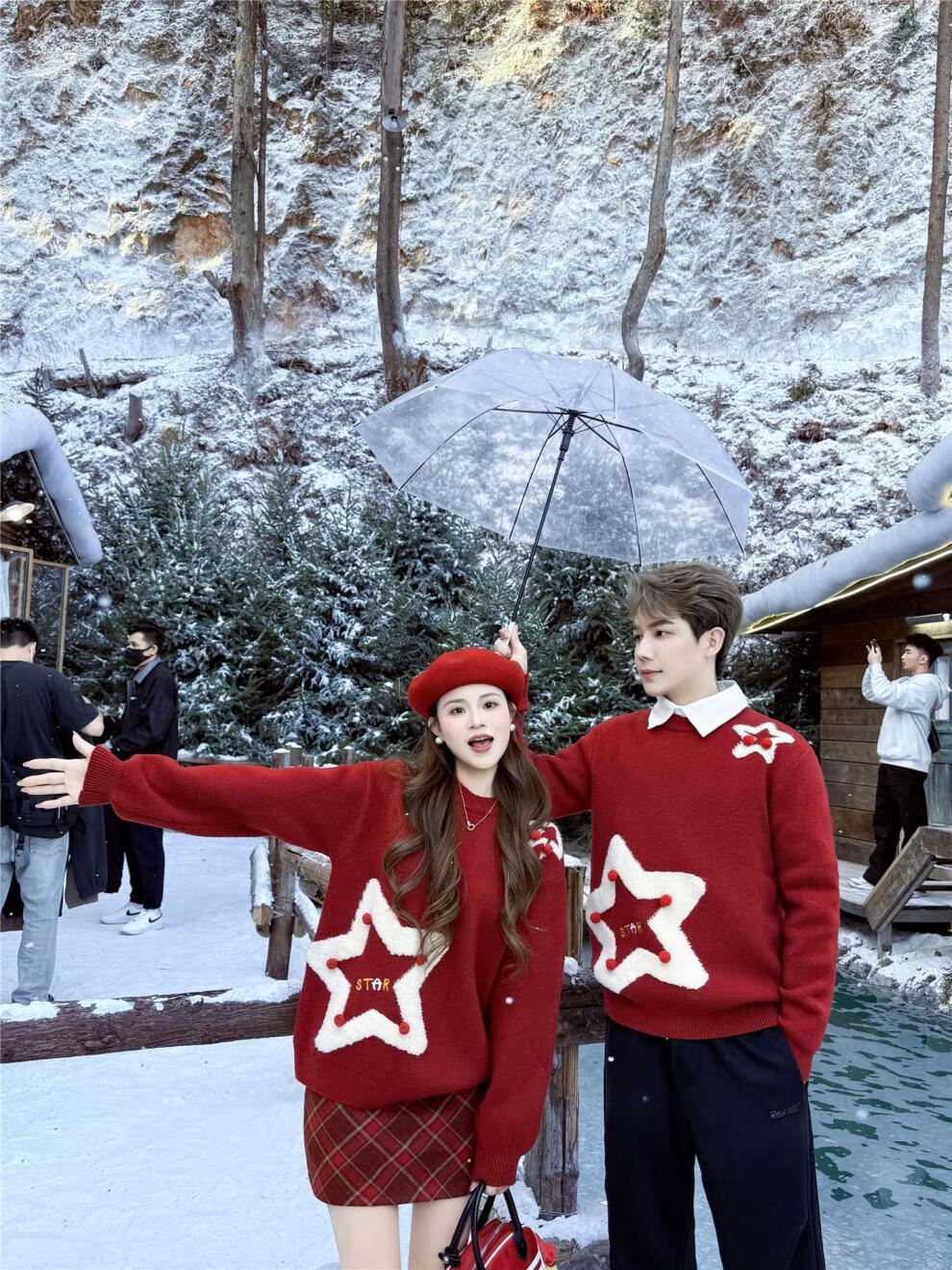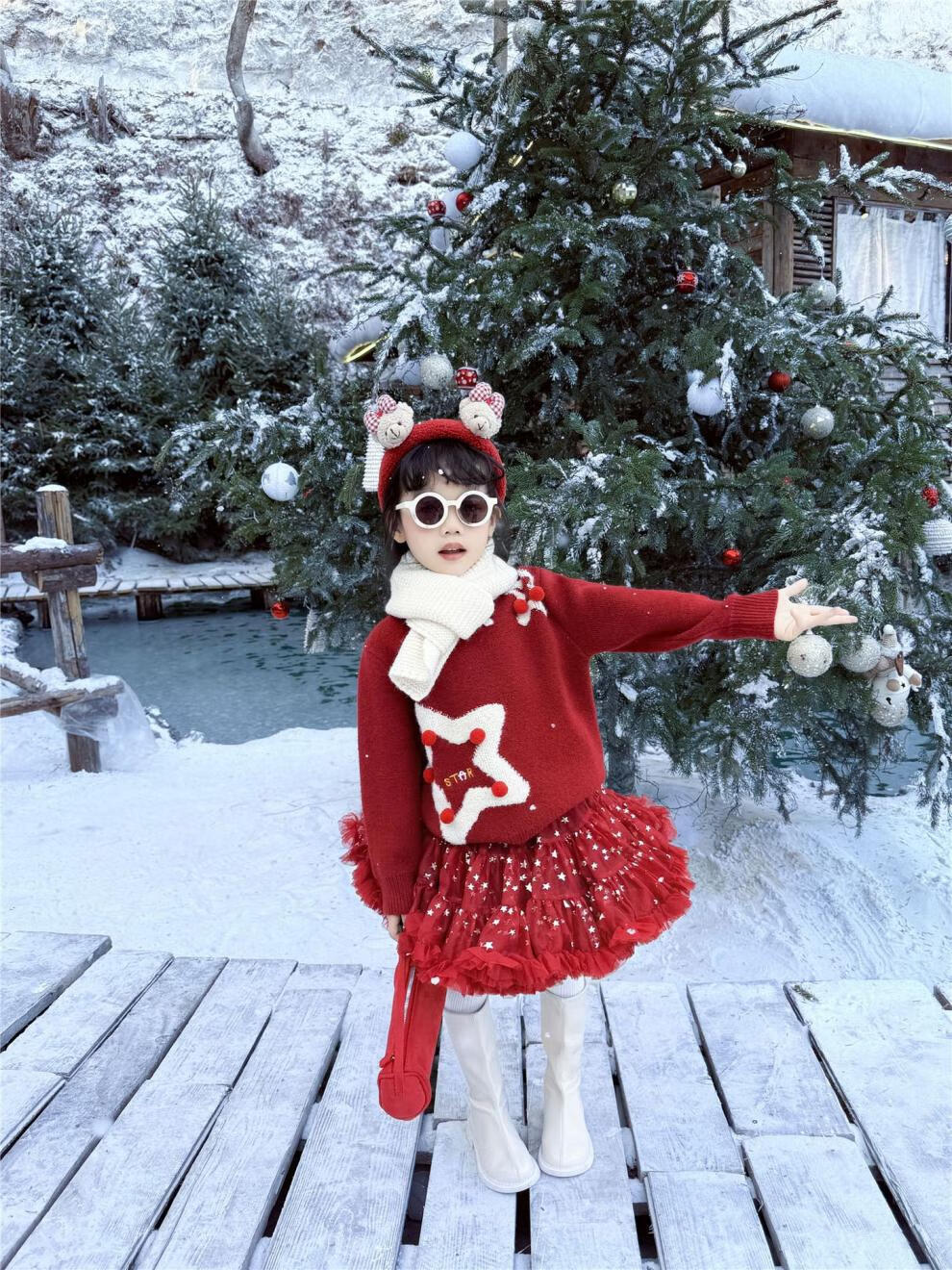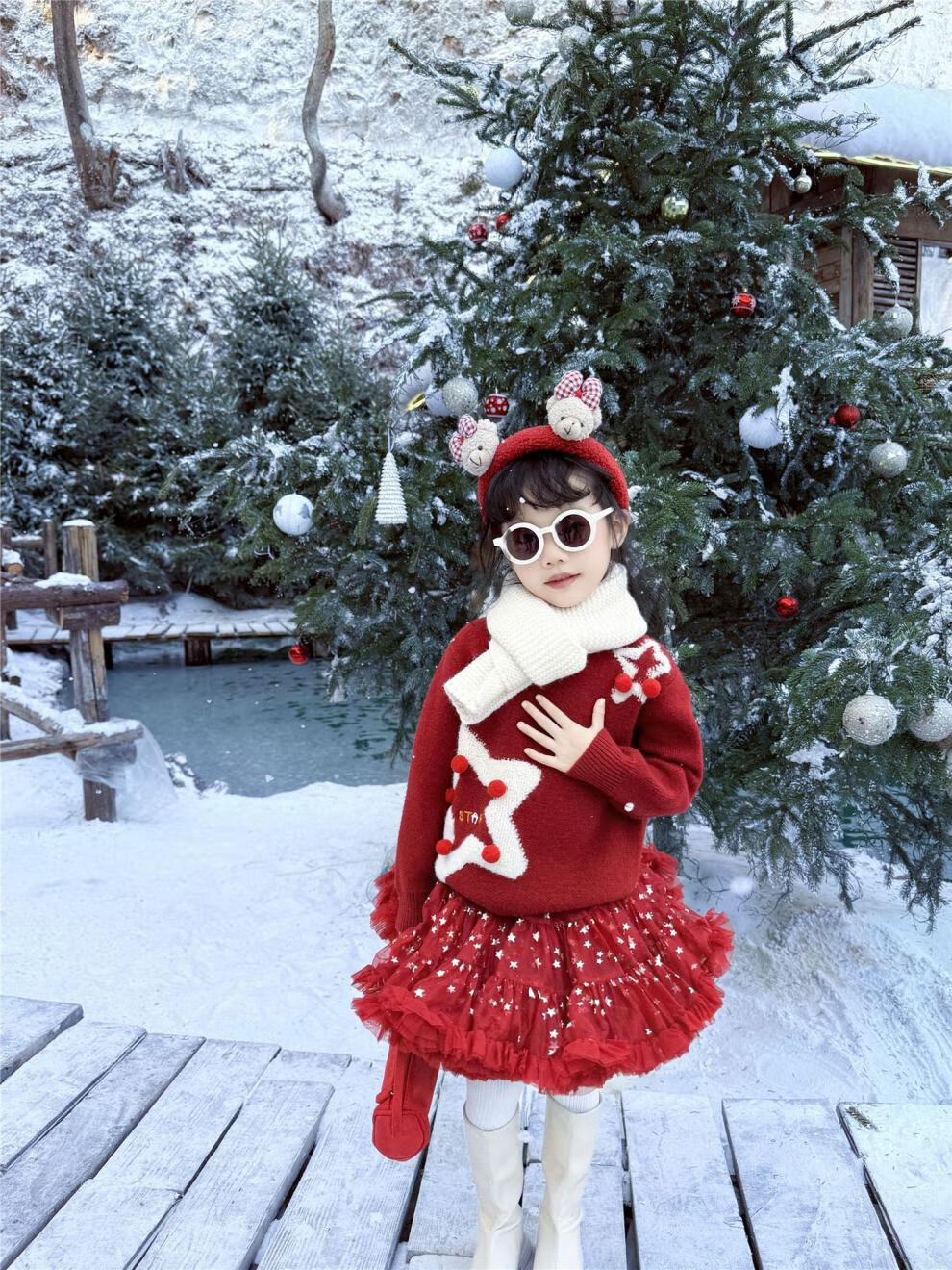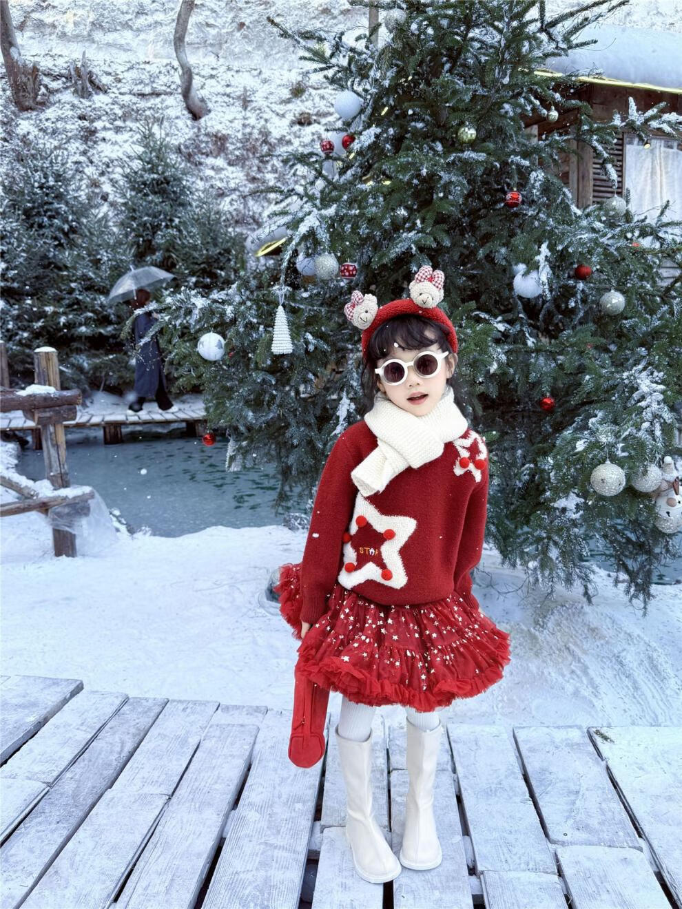G.duck Christmas parent-child outfits for a family of three and four to celebrate the New Year and celebrate the New Year 2026 mother-daughter mother-child thickened sweater red 130 cm