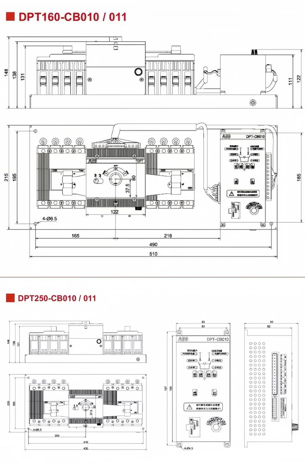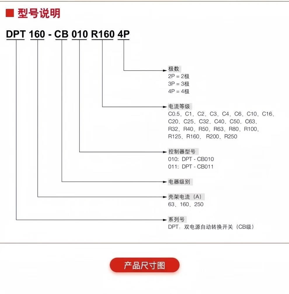 ABB dual power automatic transfer switch 4PCB level DPT-CB010 DPT-CB011 63A/160A/250A DPT160-CB010 36kA_R160A_4P
