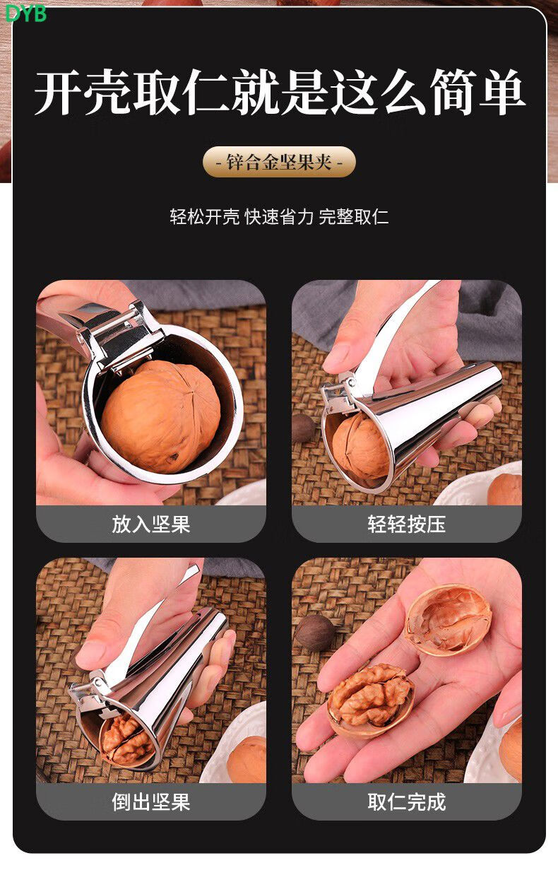 Stainless steel pecan clip, household shell opener, nut peeling tool, hazelnut artifact clip, hand-held automatic rebound nut clip - small hazelnut clip, etc.