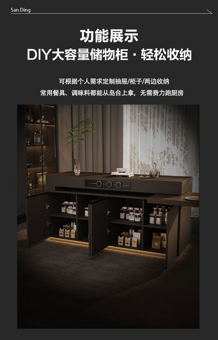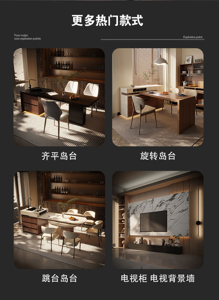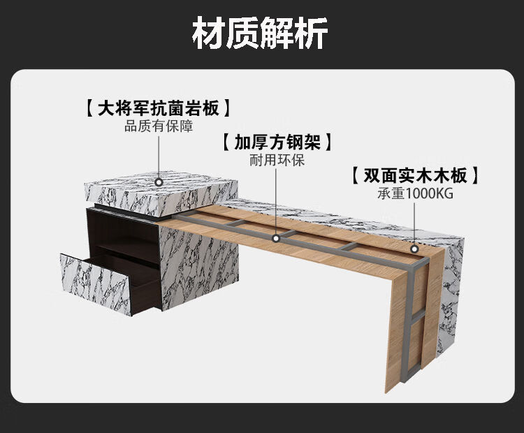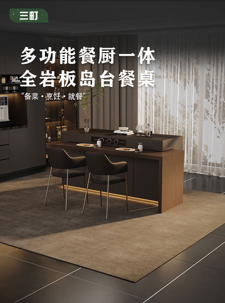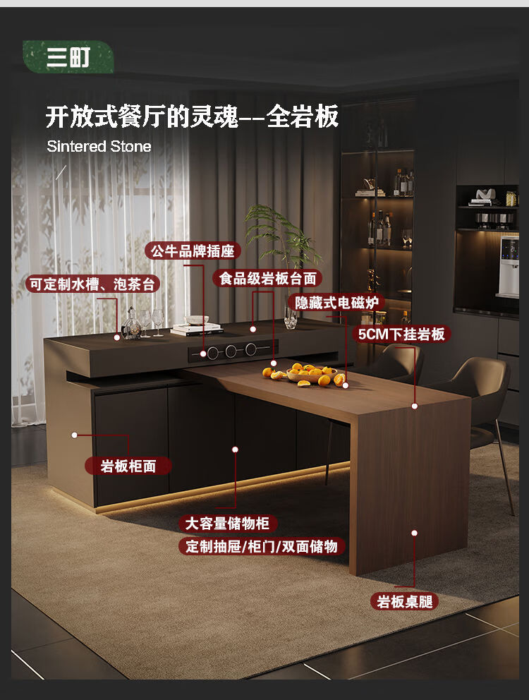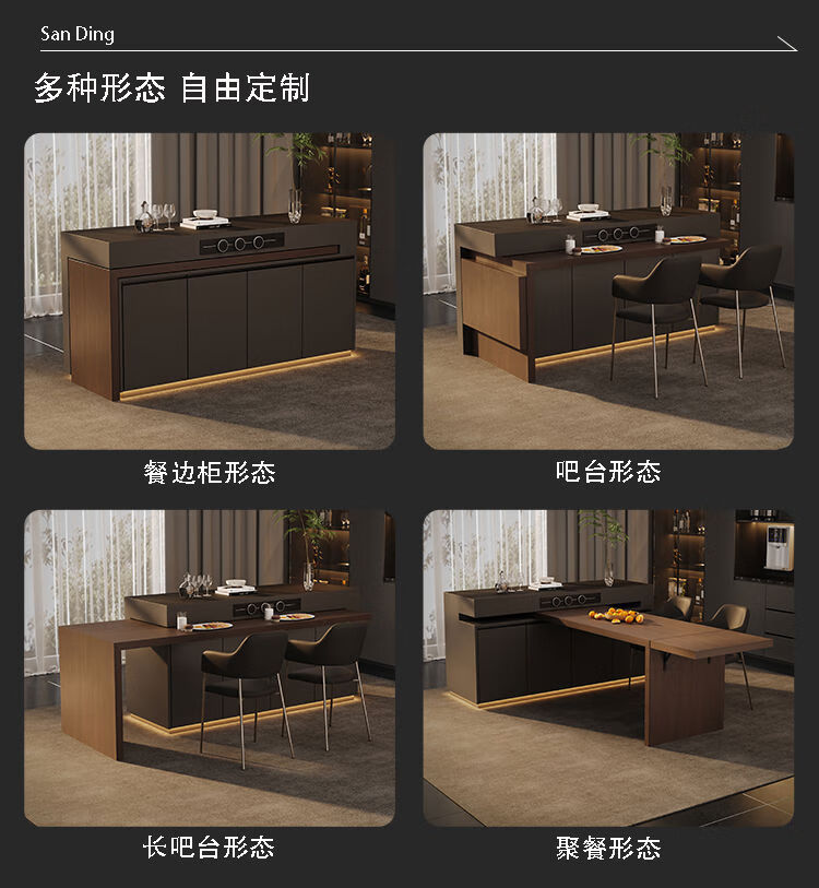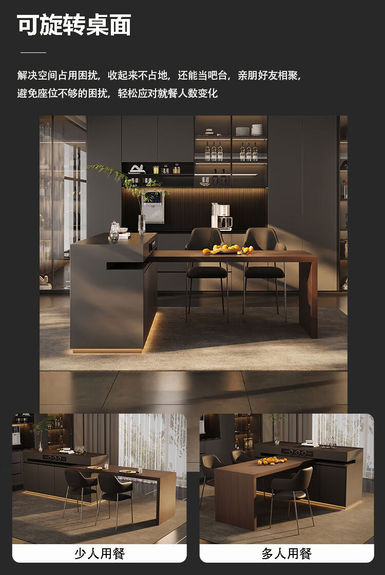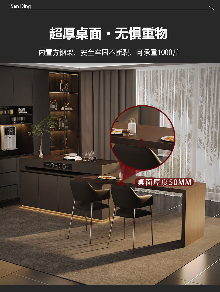 Yusenyi Rotatable Island Table Dining Table Sideboard Integrated Retractable Kitchen Table Feel Customized Italian Rock Slab Guide Long Bar 1.1 Meter Full Rock Slab Color Size Can Be Customized