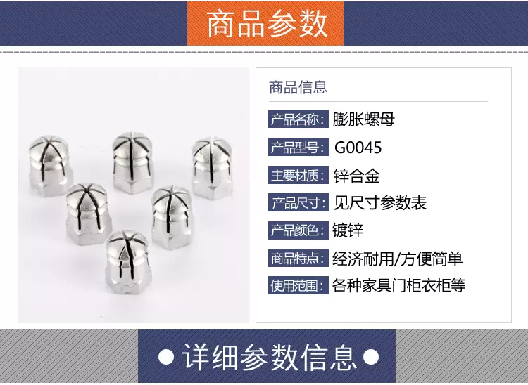 Yusenyi (price of 100 pieces, factory price) three-in-one furniture zinc alloy embedded nut connector expansion embedded parts five M6 alloy embedded nuts (price of 100 pieces)