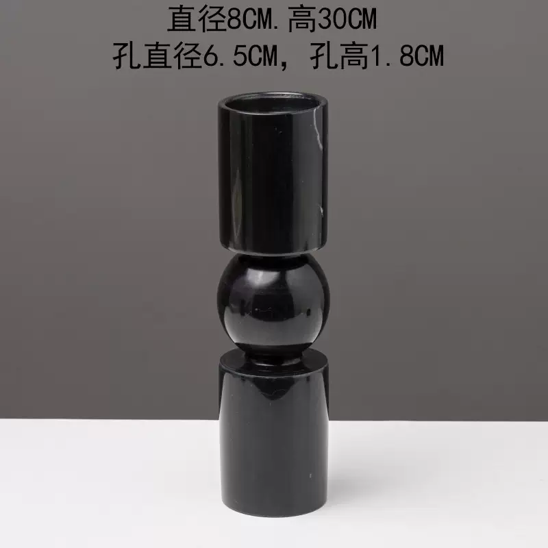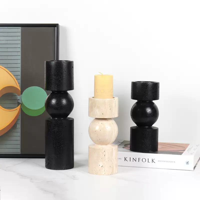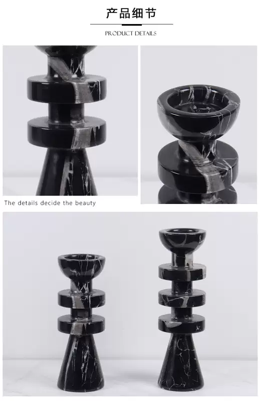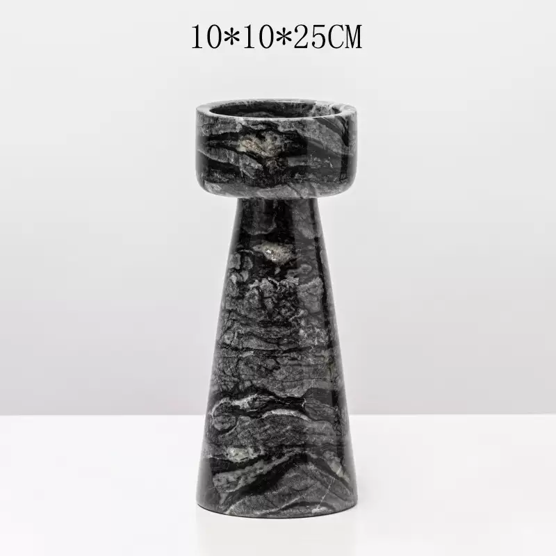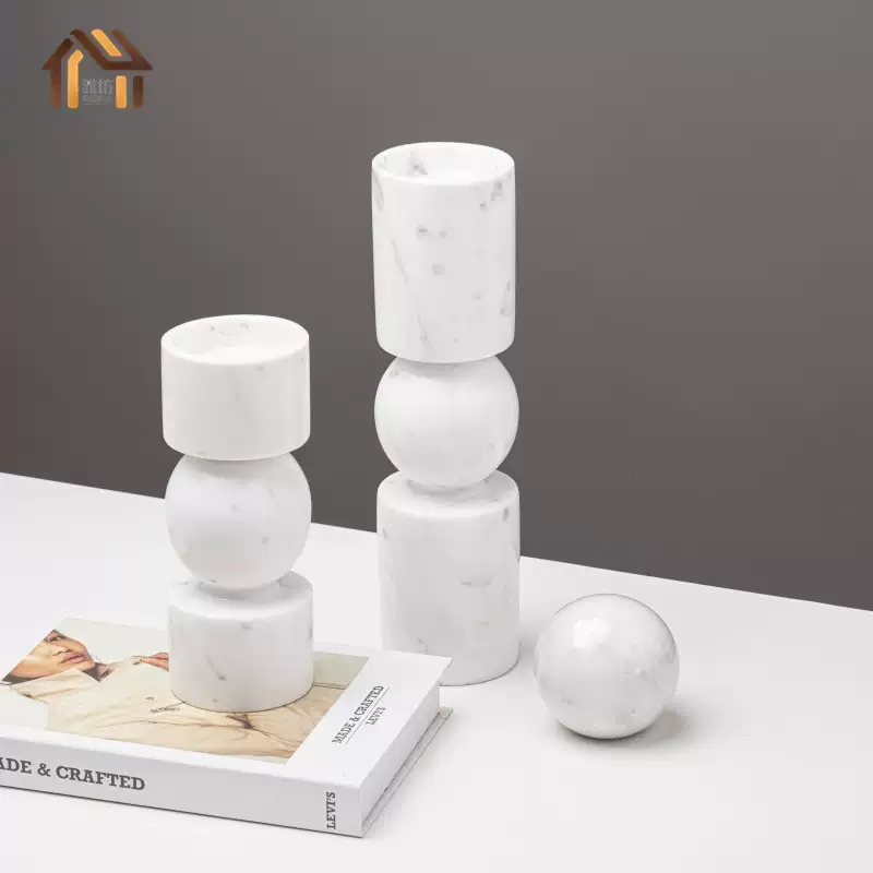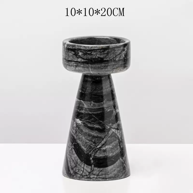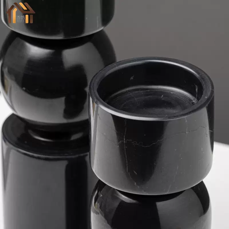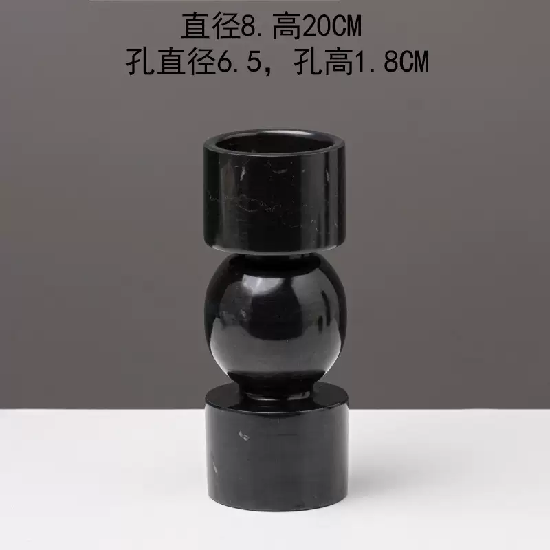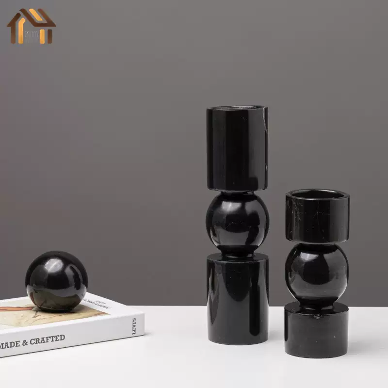 Yusenyi Modern Light Luxury Natural Marble Candle Holder Ornament Model Room Hotel Living Room TV Cabinet Dining Table Style 1 Black Ball