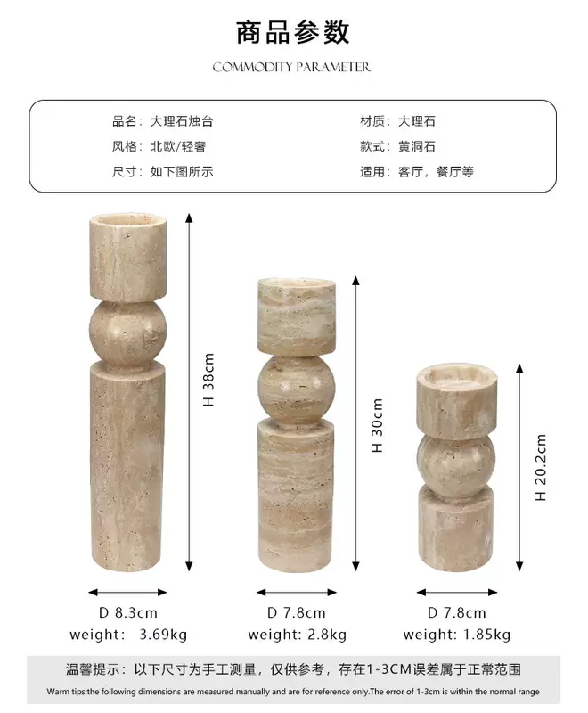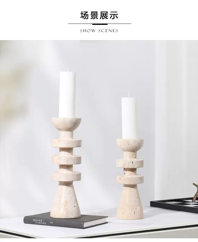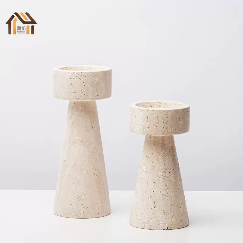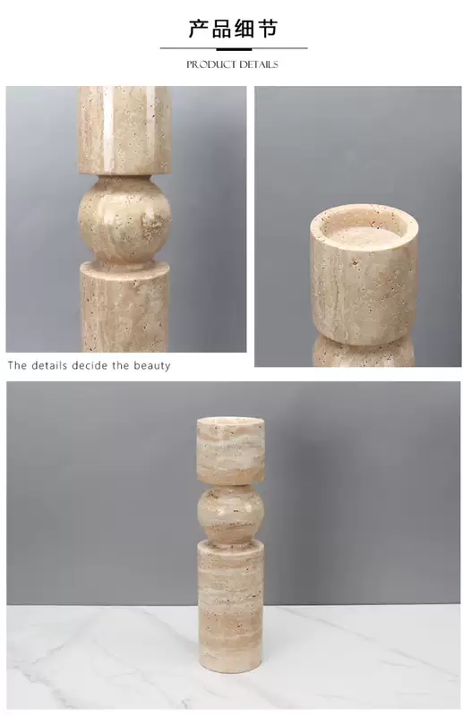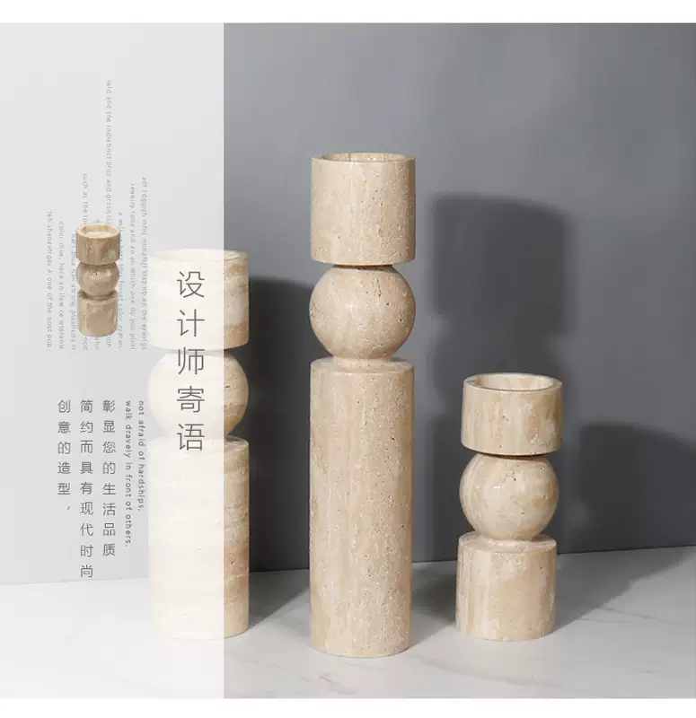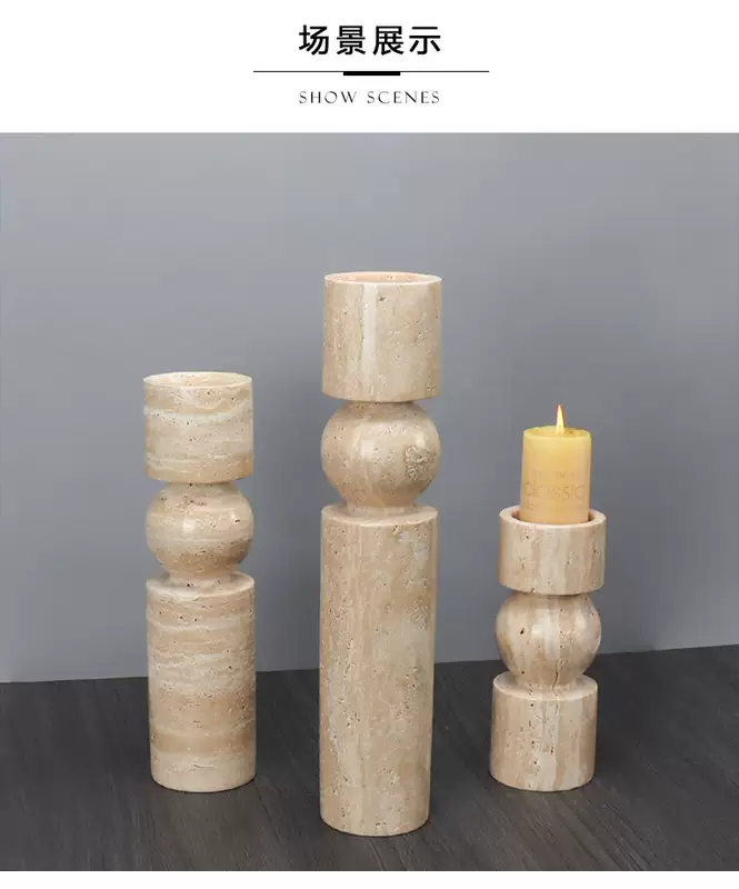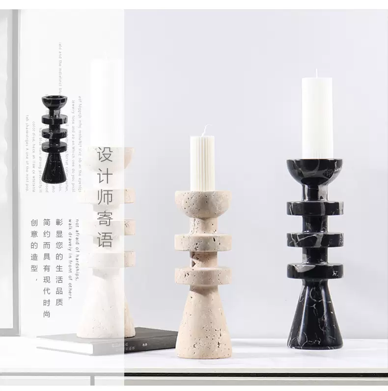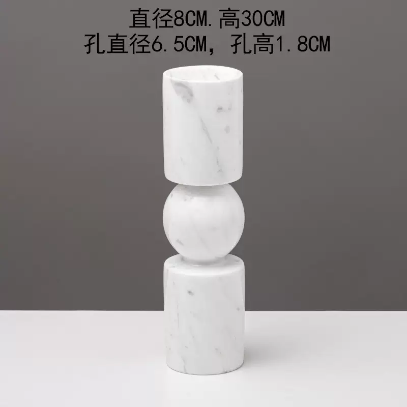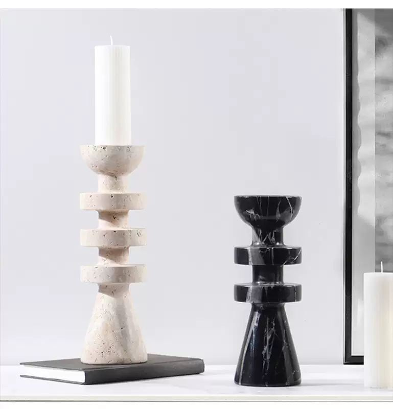 Yusenyi Modern Light Luxury Natural Marble Candle Holder Ornament Model Room Hotel Living Room TV Cabinet Dining Table Style 1 Black Ball