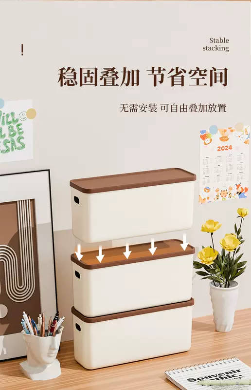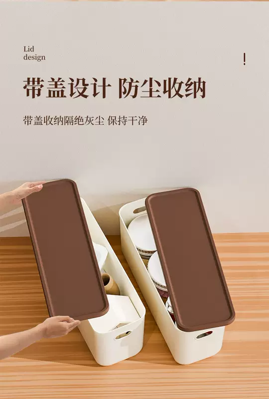 Yusenyi desktop storage box, narrow and long household snack and sundry storage box with lid, rectangular slit storage box, transparent black narrow type with lid, 4 pieces