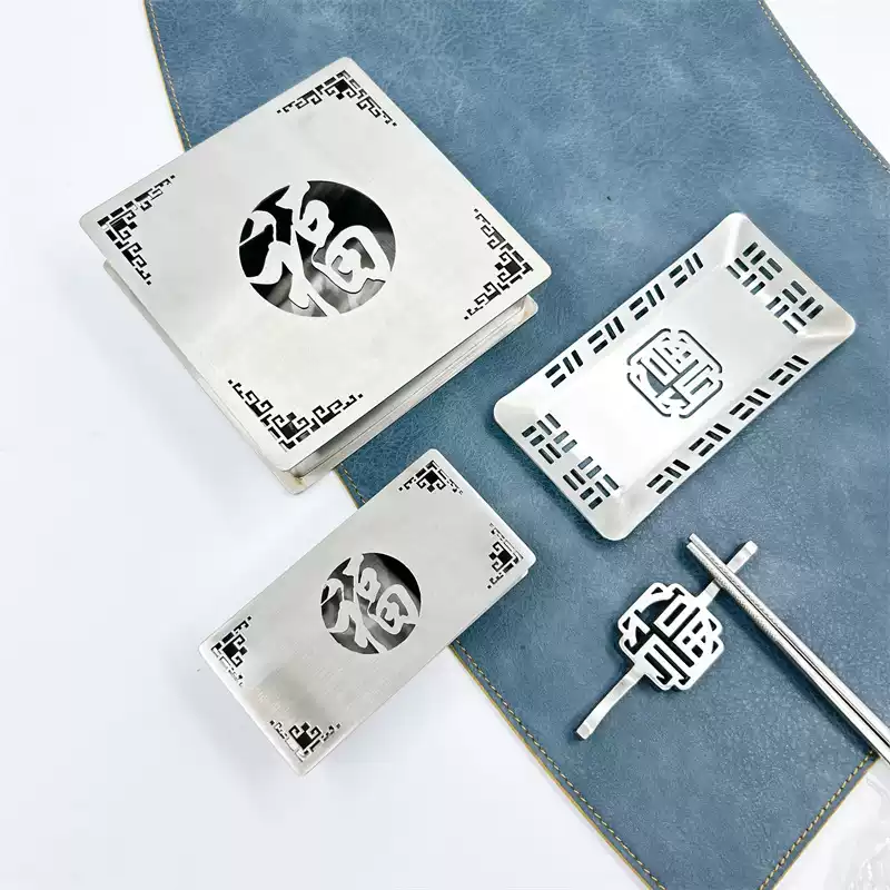 Zhizhou 304 stainless steel chopstick holder, chopstick holder, chopstick pillow, tableware holder, hotel restaurant chopstick holder, dual-purpose, three-purpose chopstick and spoon rest series, lucky stainless steel toothpick box-gold
