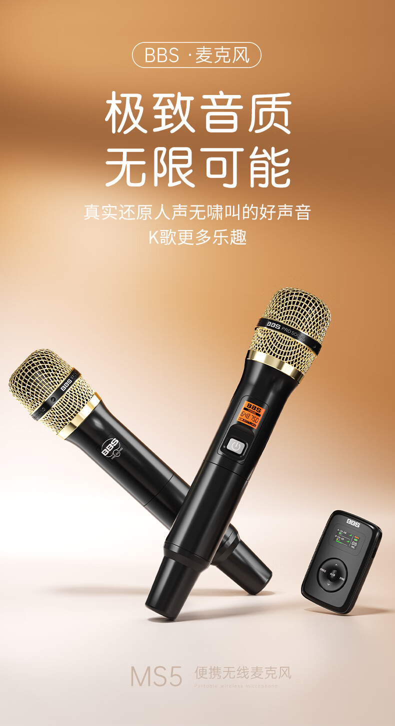 BBSMS5 Wireless Microphone Home KTV Singing Stage Hosting Speech K Song Conference Speaker Audio One for Two Microphones MS5 Golden Black BBS L65 Playing and Singing Audio Gilded White Package