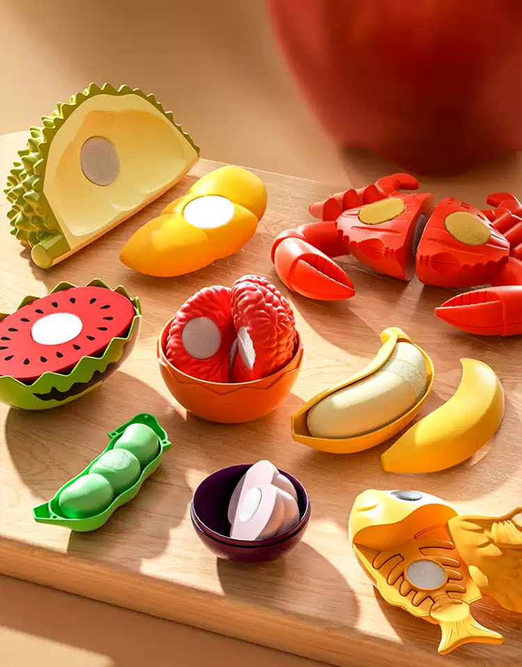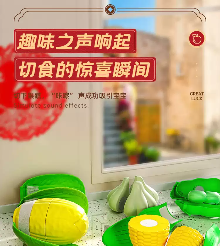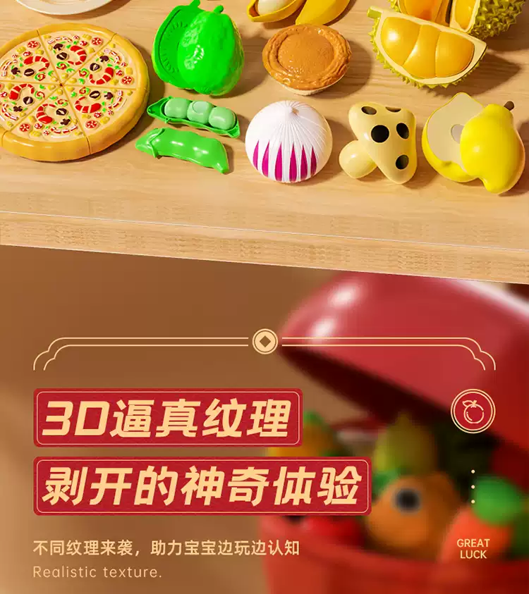 Shantou Lincun baby toys for babies 0 to 1 years old can chew 3-6 months and above 9 early childhood education enlightenment training 867 New Year's Peace Fruit peeling and cutting 36pcs