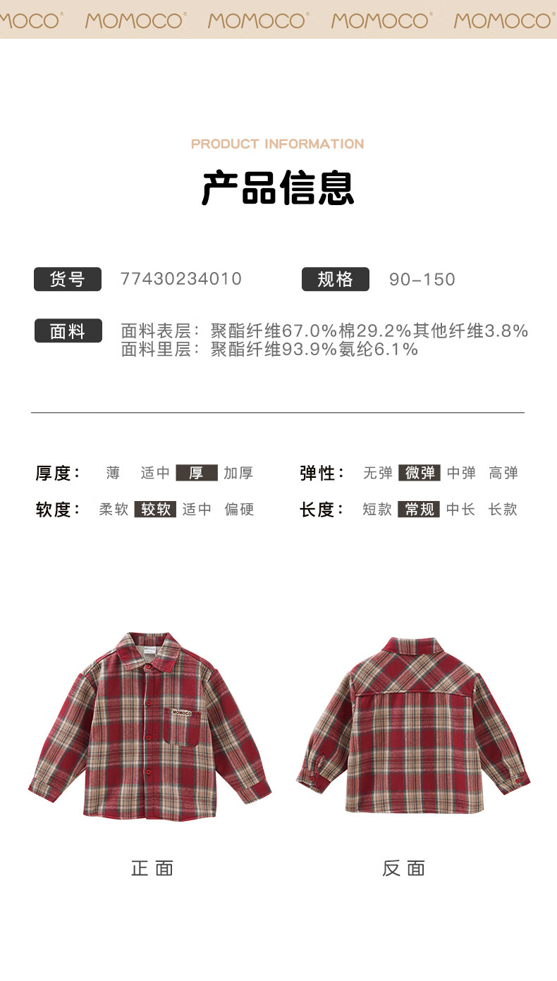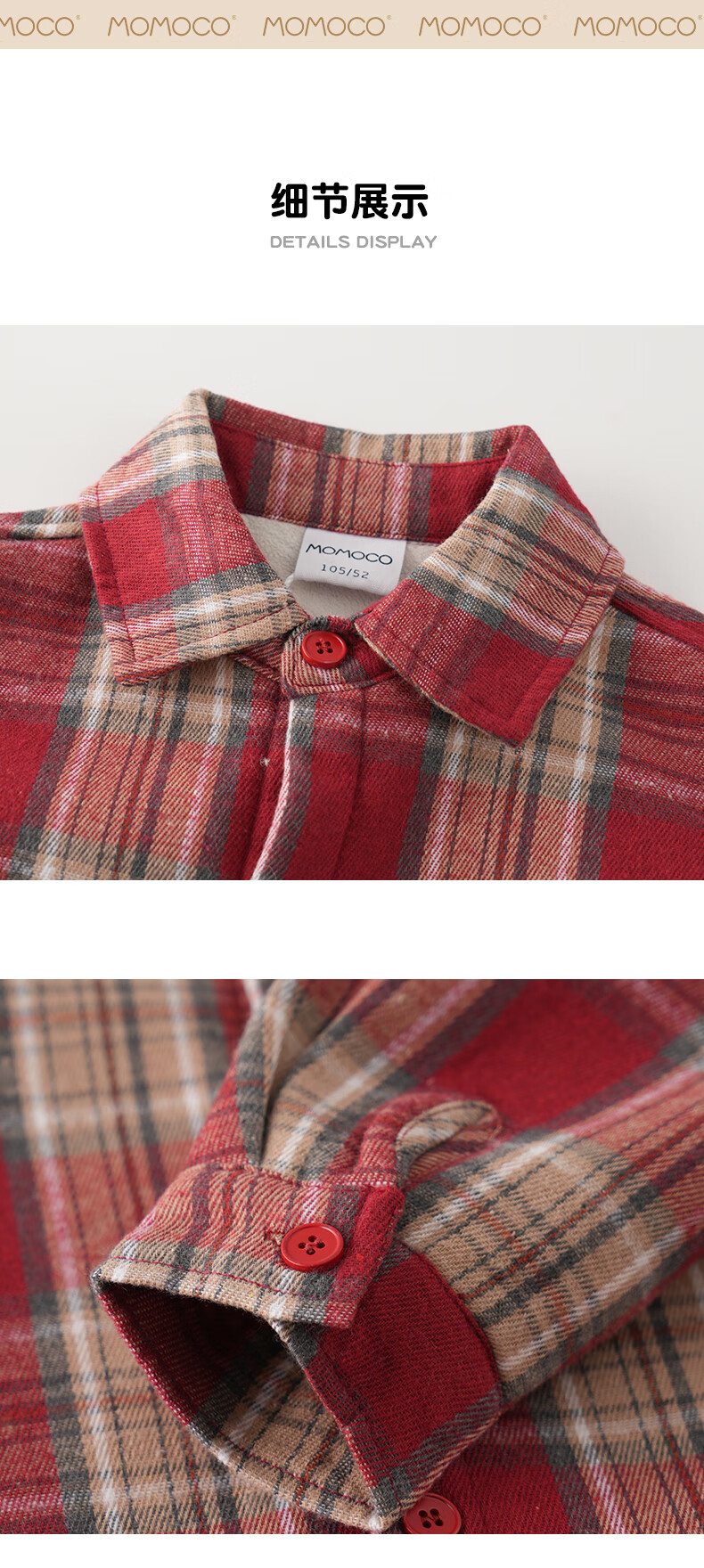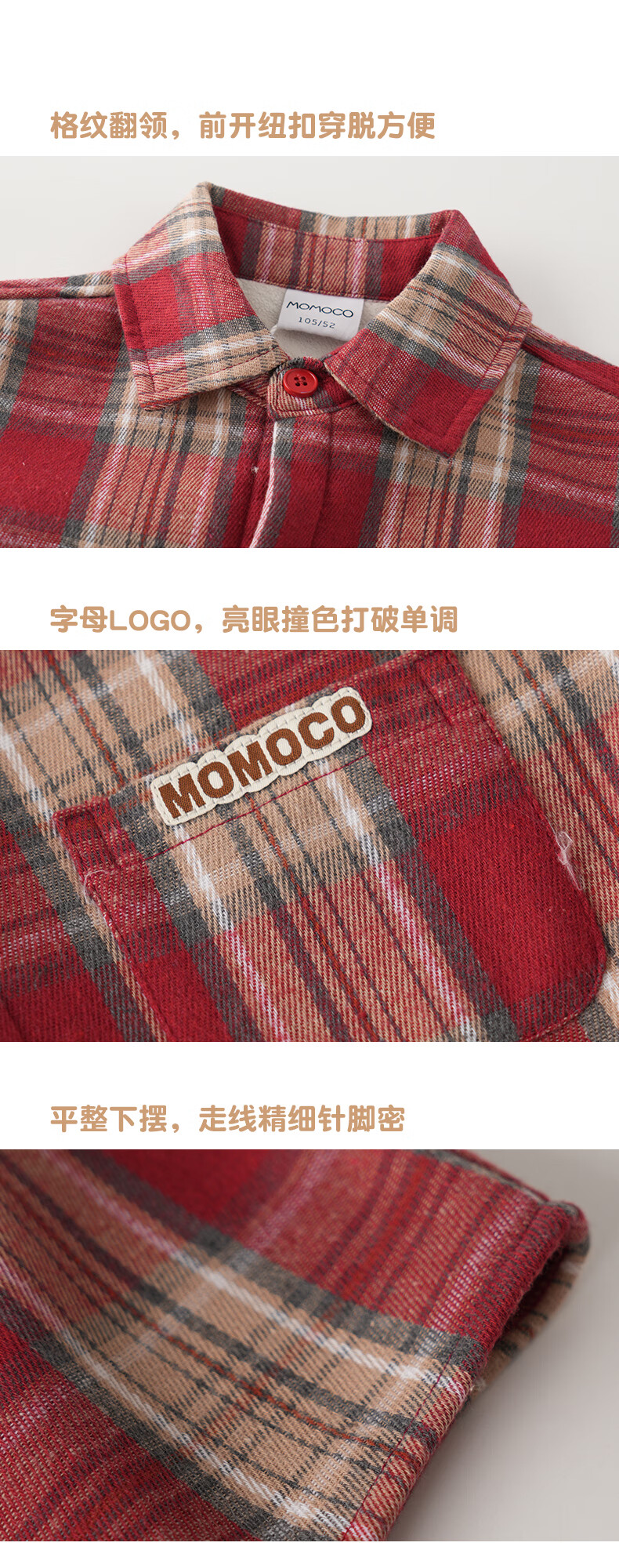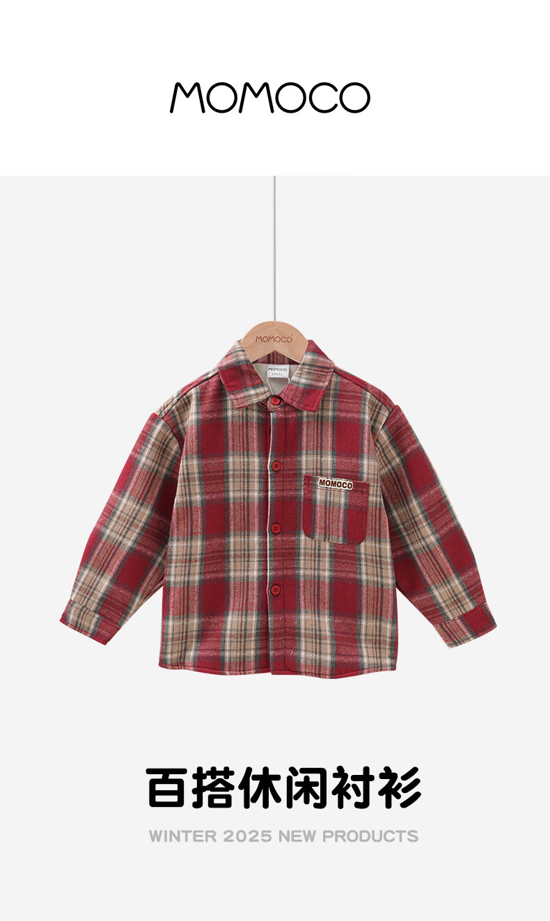 Mami Maka (MOMOCO) children's clothing boys' New Year's wear shirt 2025 winter style versatile casual shirt for middle and large children red 140