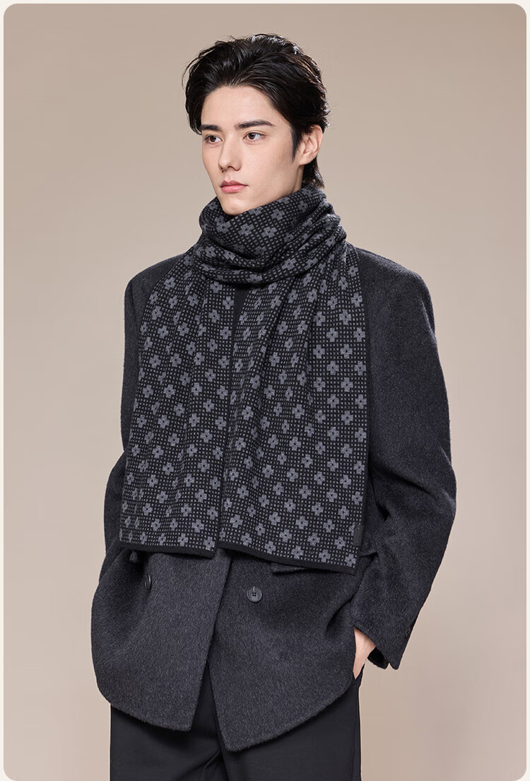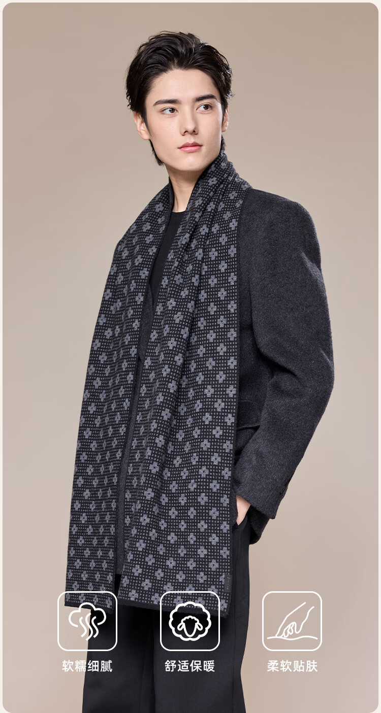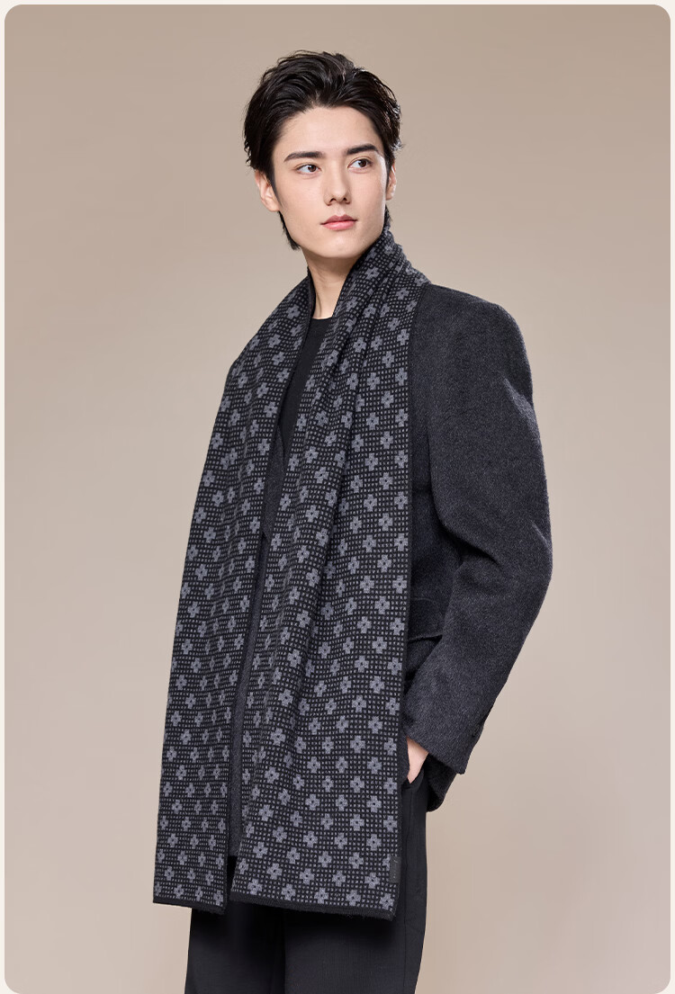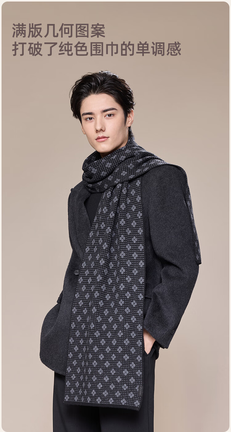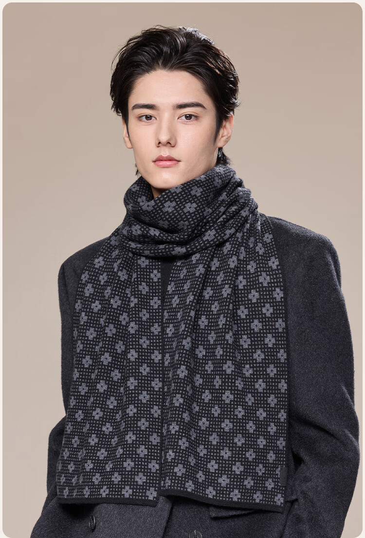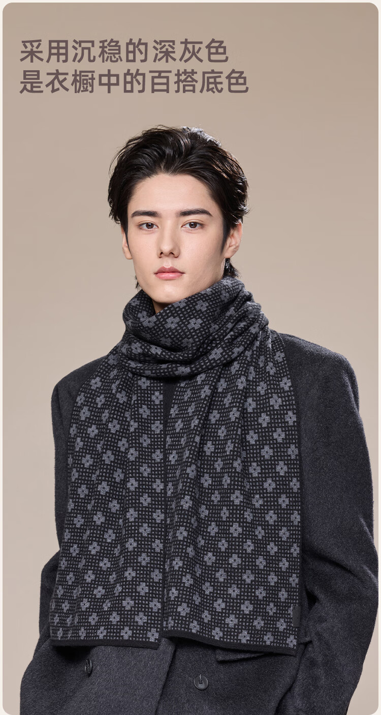 JIUMU scarf men's autumn and winter thickened warm shawl for elders and dads birthday gift box dark gray