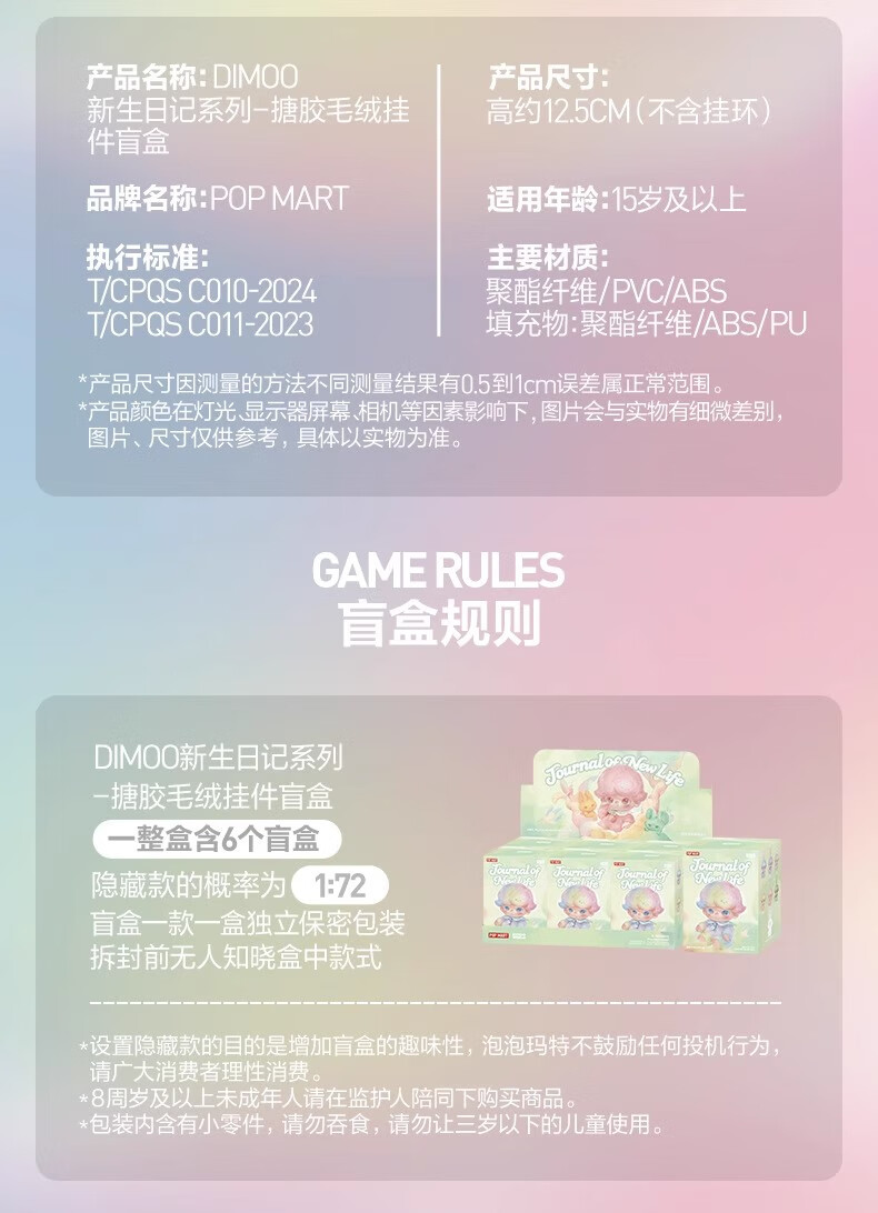 POP MART Genuine Spot DIMOO Freshman Diary Series Vinyl Plush Pendant Blind Box Trendy Toys Girls Gifts 1 Random Blind Box - Freshman Diary Series