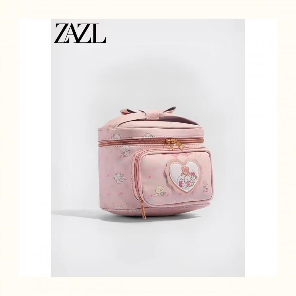 Complete new product ZAZL co-branded 2025 new travel cosmetic bag, portable, large capacity, cute and good-looking, hand-carryable, pink_free gift bag for collection
